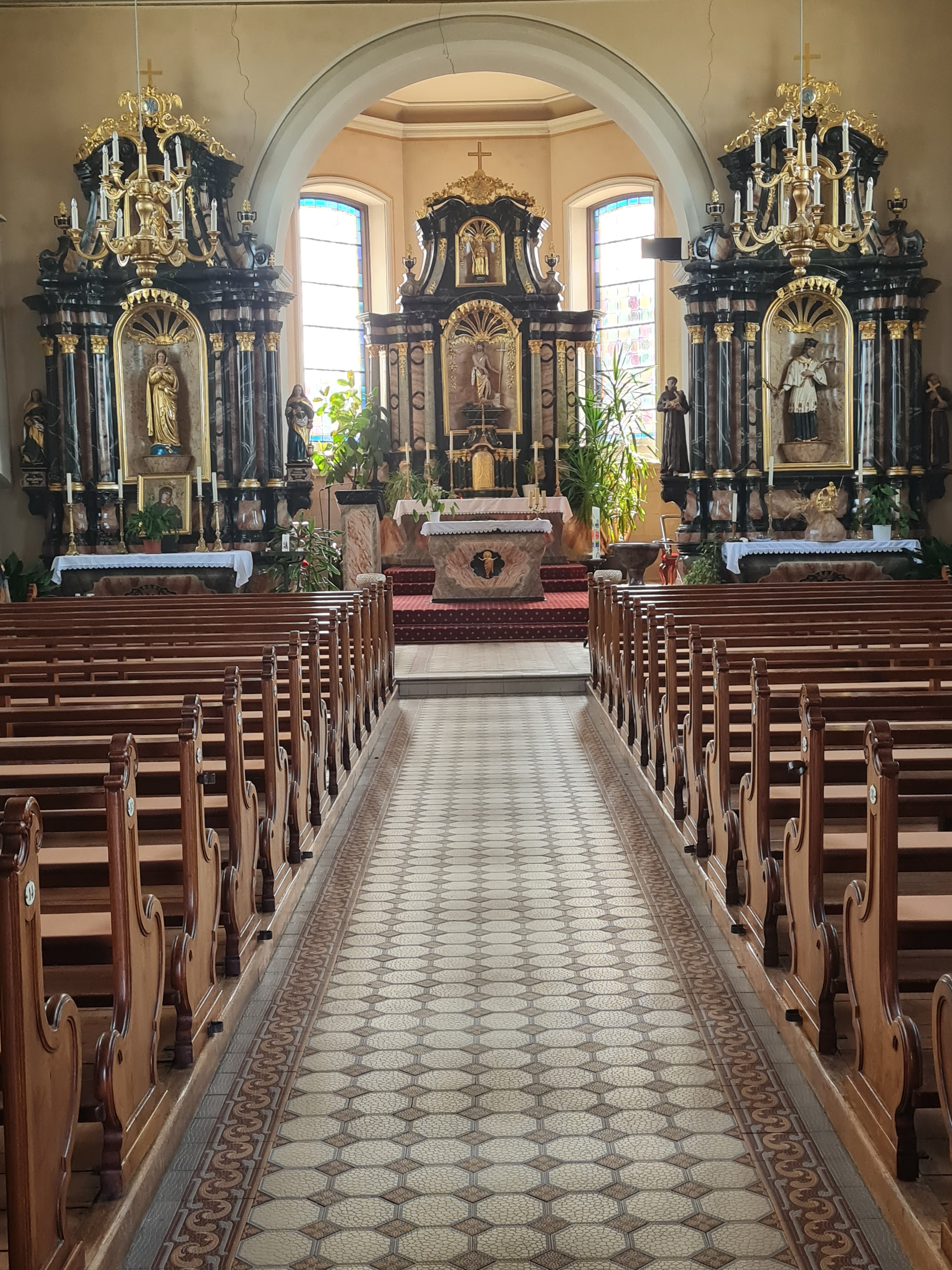 Cette église mérite vraiment d'être visitée Si elle est fermée, on peut demander la clé à la mairie. Nous avions la chance d'avoir une visite guidée conduite par le maire. Il nous a montré les merveilleux autels baroques,l'orgue unique, la pieta et un retable.