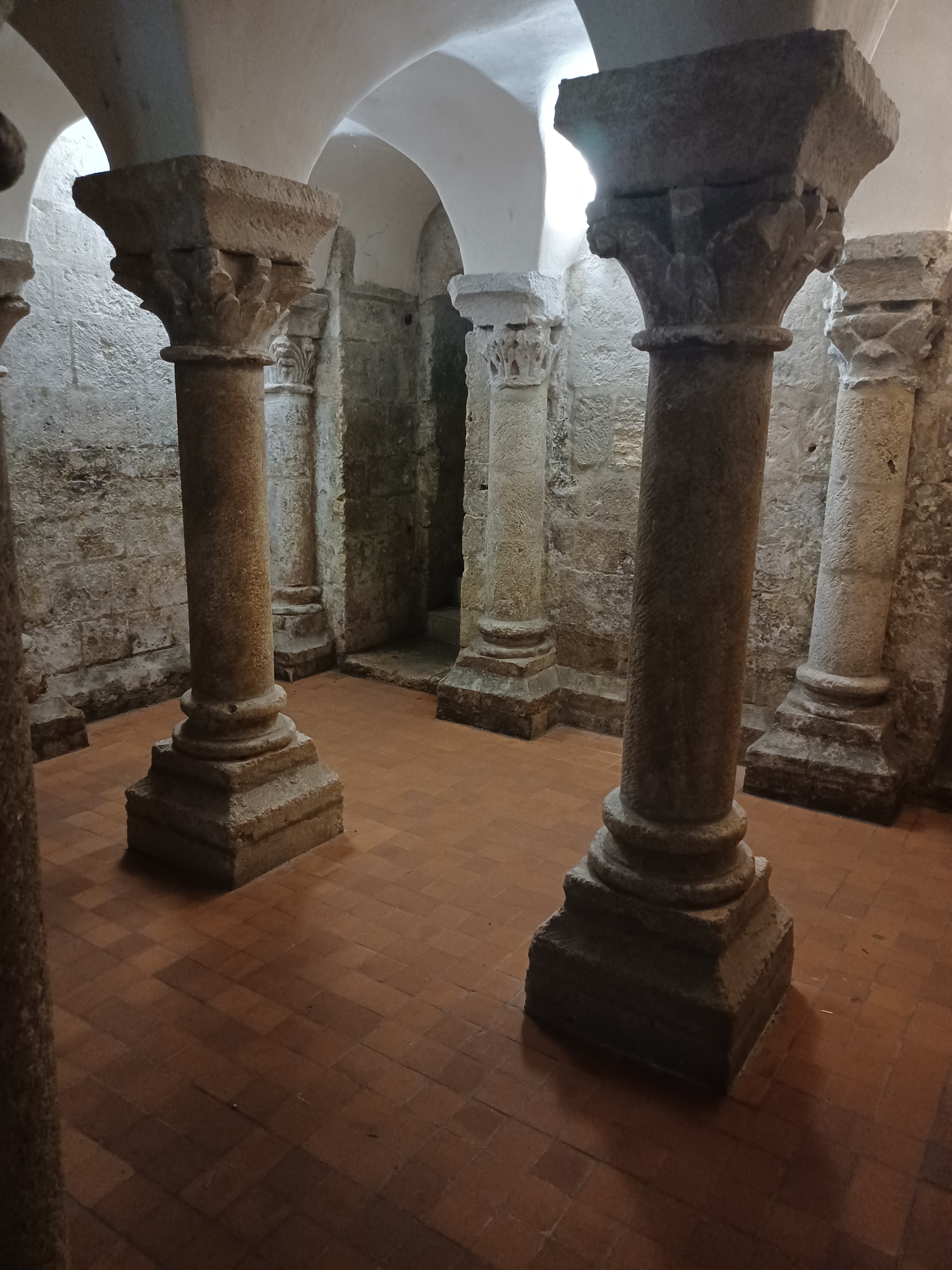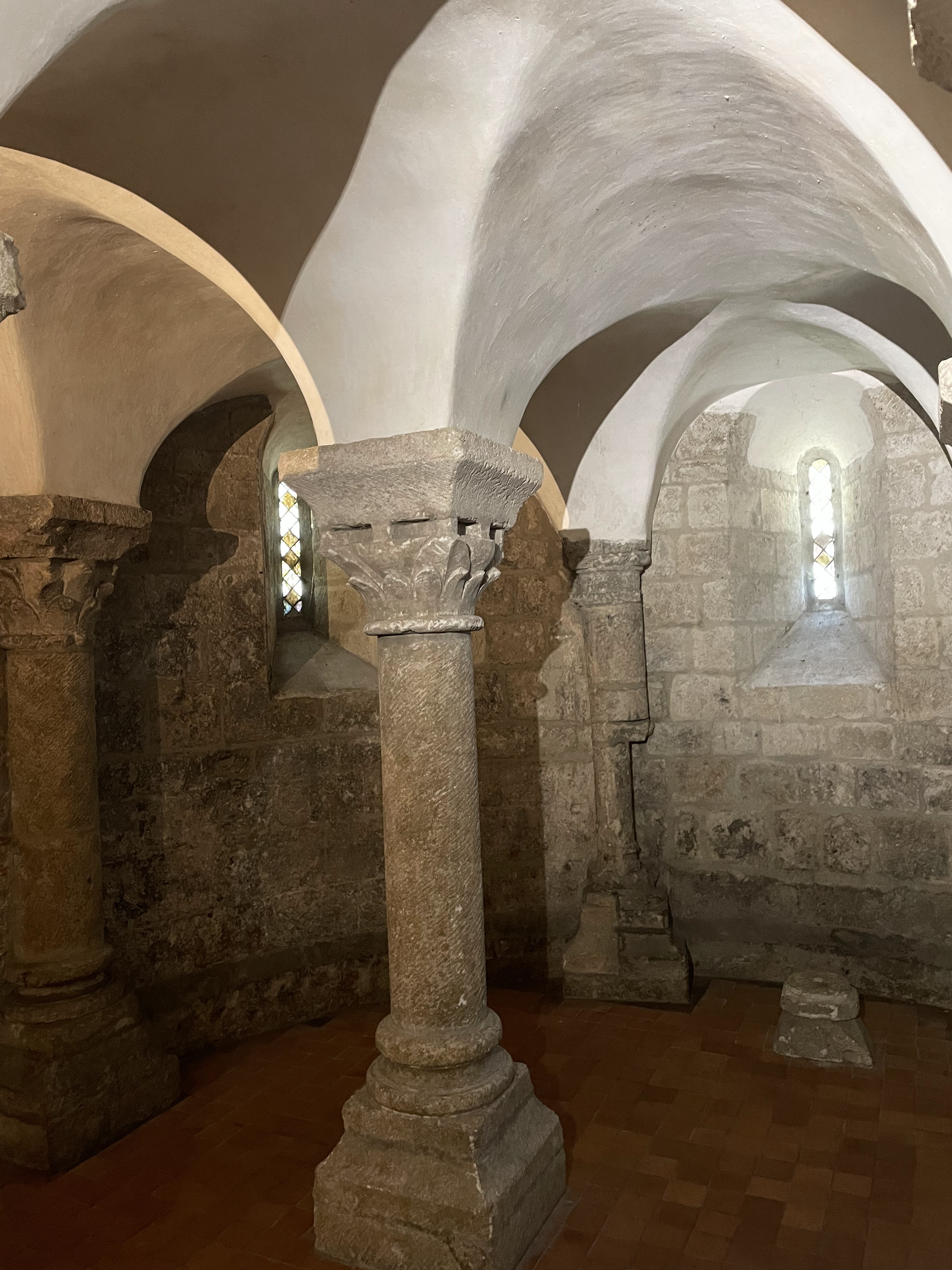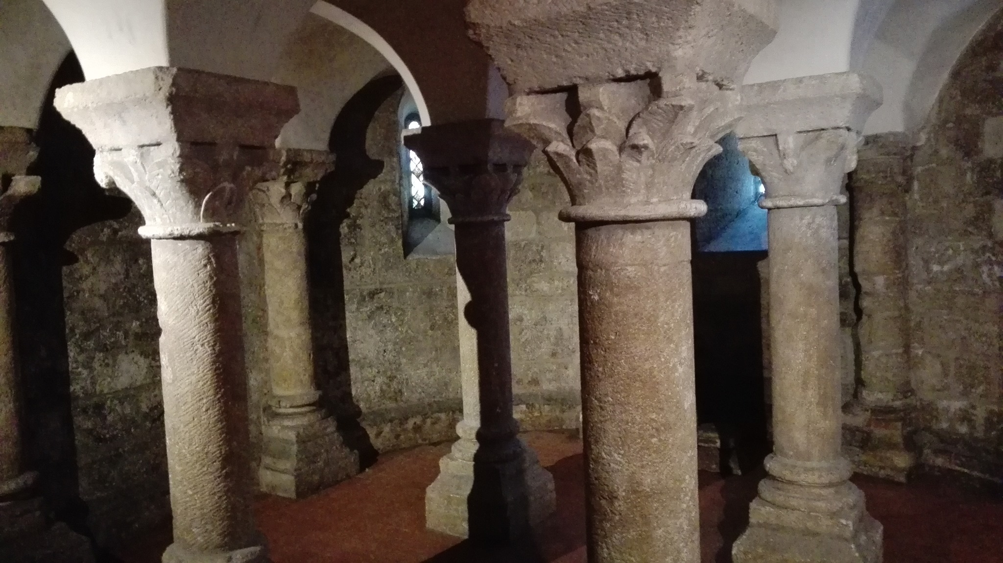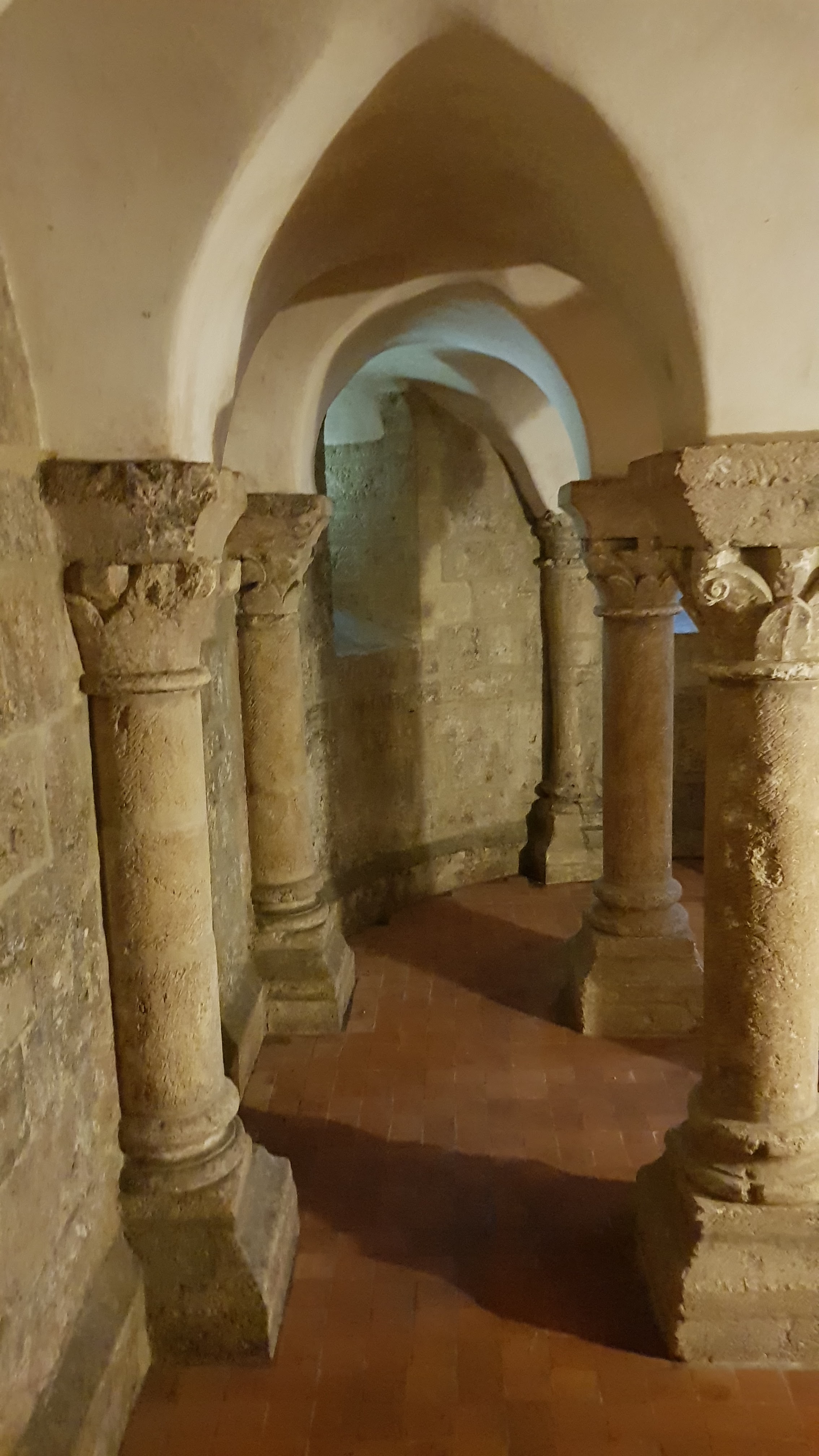 Eglise somptueuse du point de vue de l'acoustique, notamment au niveau de la crypte (voir photo), MAIS les nombreuses reconstructions ont effacées les constructions d'origines....