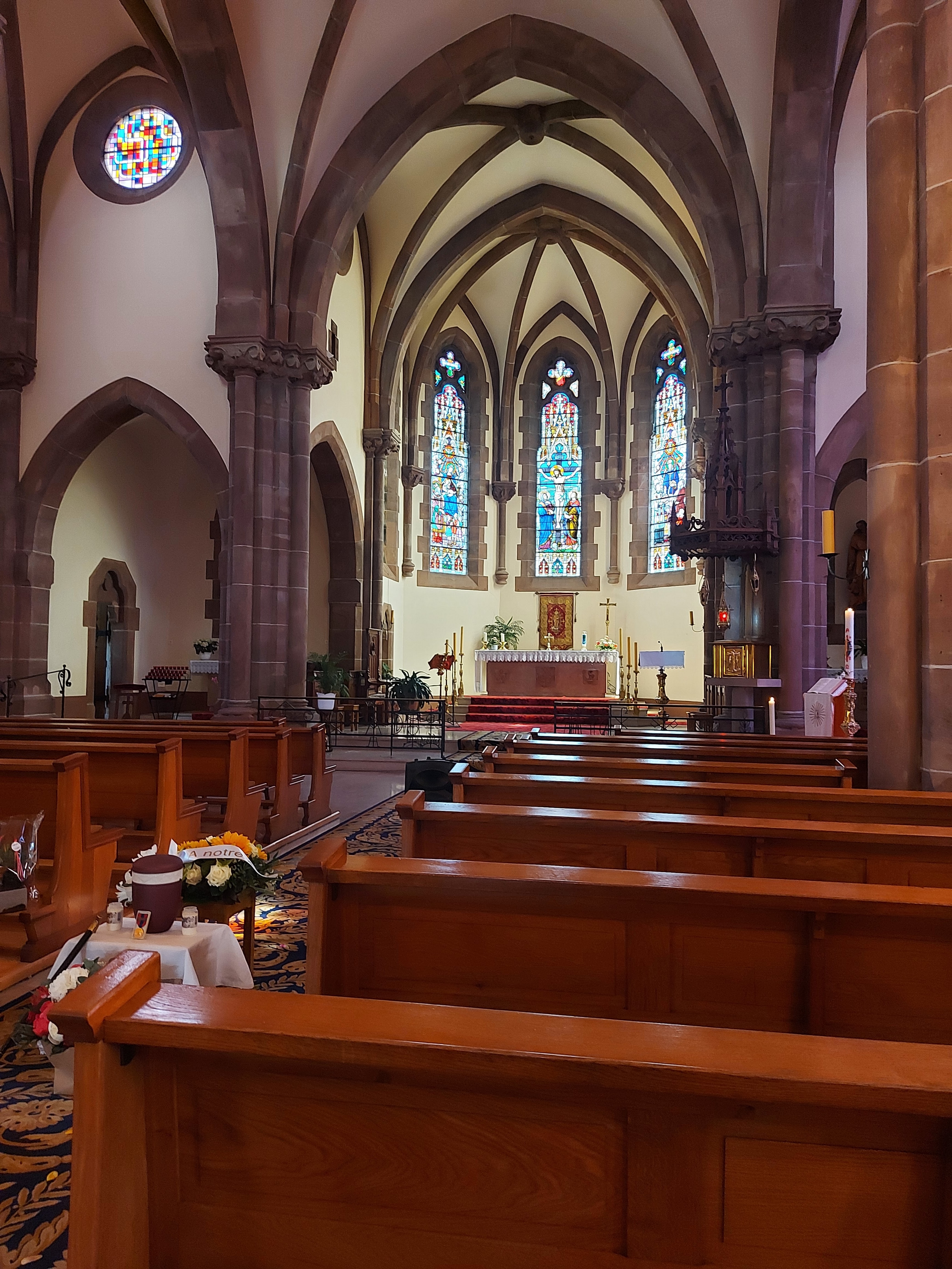 Petite et très belle église, avec des vitraux magnifiquement conçus.