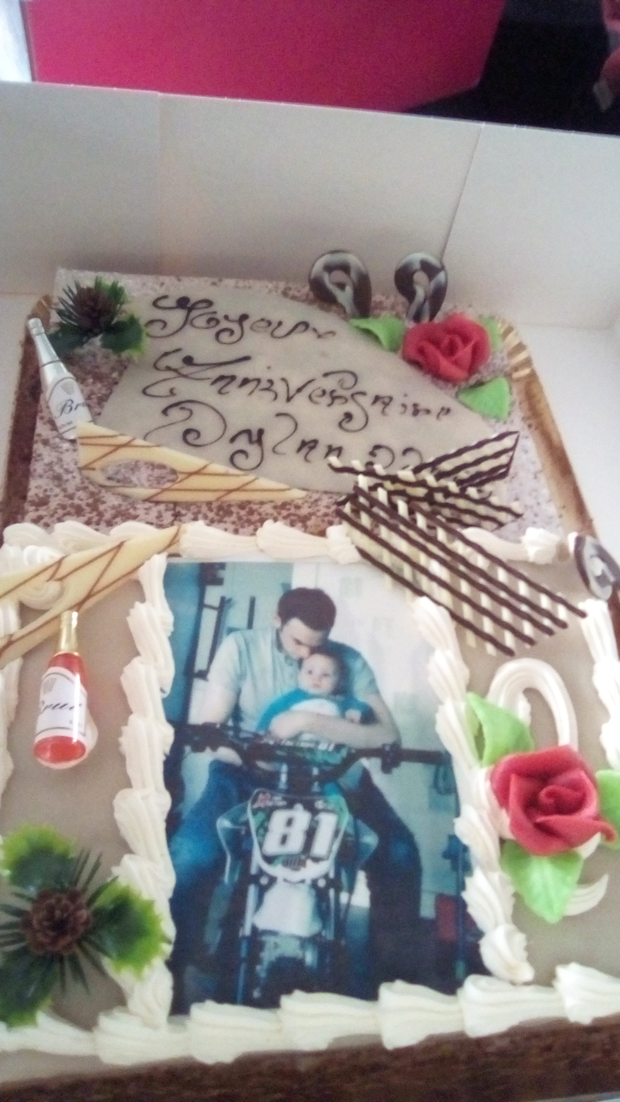 Très contente de la pâtisserie pour anniversaire de mon fils délicieux le relise choco et royal avec la photo