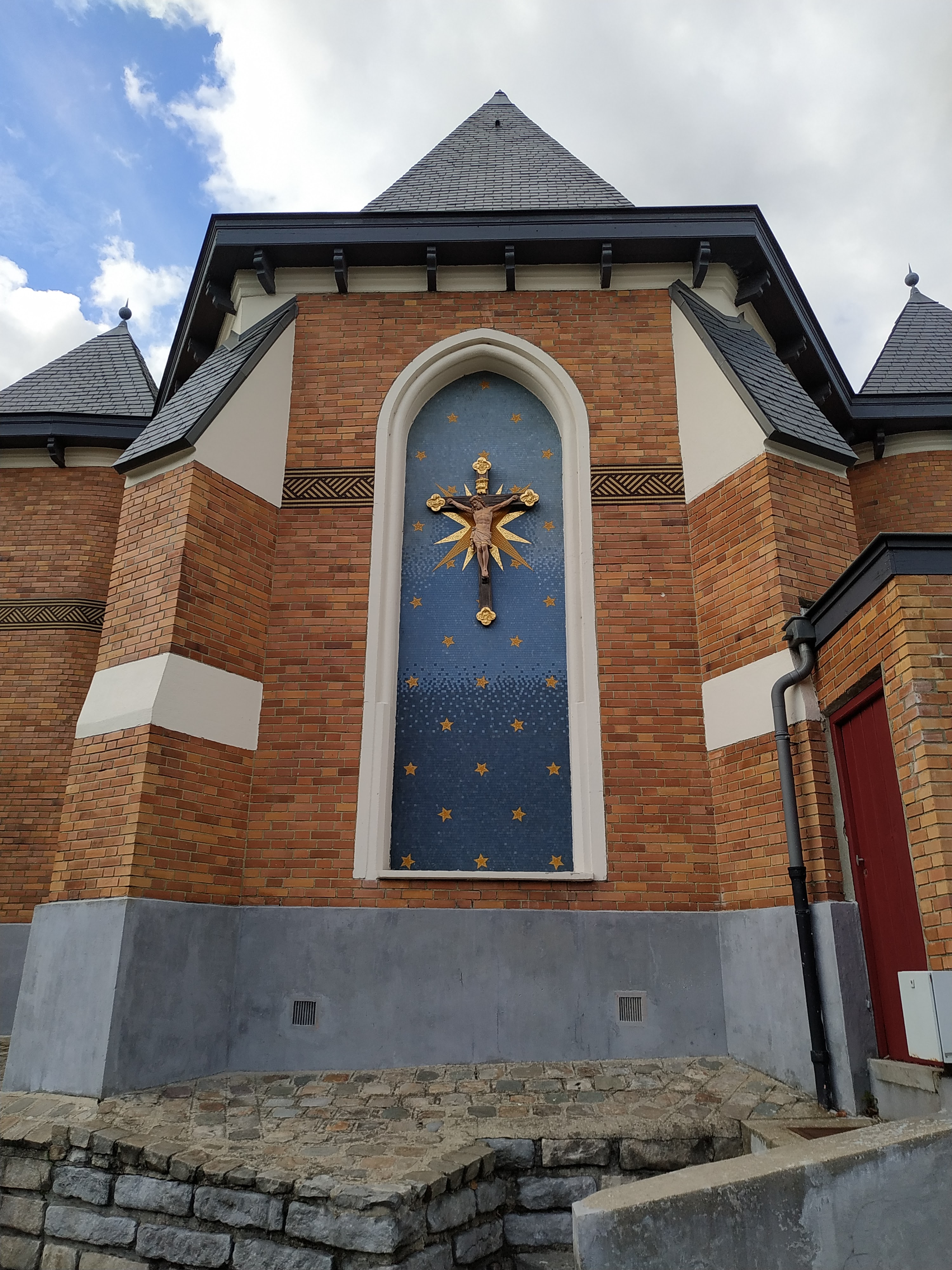 Une belle église à la décoration hétéroclite, car elle a été construite et reconstruite à travers les siècles, notamment au 19e et dans les années 1930. À l'extérieur, ornée de mosaïques colorées, l’édifice revêt un style Art Déco. À l'intérieur, des colonnes en pierre bleue de Tournai, de très jolis vitraux, des boiseries baroques et d'intéressantes chapelles.