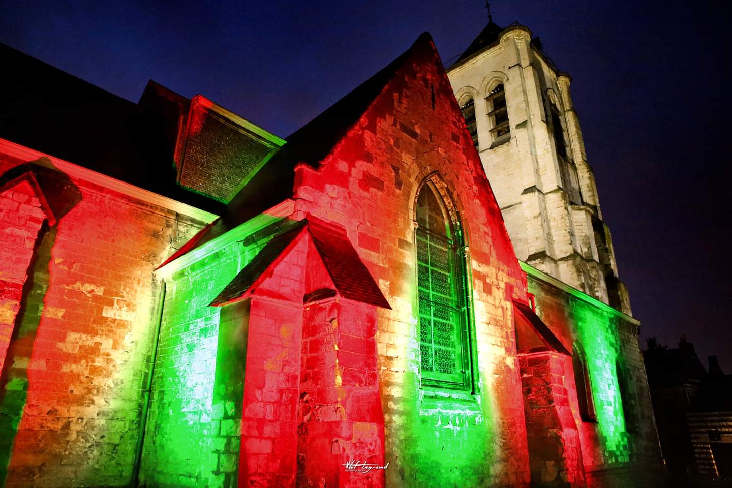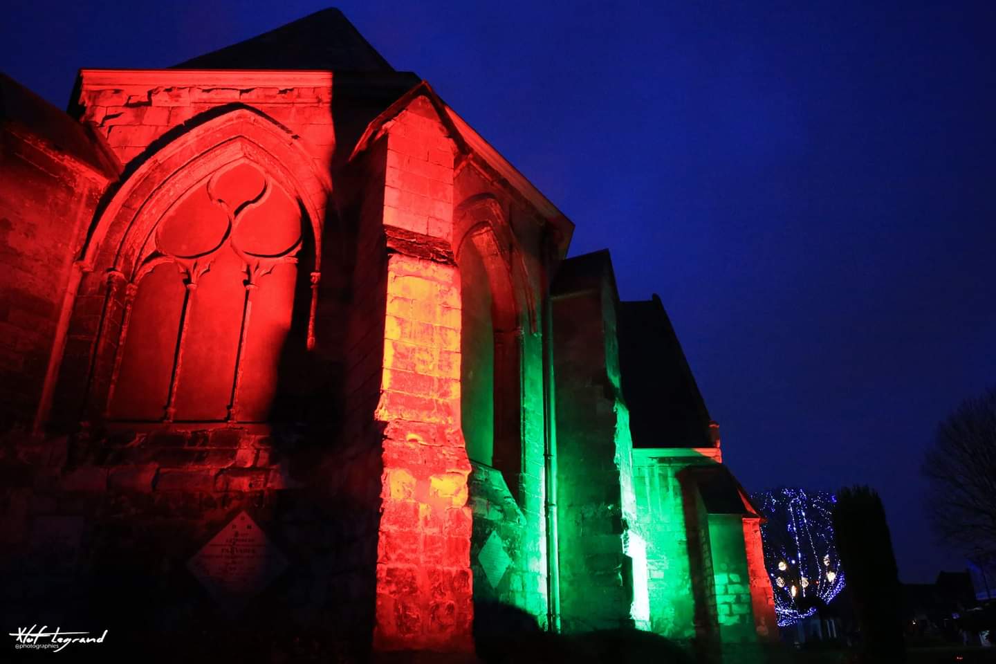 Une église très ancienne au porche classé, bâtie en pierre blanche (pierre de Lezennes, maintenant plus exploitée) Elle se pare de couleur à la saison des fêtes de fin d'année (Saint Nicolas) tout comme la rue à proximité (Attention, l'église est actuellement - juin 2022 - toujours en chantier de restauration) Une promenade nocturne voys révélera ce secteur de Flers-Bourg sous une autre perspective