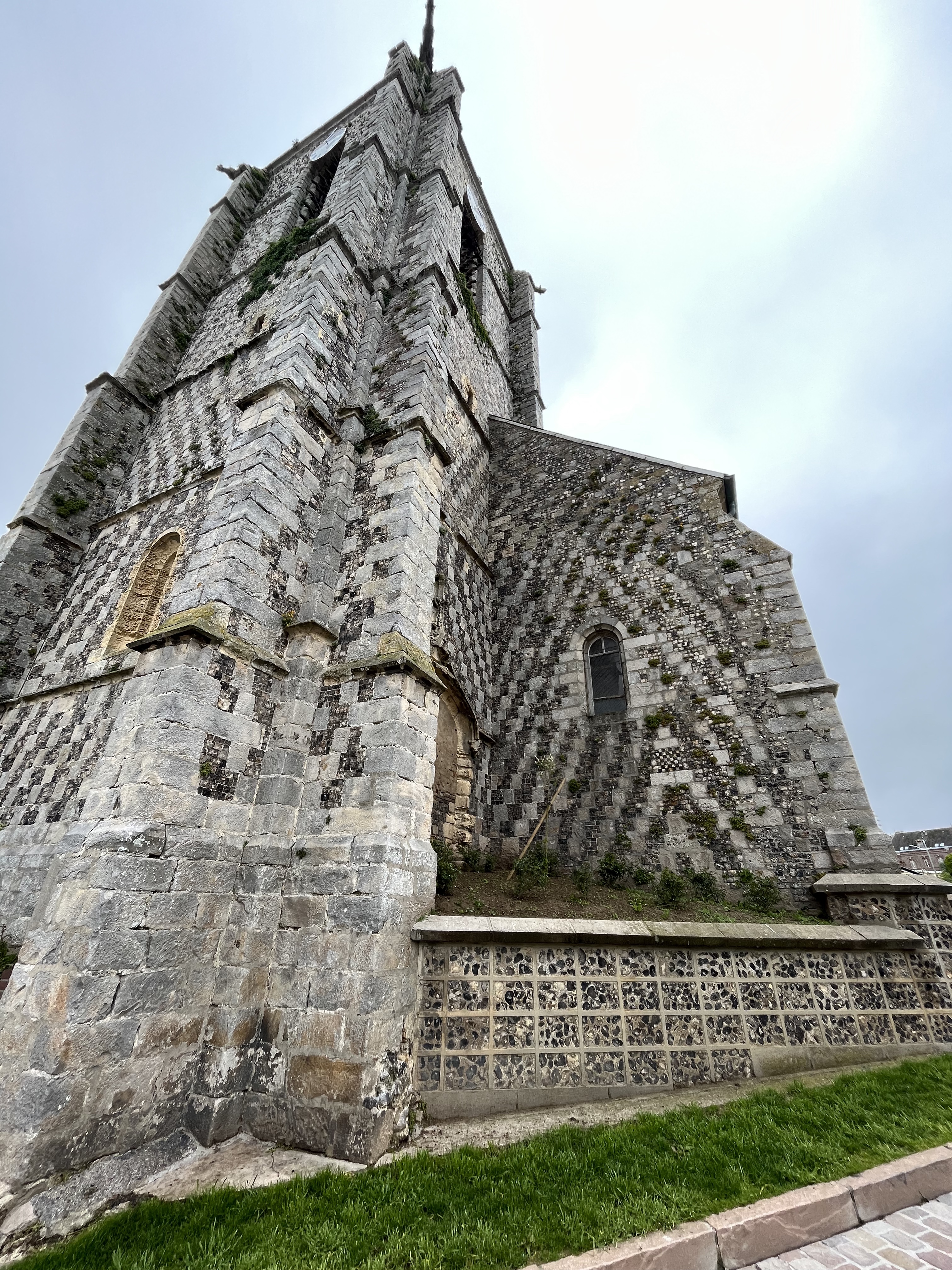L’église Saint Pierre est construite en damier de pierres blanches et silex, typique de la Picardie maritime. Fermée lors de mon passage, cet édifice religieux du XIIIème siècle de style gothique primitif mériterait une rénovation notamment de ses baies et une meilleure préservation. L'église borde un grand parking qui vous permettra de laisser votre voiture pour découvrir en contre bas les falaise blanches d'Ault