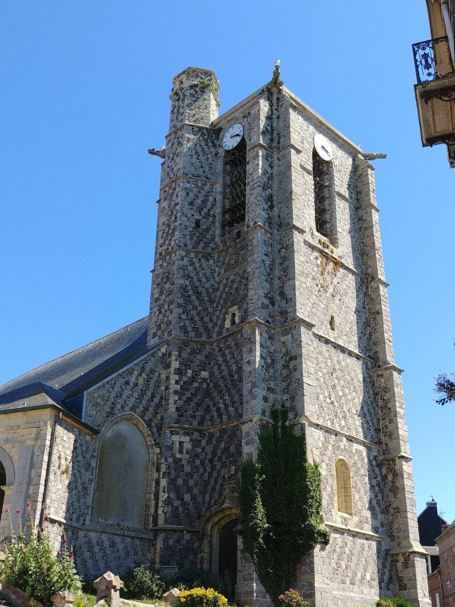Édifice du XIVe & WVIe siècle, le clocher surmonté du Beffroi en font sa rareté. Ses murs sont en damiers composés de silex, calcaire et grès, spécificité du littoral Picard.