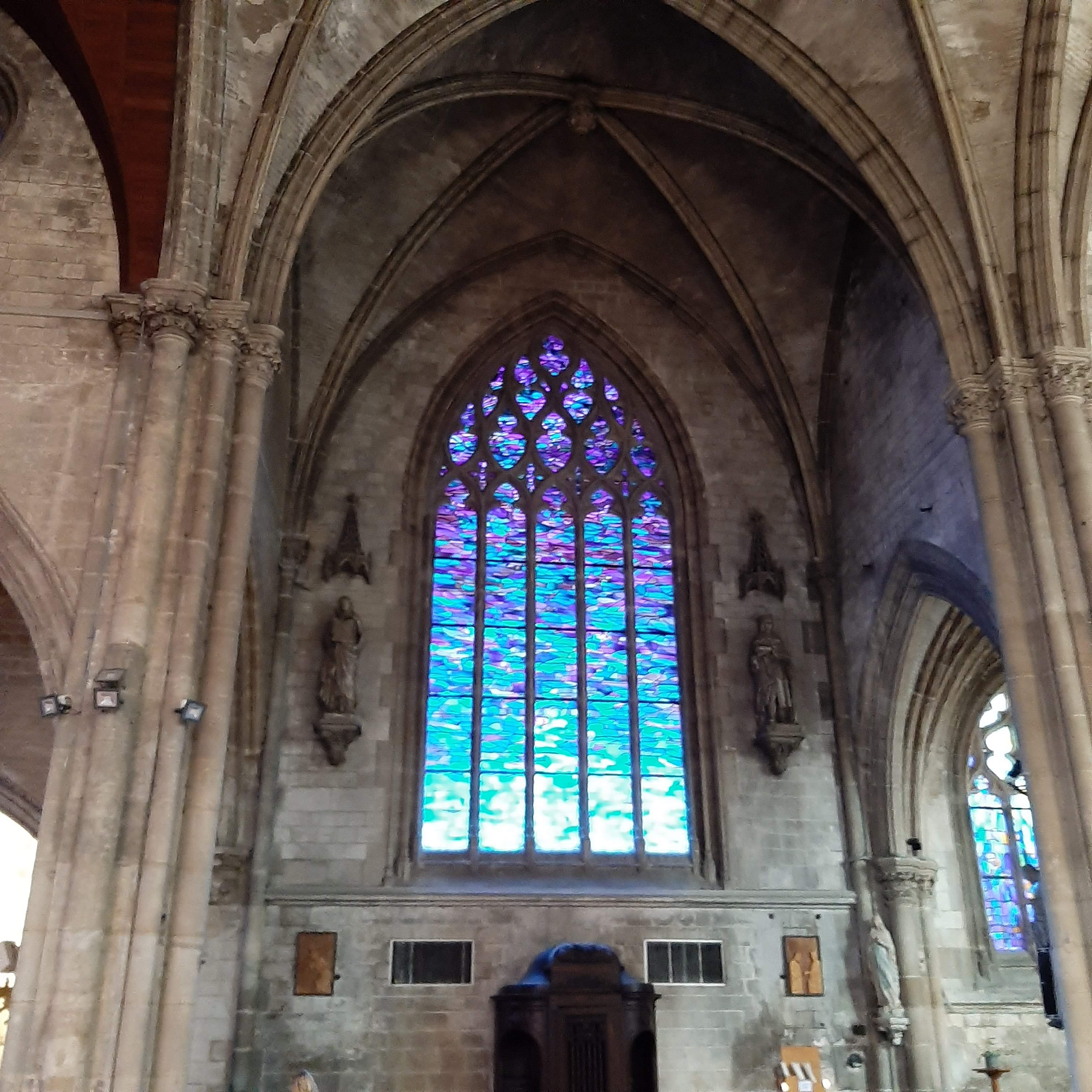 A Abbeville, ravagée par les Allemands en mai 1940, ils ont même détruit le musée Boucher de Perthes de l'époque et ses riches collections du paléolithique enfin, donc les verrières de Saint Sépulcre ayant été détruites aussi en mai 1940, ont été remplacées avantageusement peut-être par une superbe collection de vitraux contemporains dessinés par Alfred Manessier.... Il faut y aller