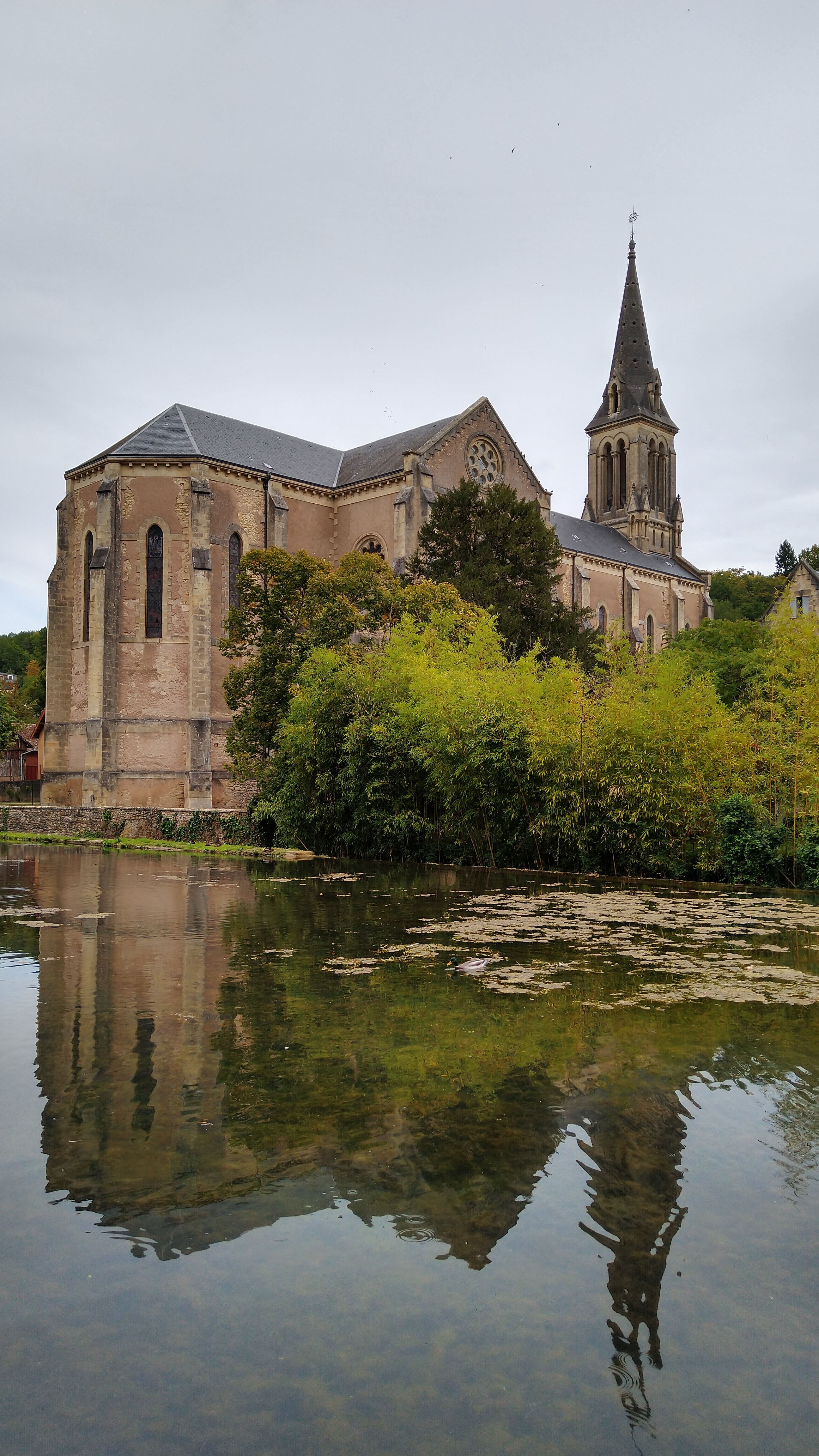 Derrière l église petit plan d eau avec pelouse très sympa
