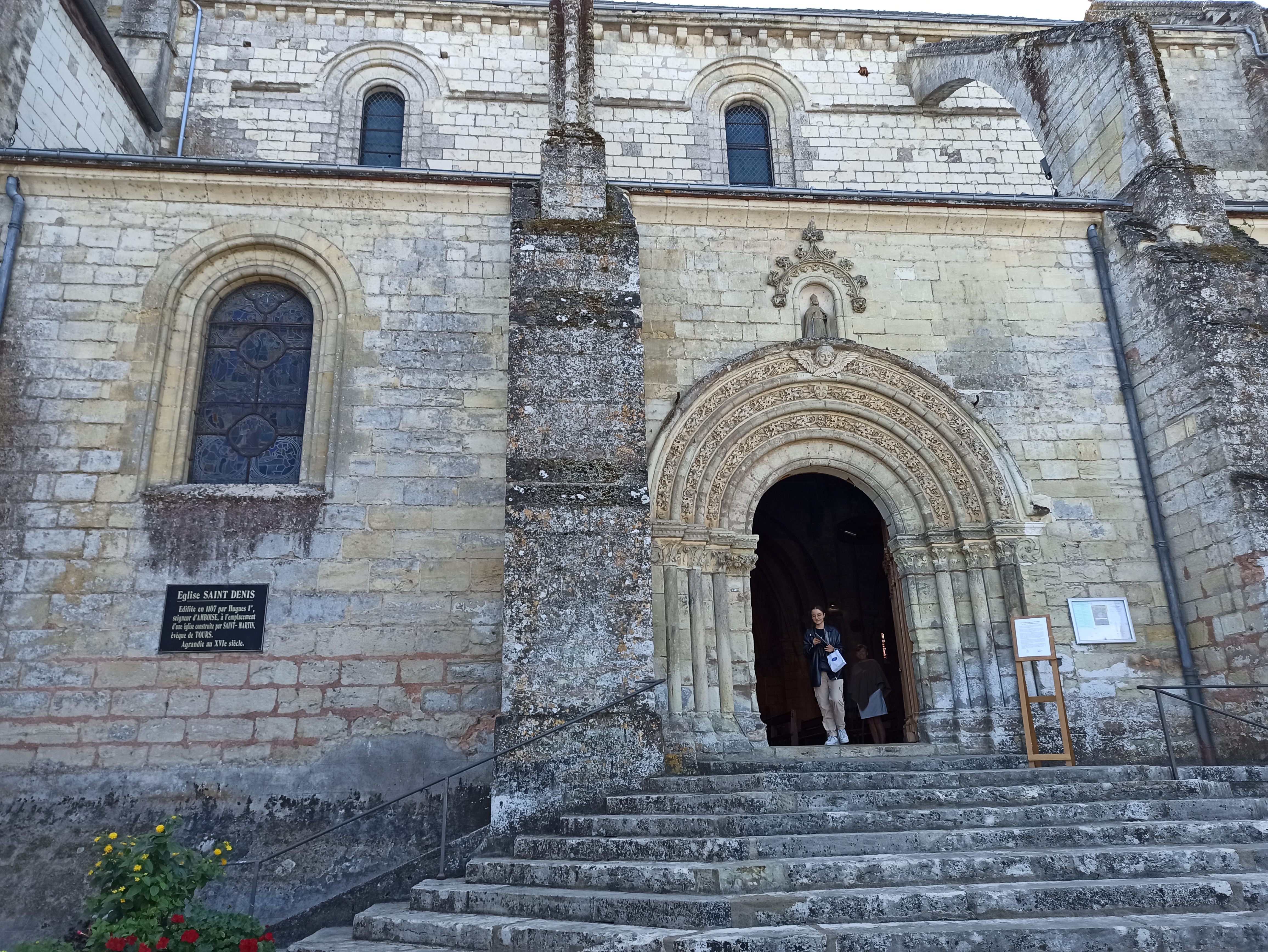 Un retable monumental, une somptueuse Mise au Tombeau, de splendides chapiteaux aux décors sculptés du 12ème etc... L'église Saint-Denis est quelque peu oubliée par les visiteurs de la ville d'Amboise. La première raison est l'ombre faite par le château prestigieux d'Amboise et celui du Clos Lucé ; la seconde raison, l'histoire a retenu François 1er et Léonard de Vinci, semblant oublier qu'avant eux, Amboise avait une vie riche que de glorieux personnages ont façonné. Cette église fut bâtie par Hugues Ier, seigneur d'Amboise, au début du 12ème siècle. Elle remplaça sur ce lieu un oratoire, édifié au 4ème siècle par (Saint)Martin de Tours, proclamé évêque par les habitants de Tours contre sa volonté. Cet oratoire avait lui même remplacé un temple de culte païen, preuve s'il en fallait de la constance spirituelle de la population de la cité. Transformée au cours des siècles, les influences architecturales sont diverses, des restaurations et reconstructions partielles ont permis de préserver cette église. Au départ de style roman, les modifications ou ajouts sont intervenus fin 12ème, puis 15ème, 16ème, 18ème, et 19ème siècles. Ces variations architecturales apportent une certaine fantaisie, l'harmonie est préservée. L'édifice est sombre, mais des éclairages efficaces mettent en valeur le retable monumental et la somptueuse Mise au Tombeau. Cette dernière ainsi que le gisant (dit la noyée), et la statue de Sainte-Madeleine lisant un livre ont été apportées vers 1770. Ce sont trois éléments classés par les M.H. venant de la chapelle souterraine du château de Bondésir de Montlouis. Des vitraux de belle facture, de splendides décors sculptés sur les chapiteaux du chœur sont à découvrir.