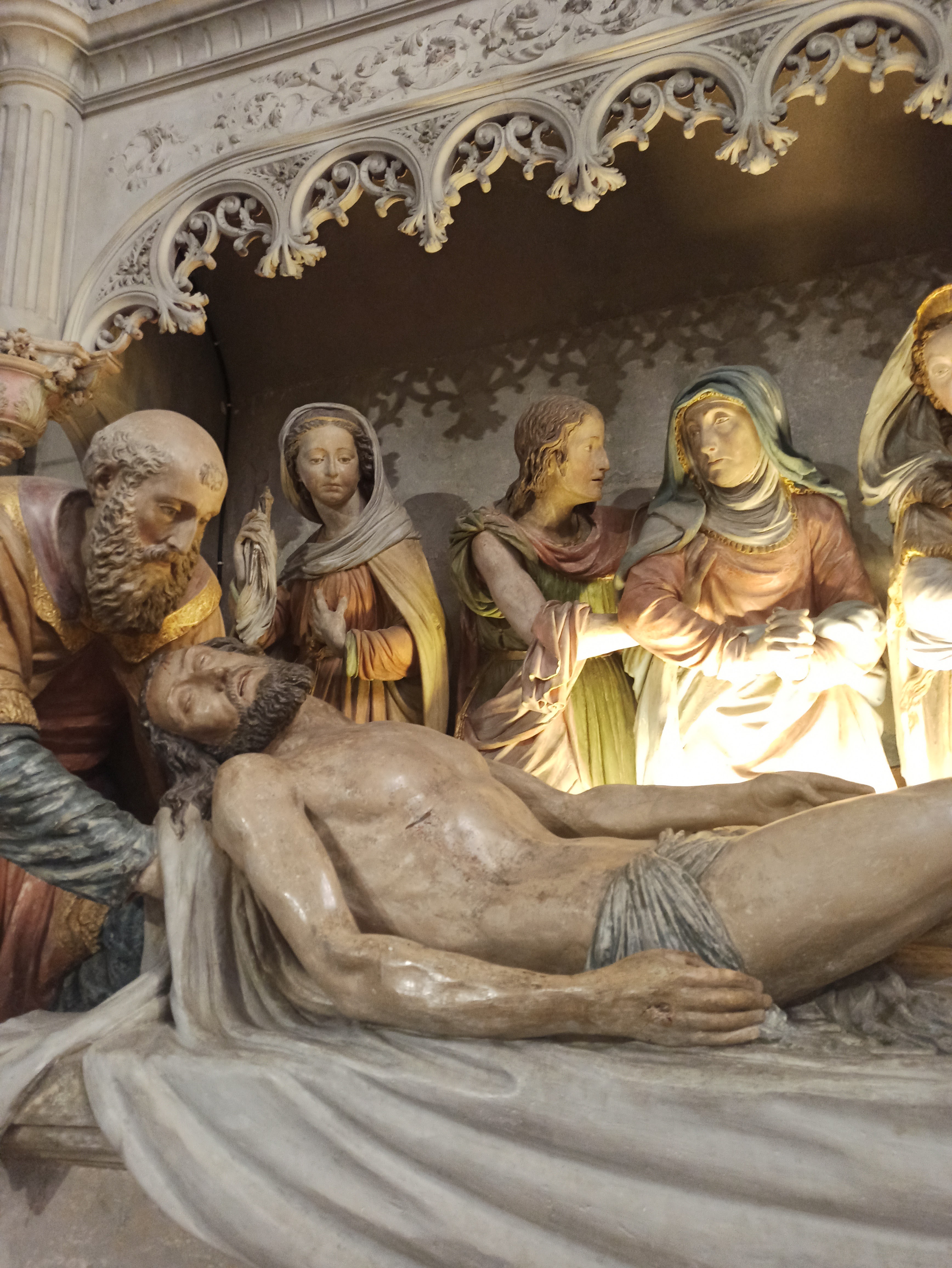 Magnifique église gothique, une pieta en pierre et colorée de la renaissance, à voir