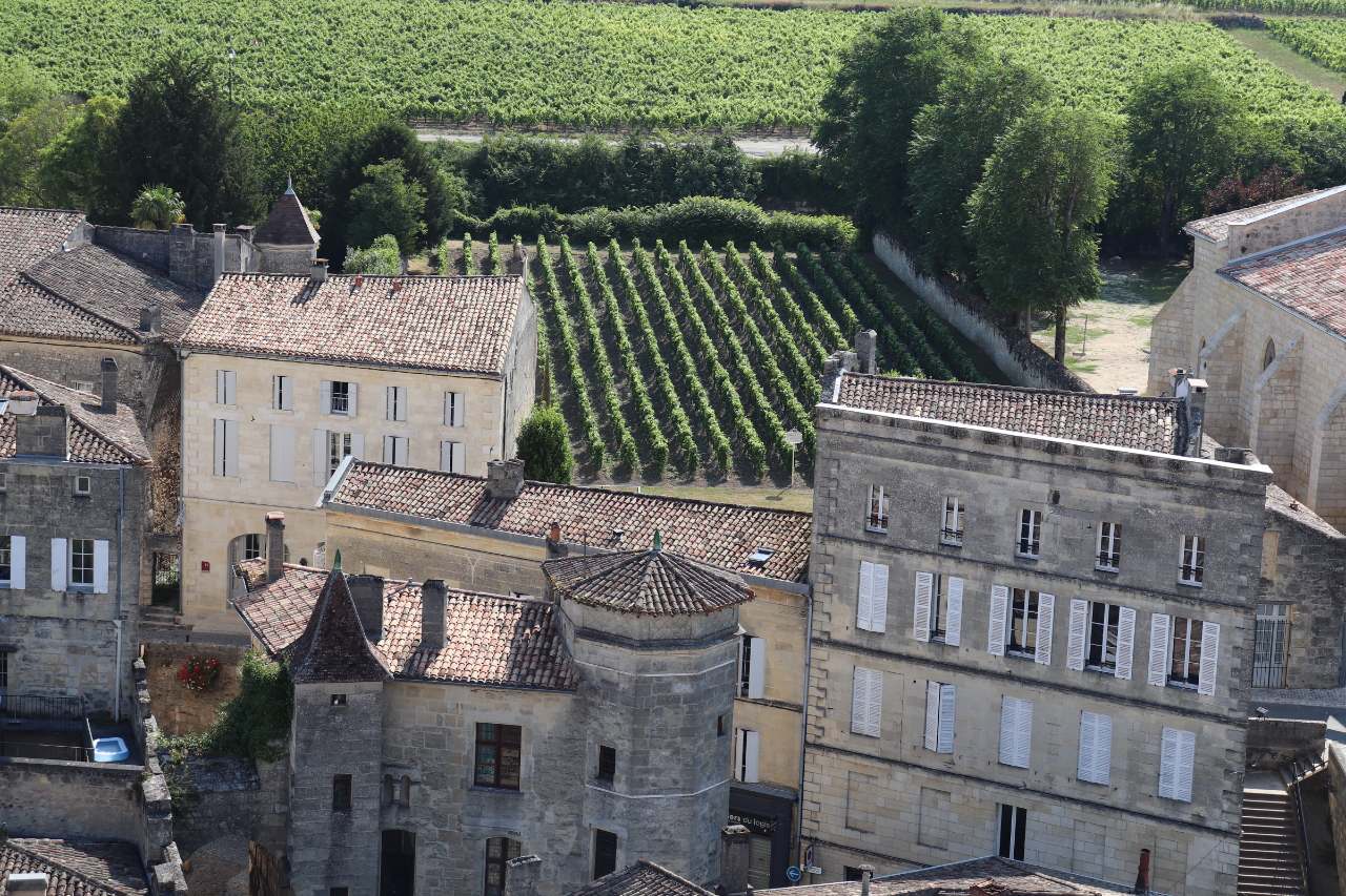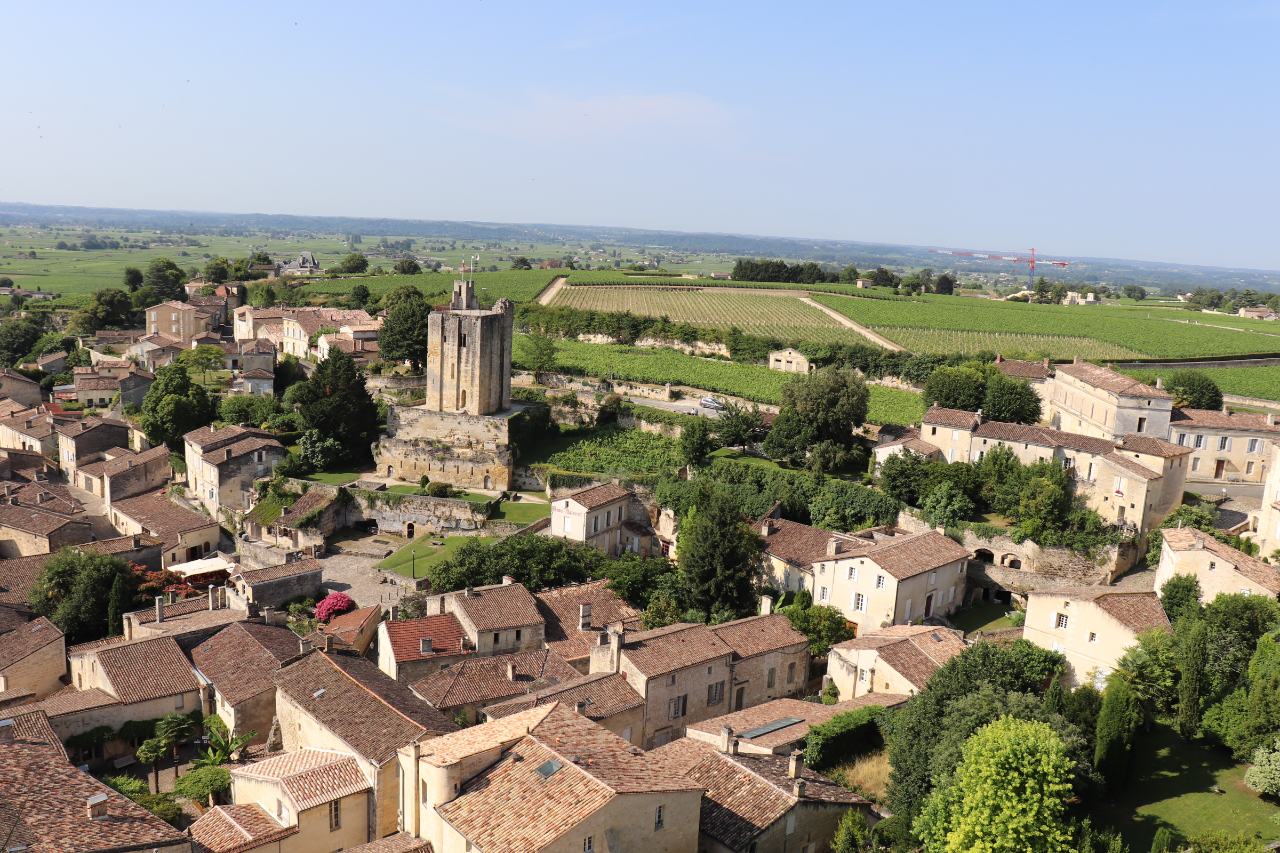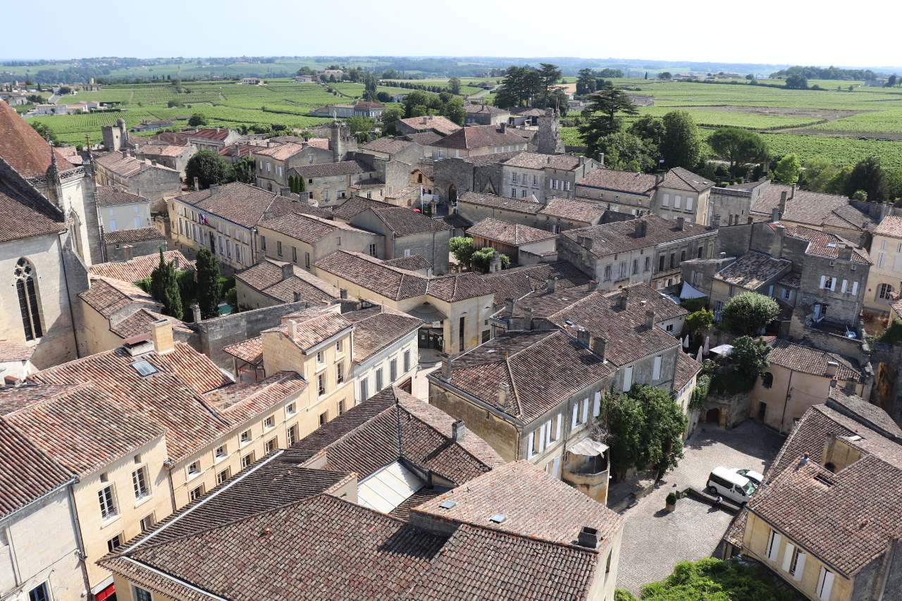 Toujours de superbes vues depuis l'église, dominant les toits de St Émilion, s'étendant au-dessus des vignes, vers la vallée de la Dordogne.