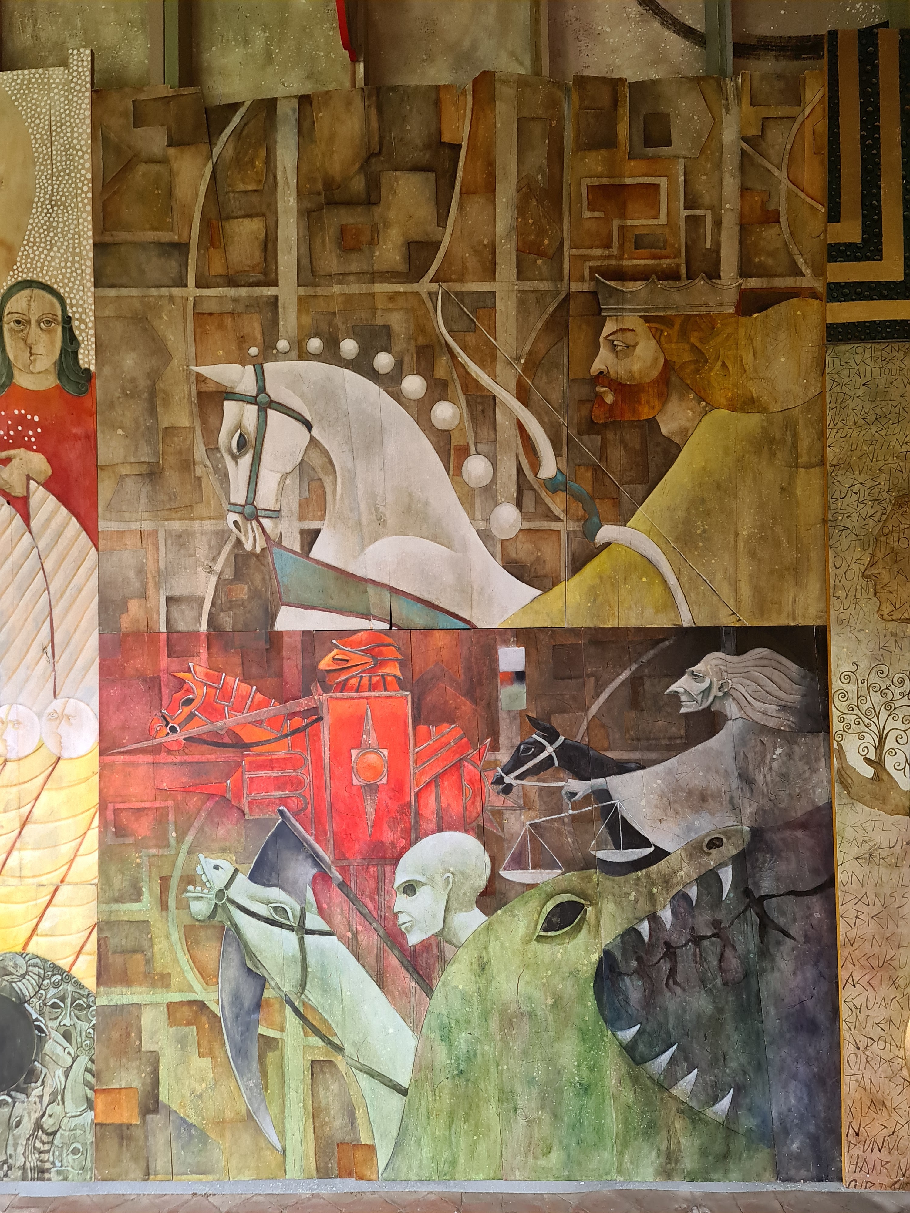Ma deuxième visite dans cette église en 4 ans. Toujours aussi belle à voir. Pas encore trop de touristes en ce début de mois de juin, ce qui rend la visite bien agréable. J’aime toujours autant la grande fresque colorée décrivant l’apocalypse. Une très belle œuvre d’art, sans aucun doute, décrivant le bien et le mal.