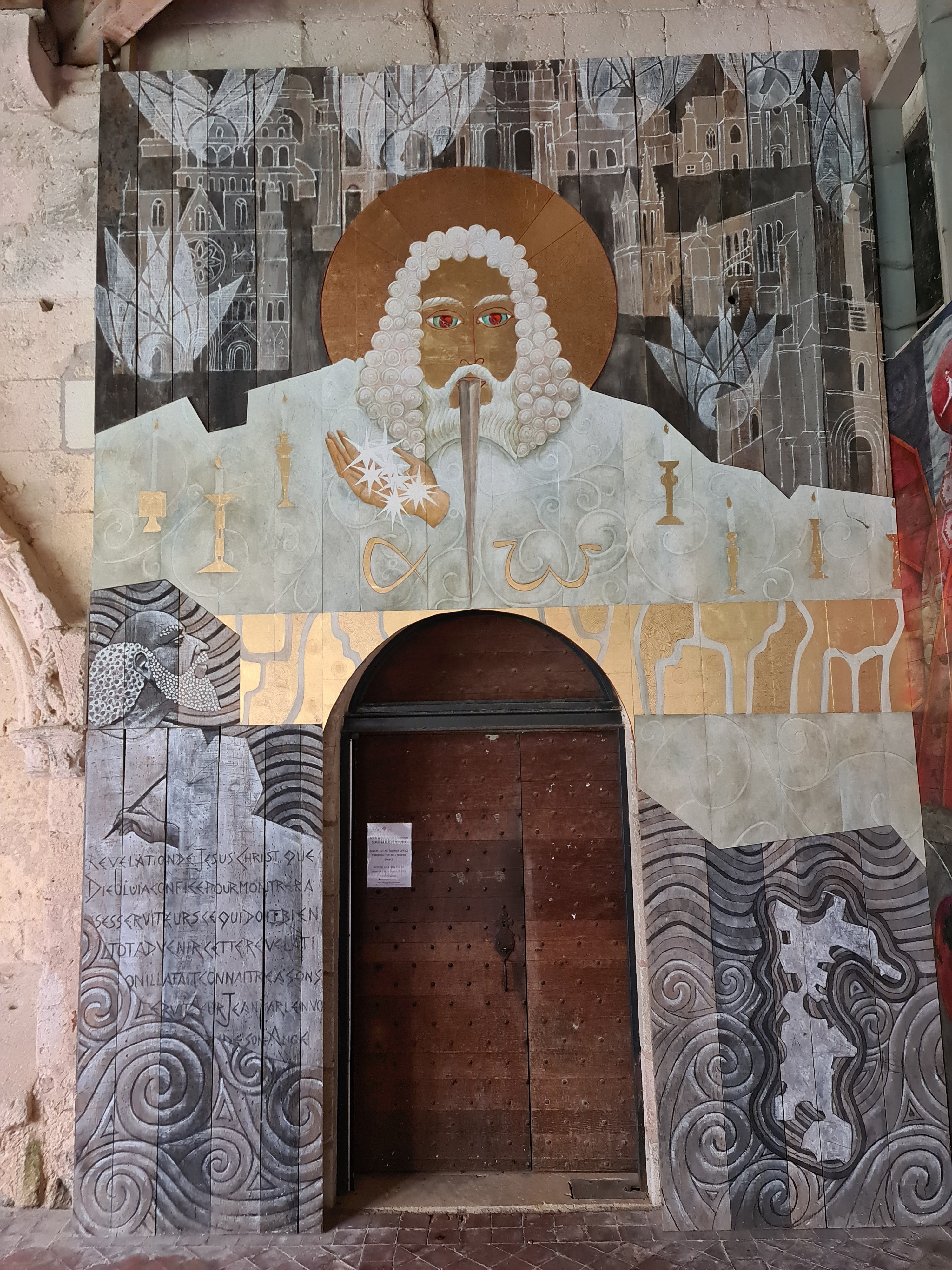 Pour mettre en valeur la fresque contemporaine du cloître : magnifique.