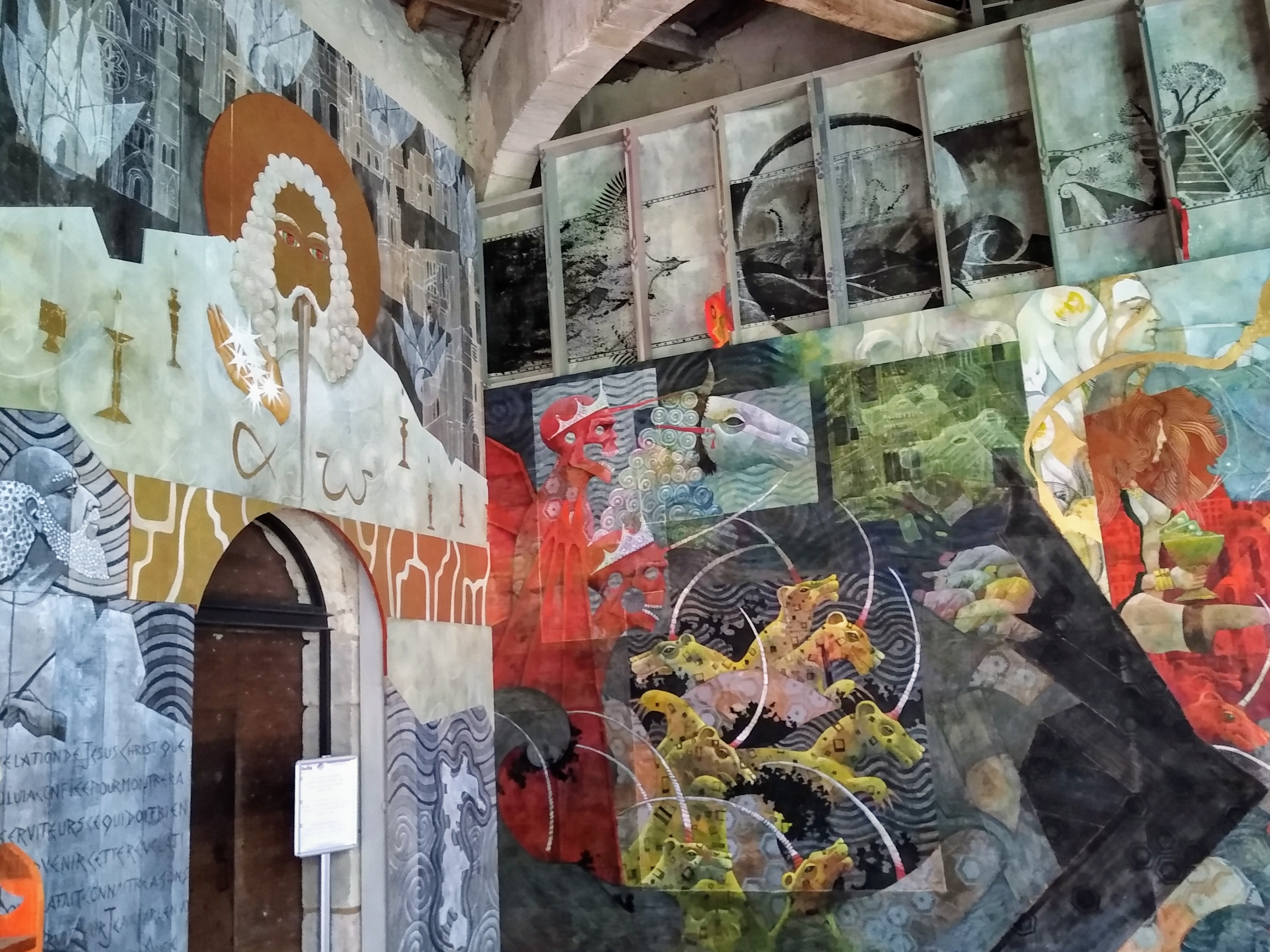 A la fois lieu de pèlerinage, site touristique et lieu de culture, ici il y a toujours beaucoup de visiteurs. Venant de la rue, on se retrouve tout de suite projeté dans le cloître. Lieu de méditation et de prière, il invite au calme et au recueillement. On peut y admirer la splendide fresque de l'Apocalypse, œuvre de François Peltier, peinte sur un côté du cloître tout entier. Dans l'église, enduits peints du 12ème siècle sur les mursde la nef, et statue de la vierge en habits dans le chœur. Un lieu majestueux qui vaut le voyage pour sa découverte.