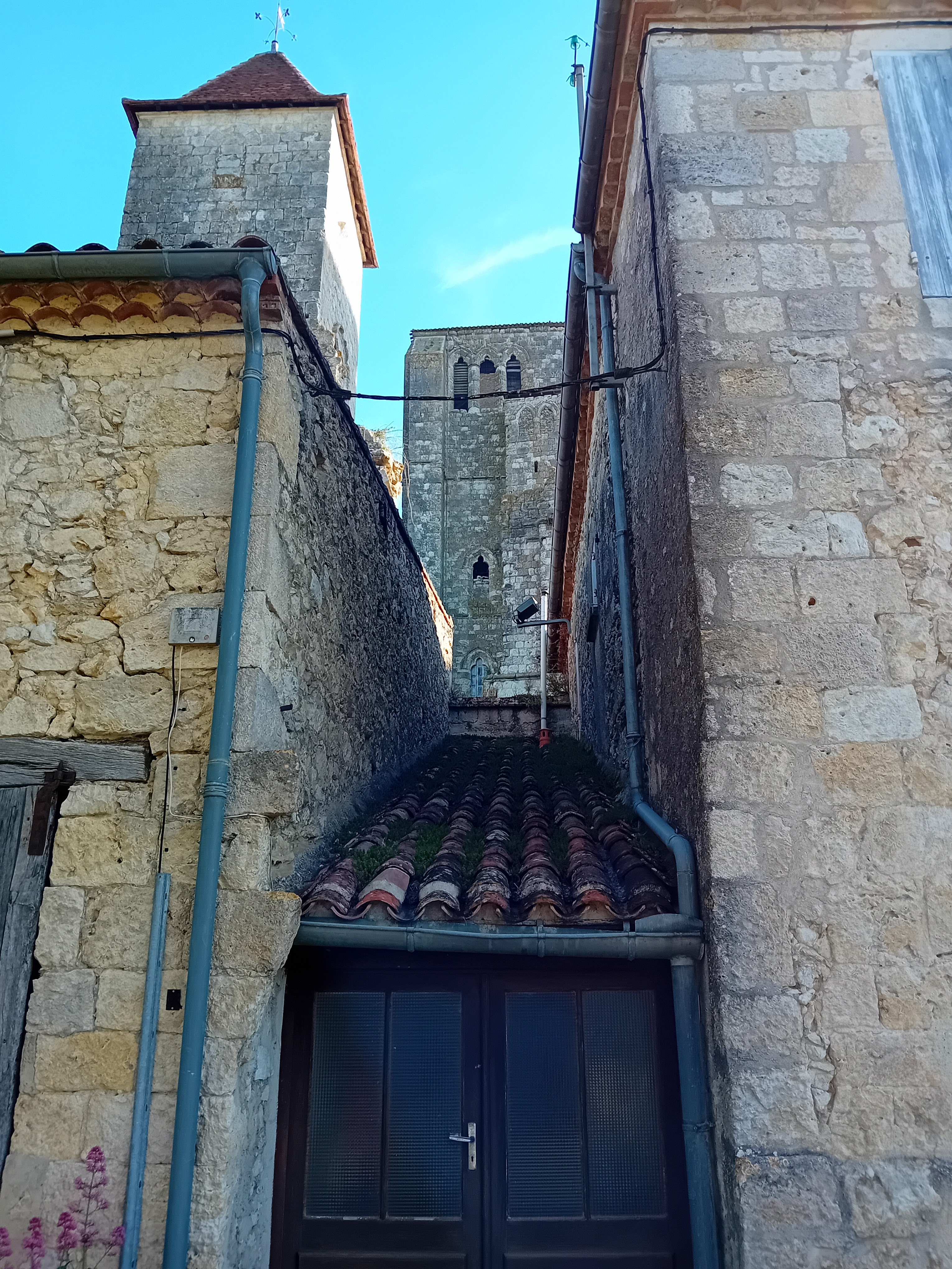 Village accueillant et fleuri. Belle vue au sommet de la tour