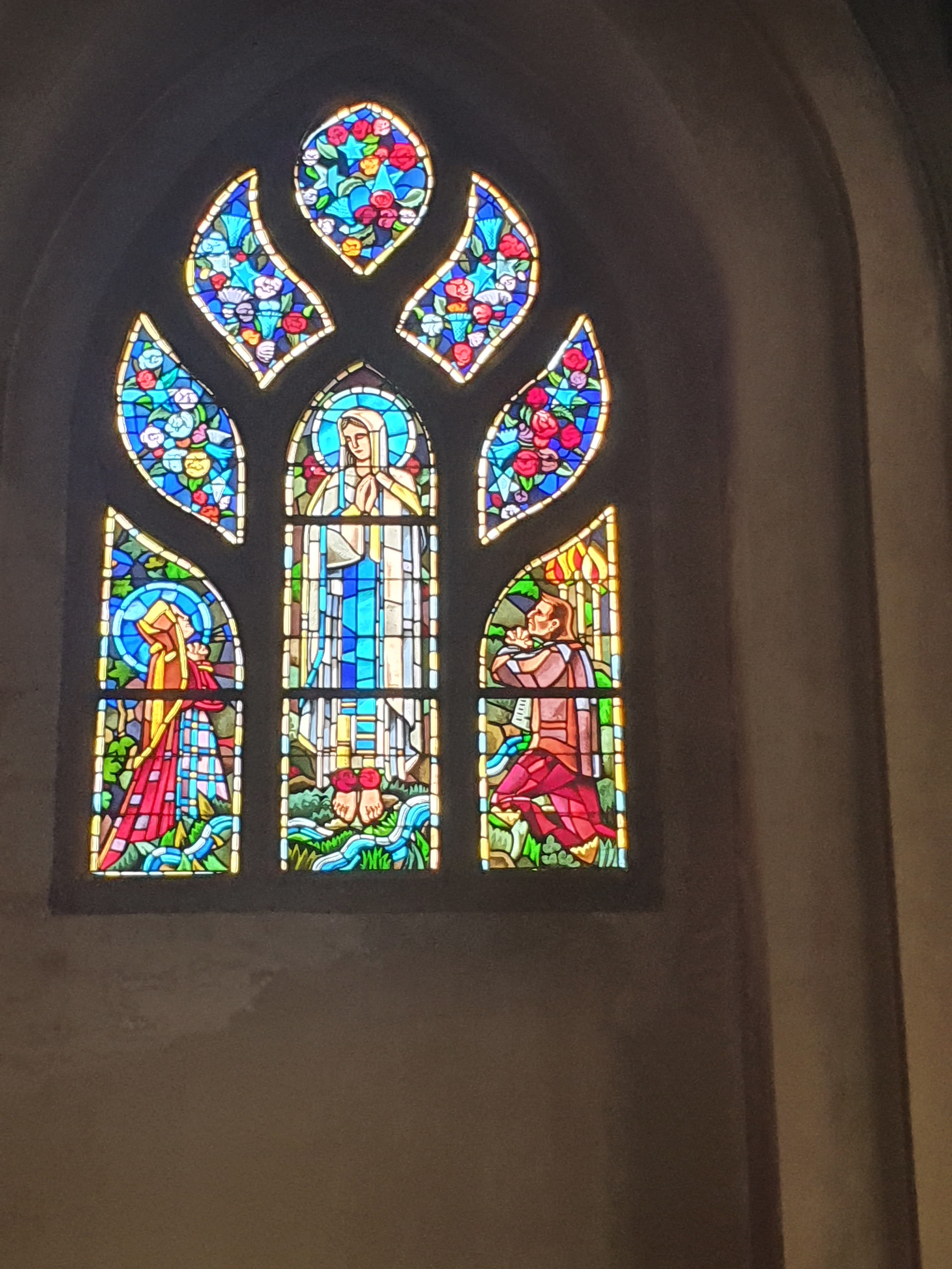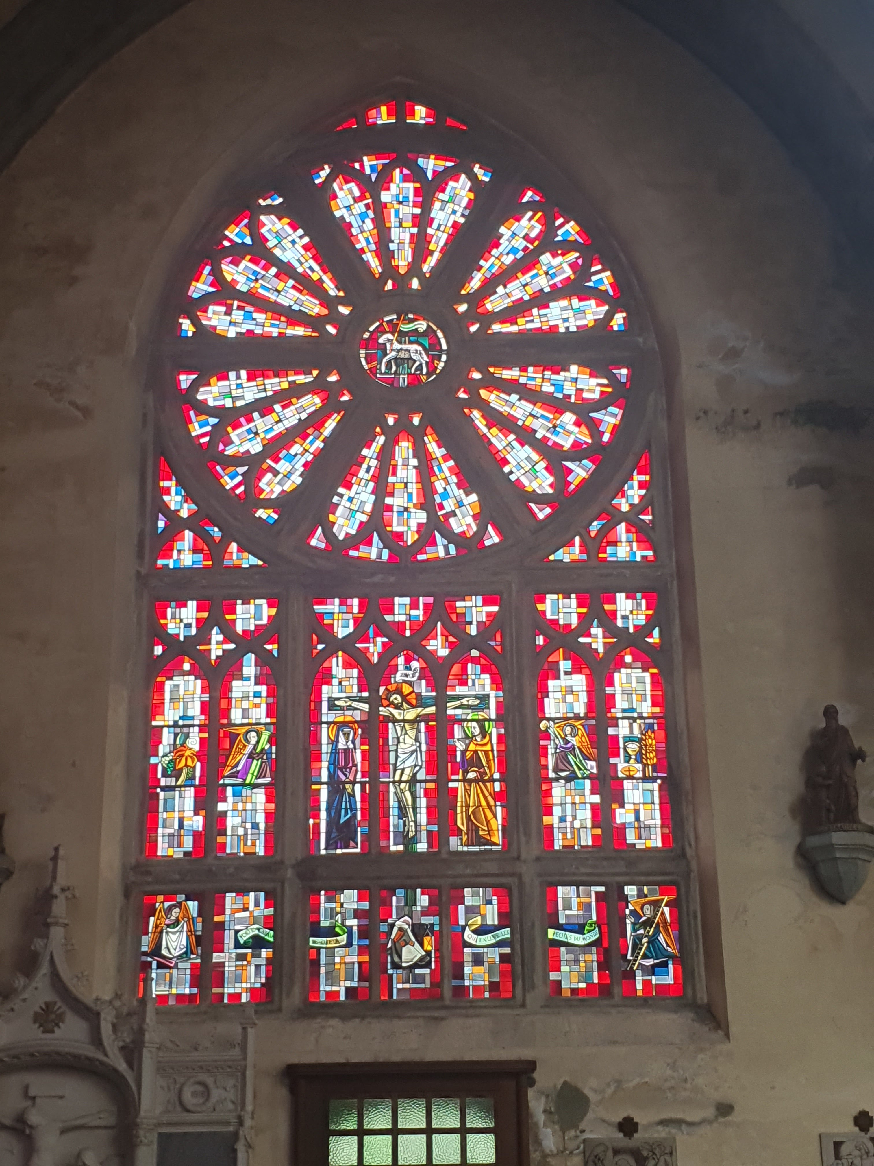 Le joyau de l'endroit sont les magnifiques fenêtres colorées. Les murs intérieurs ont besoin d'une nouvelle couche de peinture.