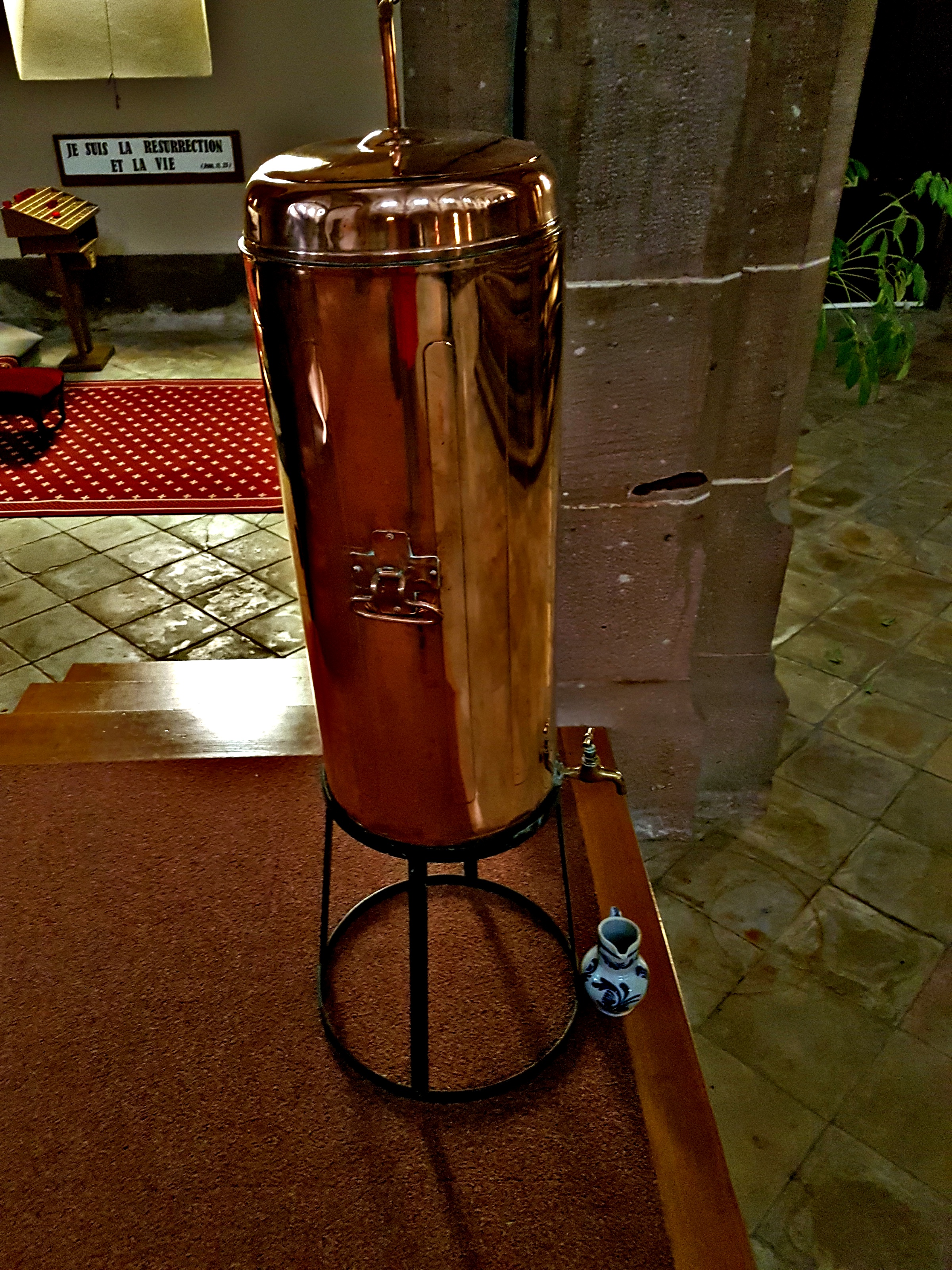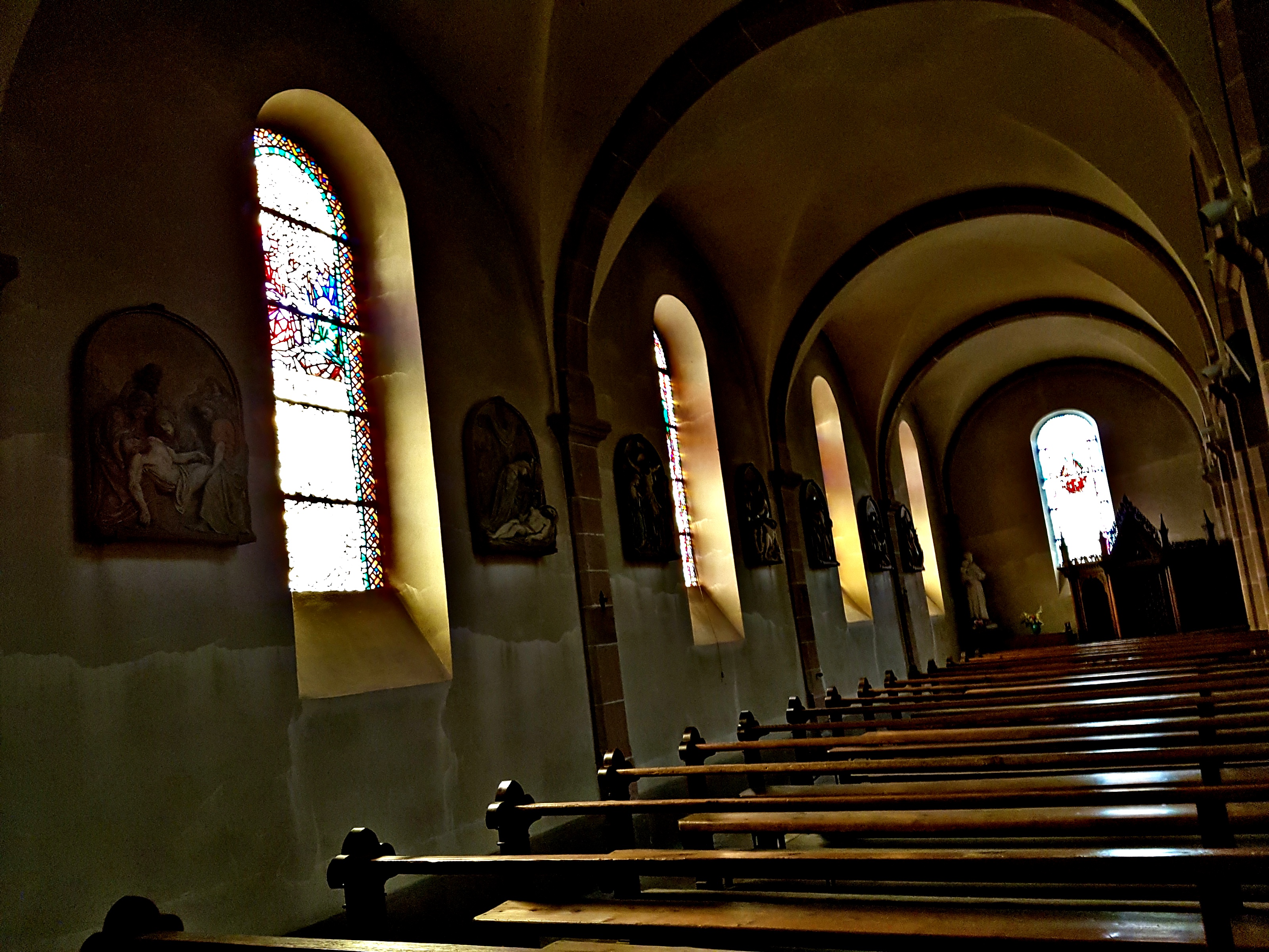 Petite église de village avec bancs chauffants et coussins. En hiver, très appécié