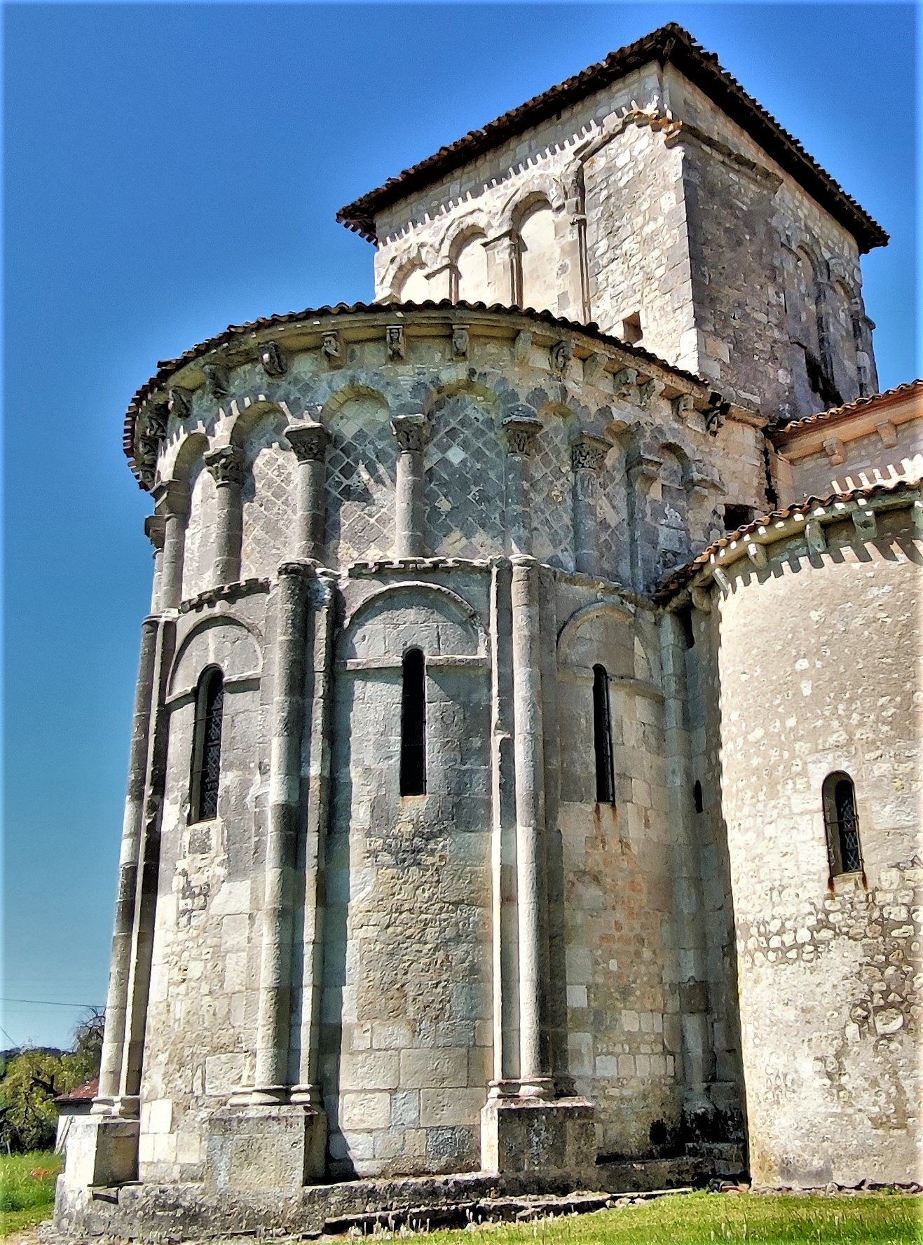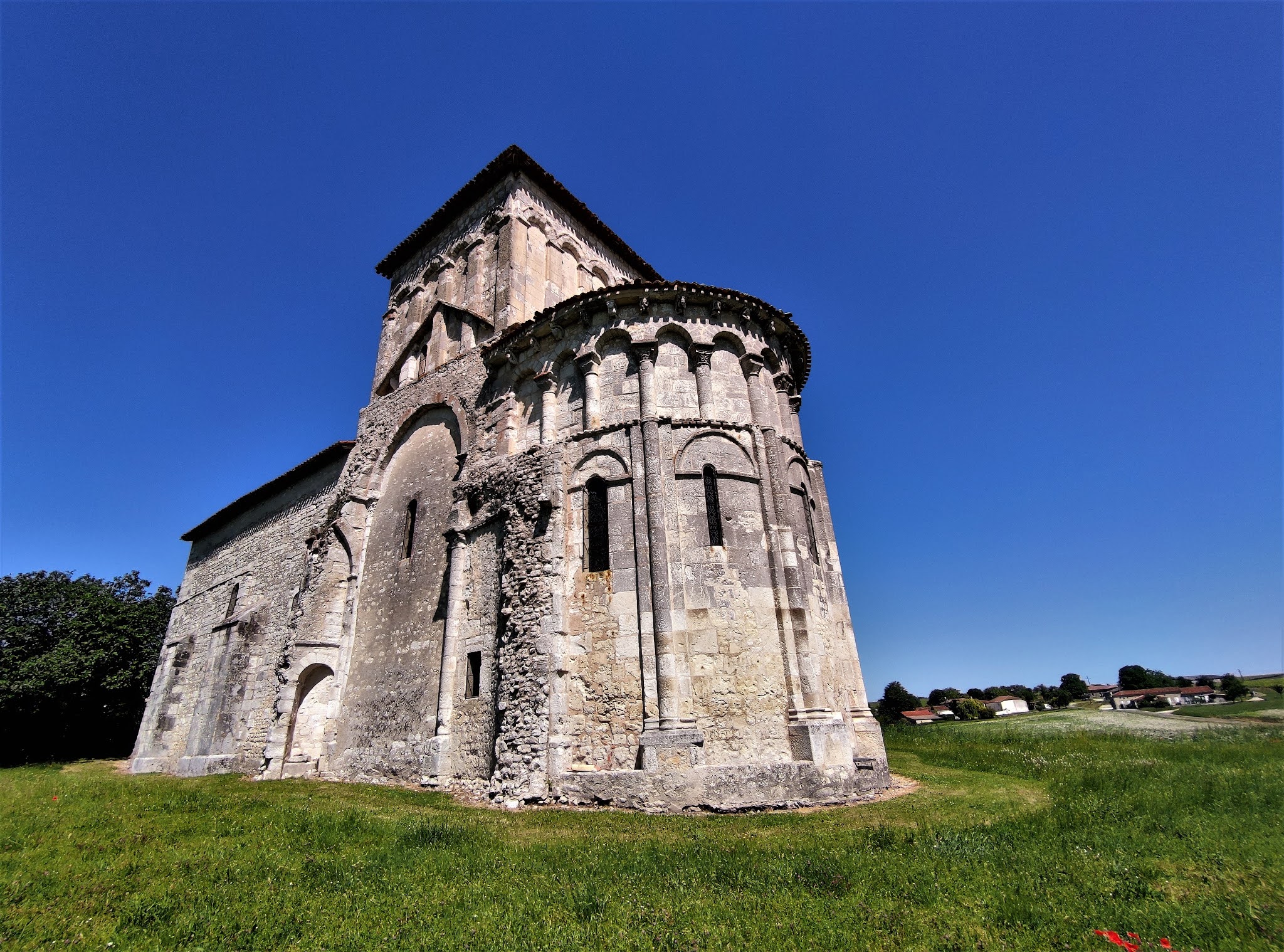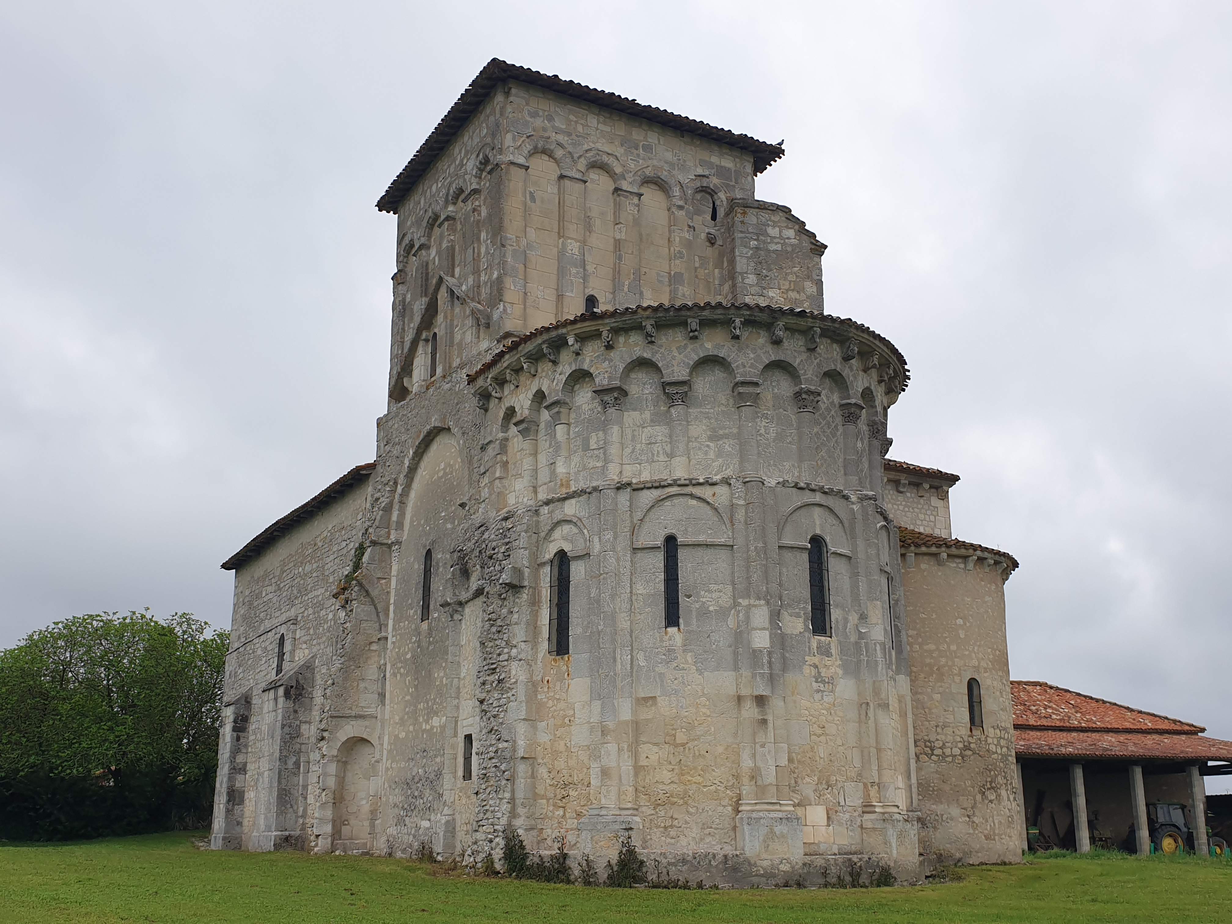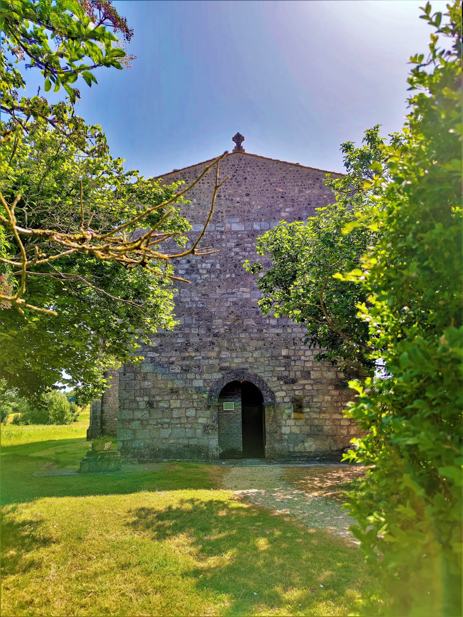 Église Romane perdue ds 'à campagne charentaise mais assez jolie avc à côté d' elle une ballade vers un bois, des chevaux...