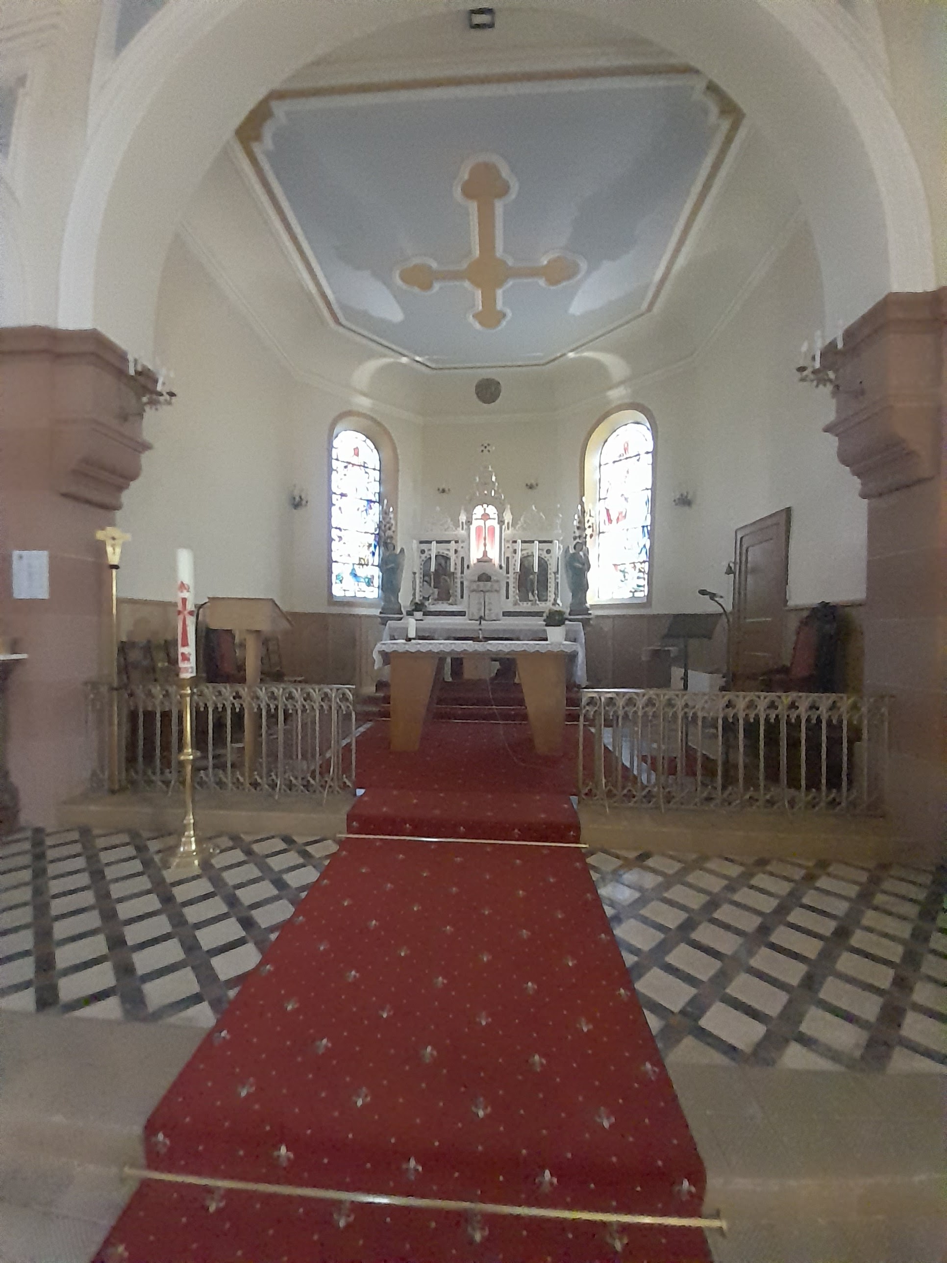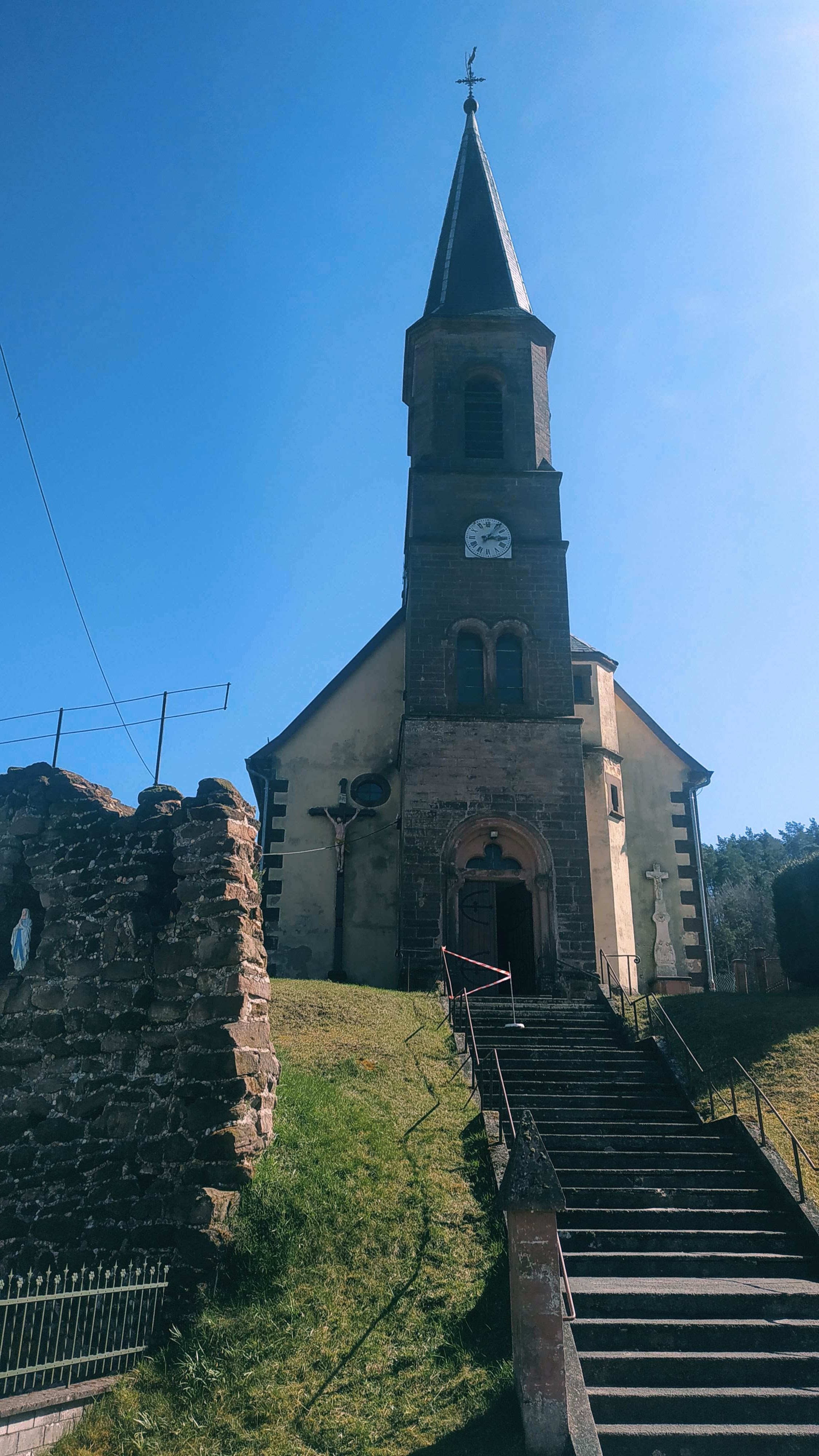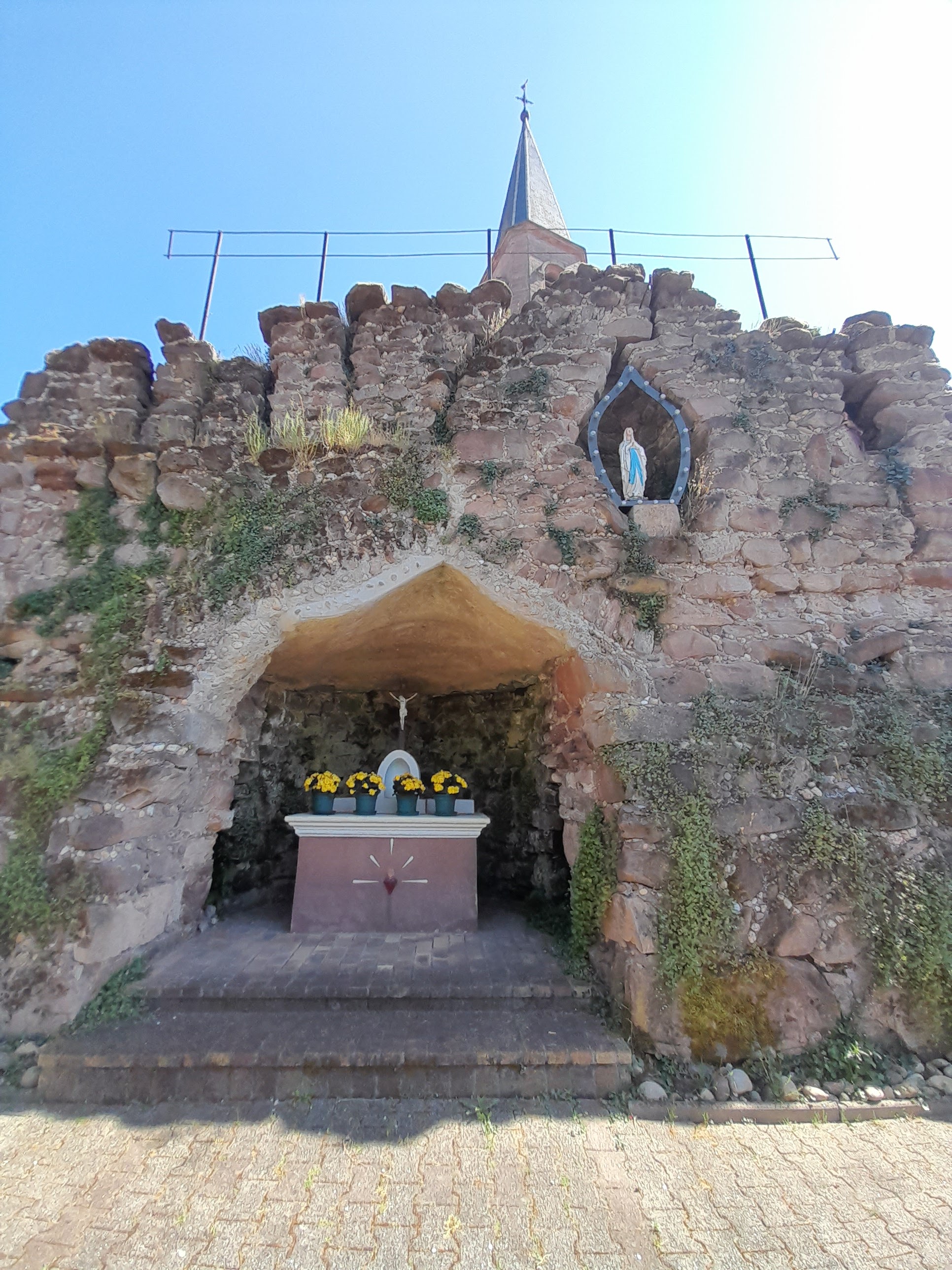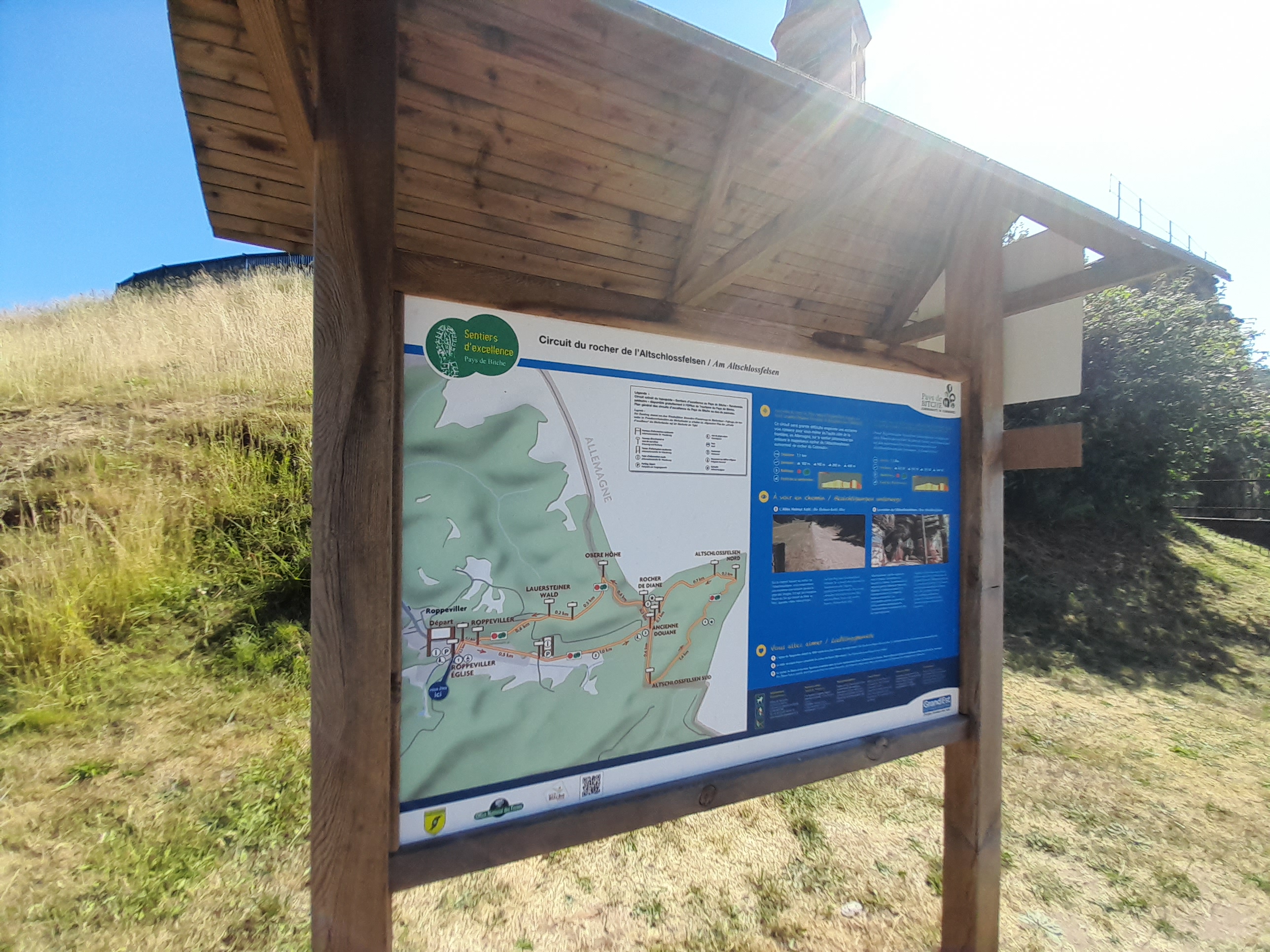Pour la randonnée de l'Altschlossfelsen, il faut commencer la rando en face de l'église, donc retourner sur la route principale et tourner à droite. Sinon il y a un autre parking au début du parcours ( traverser Ropperviller)