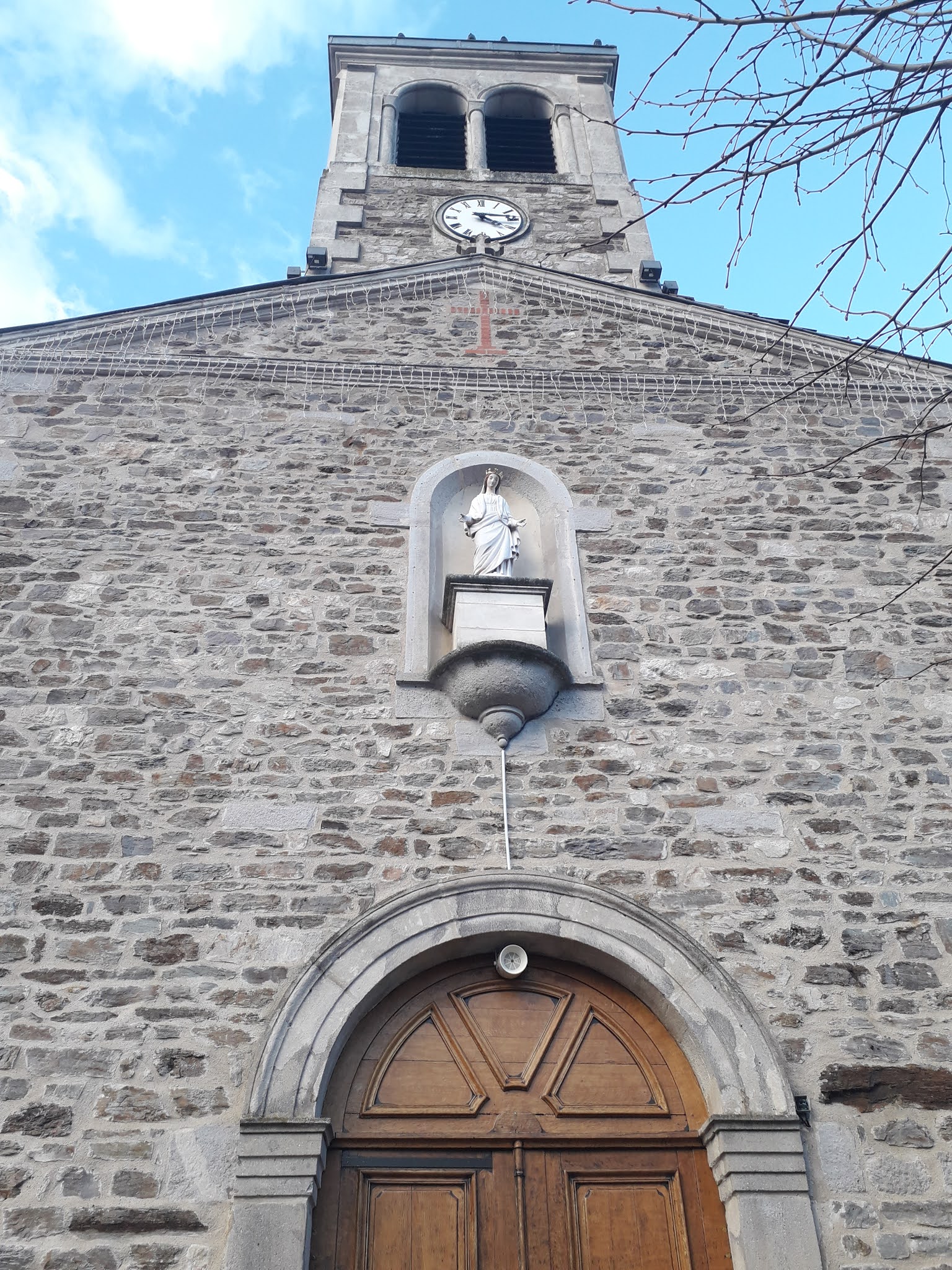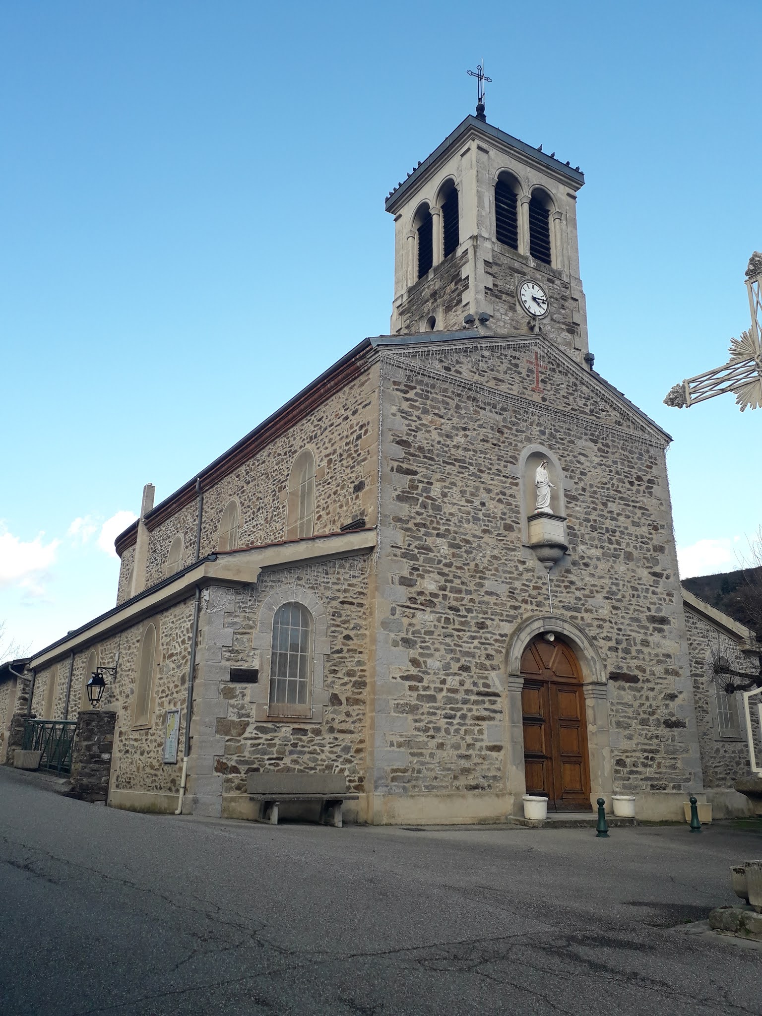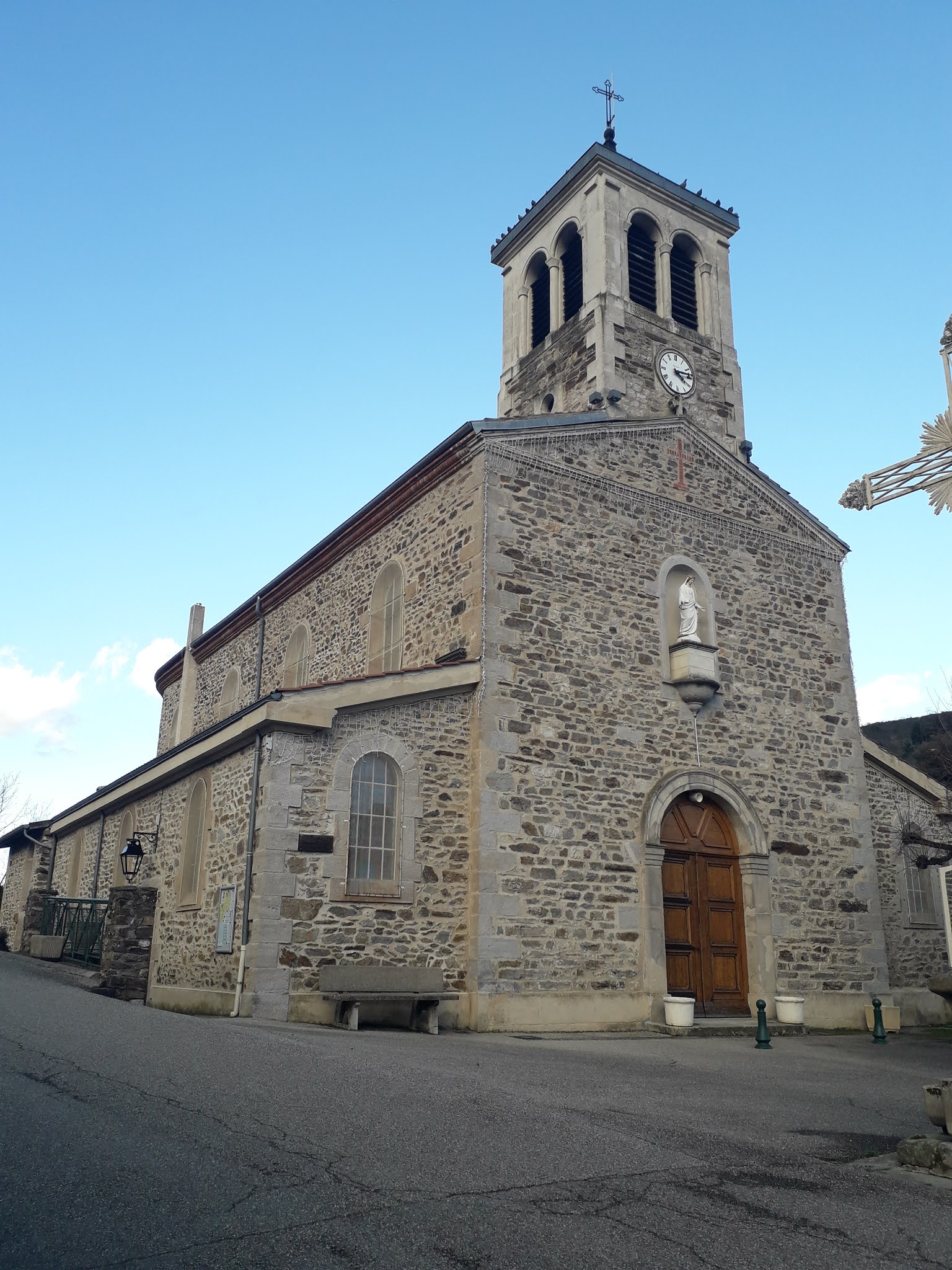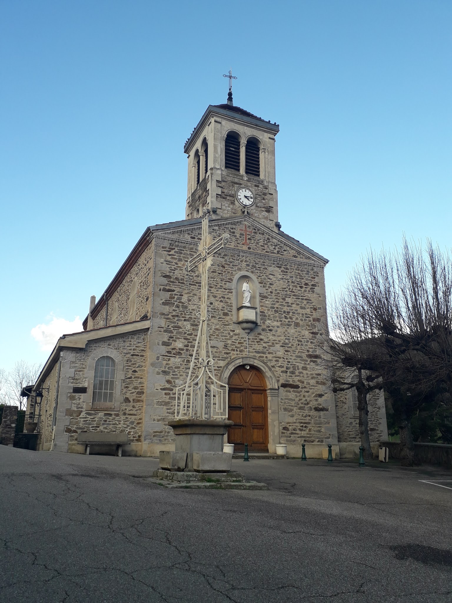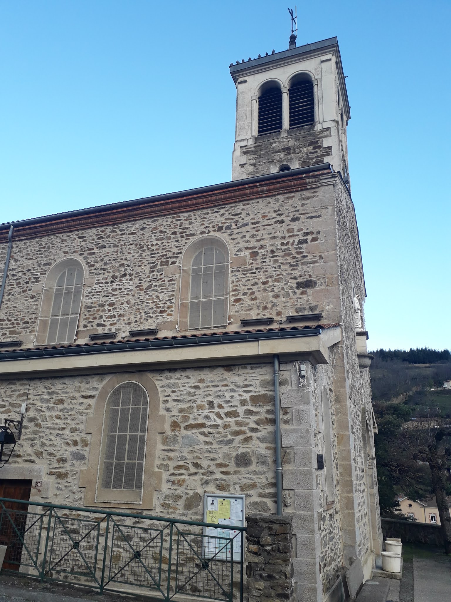 Belle église en style roman surplombant le village de la Terrasse-sur-Dorlay.