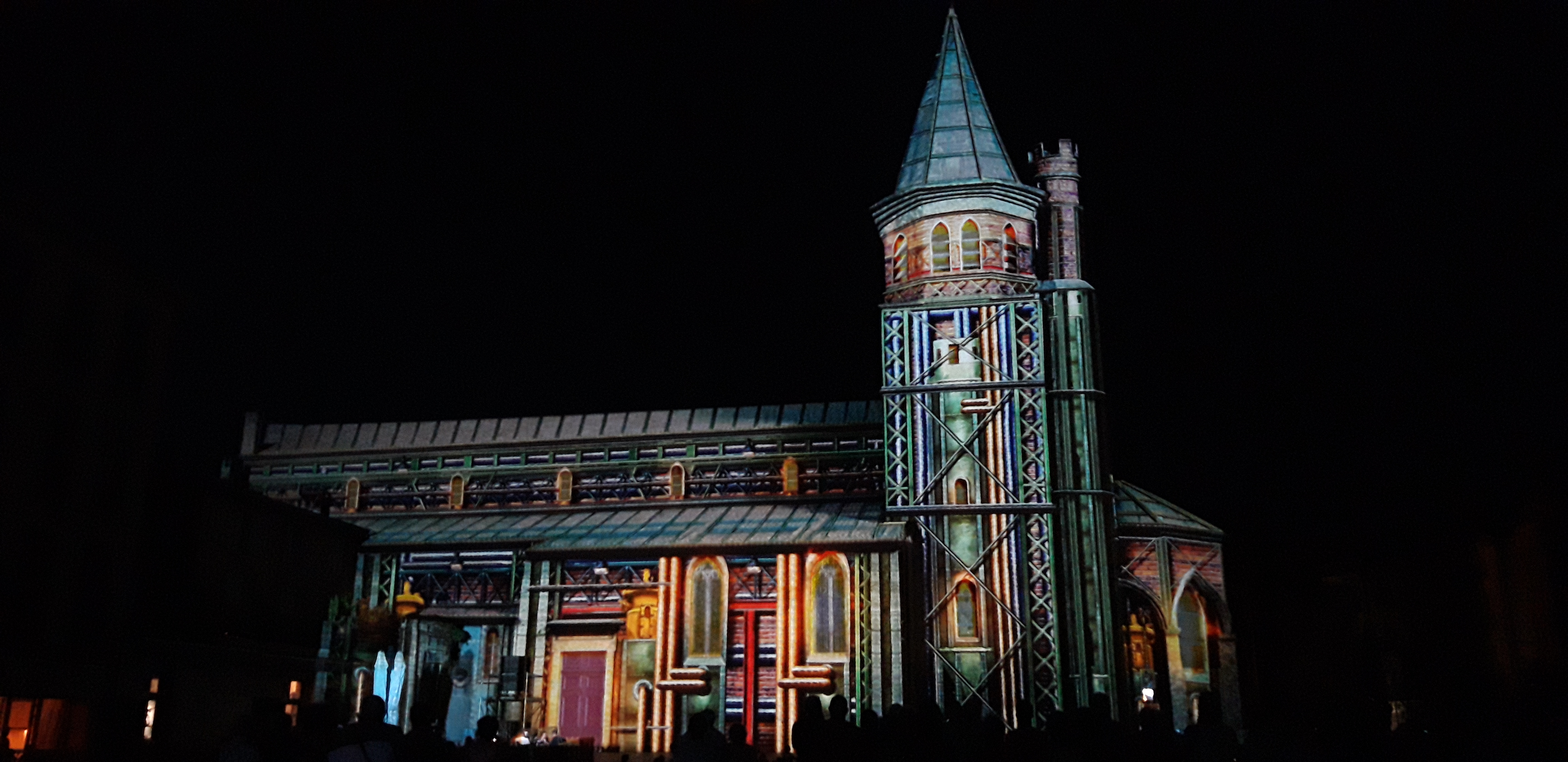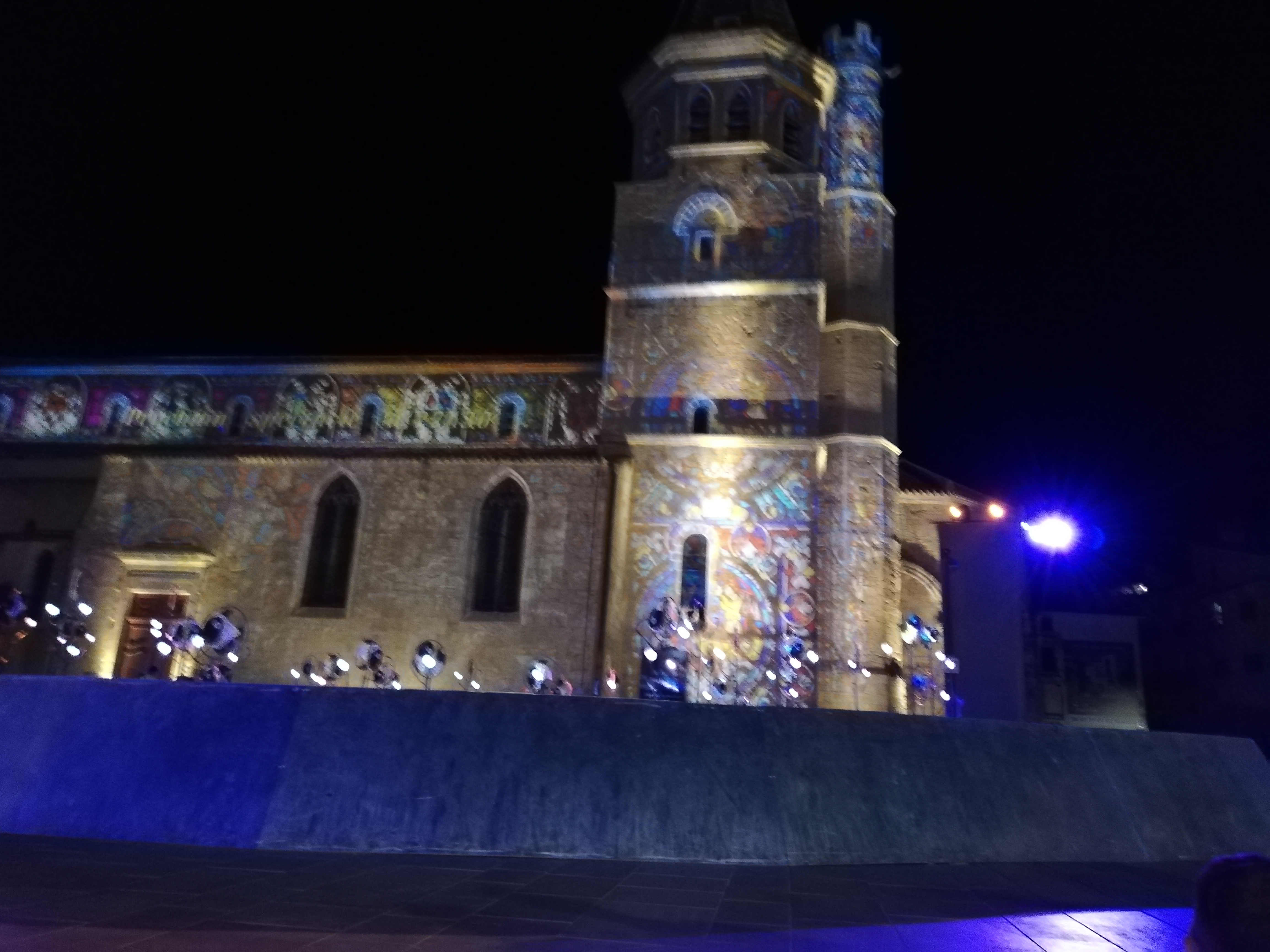 Belle église sur une belle place. En juillet, l'église est illuminée la nuit avec toutes sortes de projections