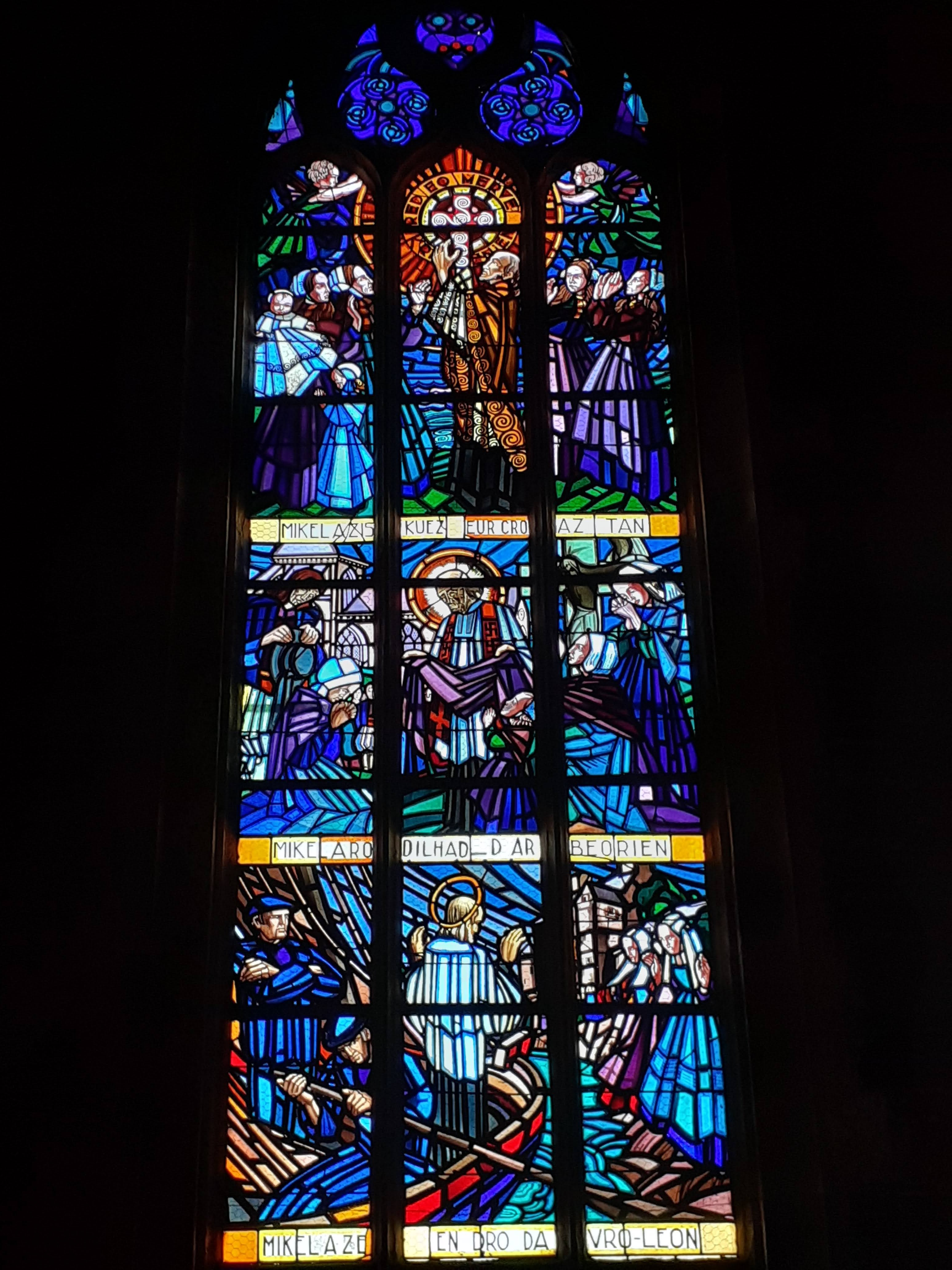 C dans cette église, celle du Conquet, port de pêche de caractère, où je passais tous mes étés qd gt enfant. Cette église fut construite pierre par pierre par les habitants du Conquet qui transportèrent ces pierres de l'abbaye de Saint-Mathieu jusqu'au Conquet car la petite chapelle de Lochrist était trip petite et trop éloignée du Conquet. Mais je ne saurais dire à quelle époque cela a eu lieu