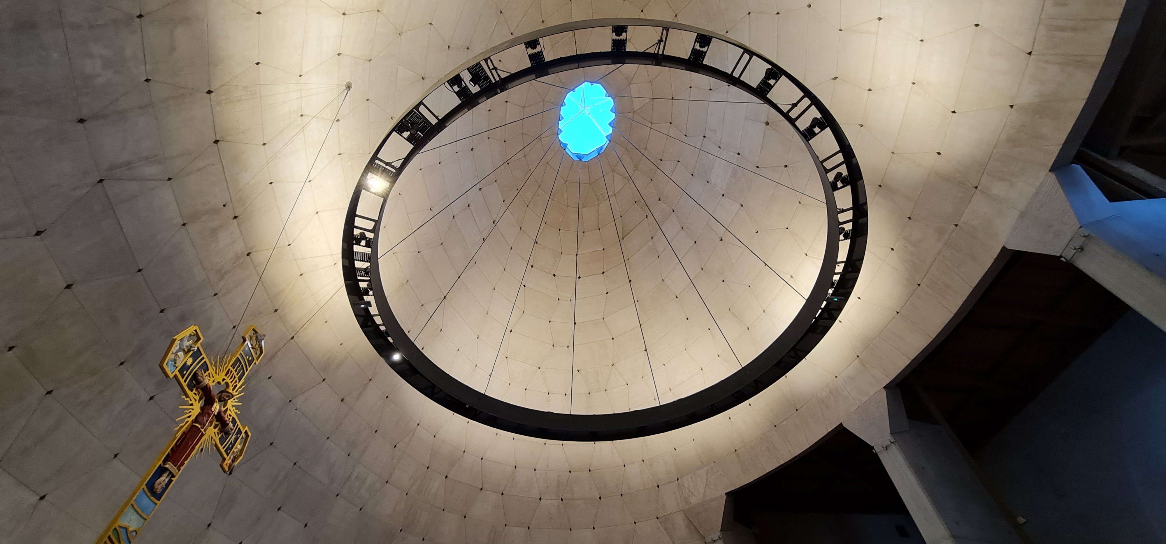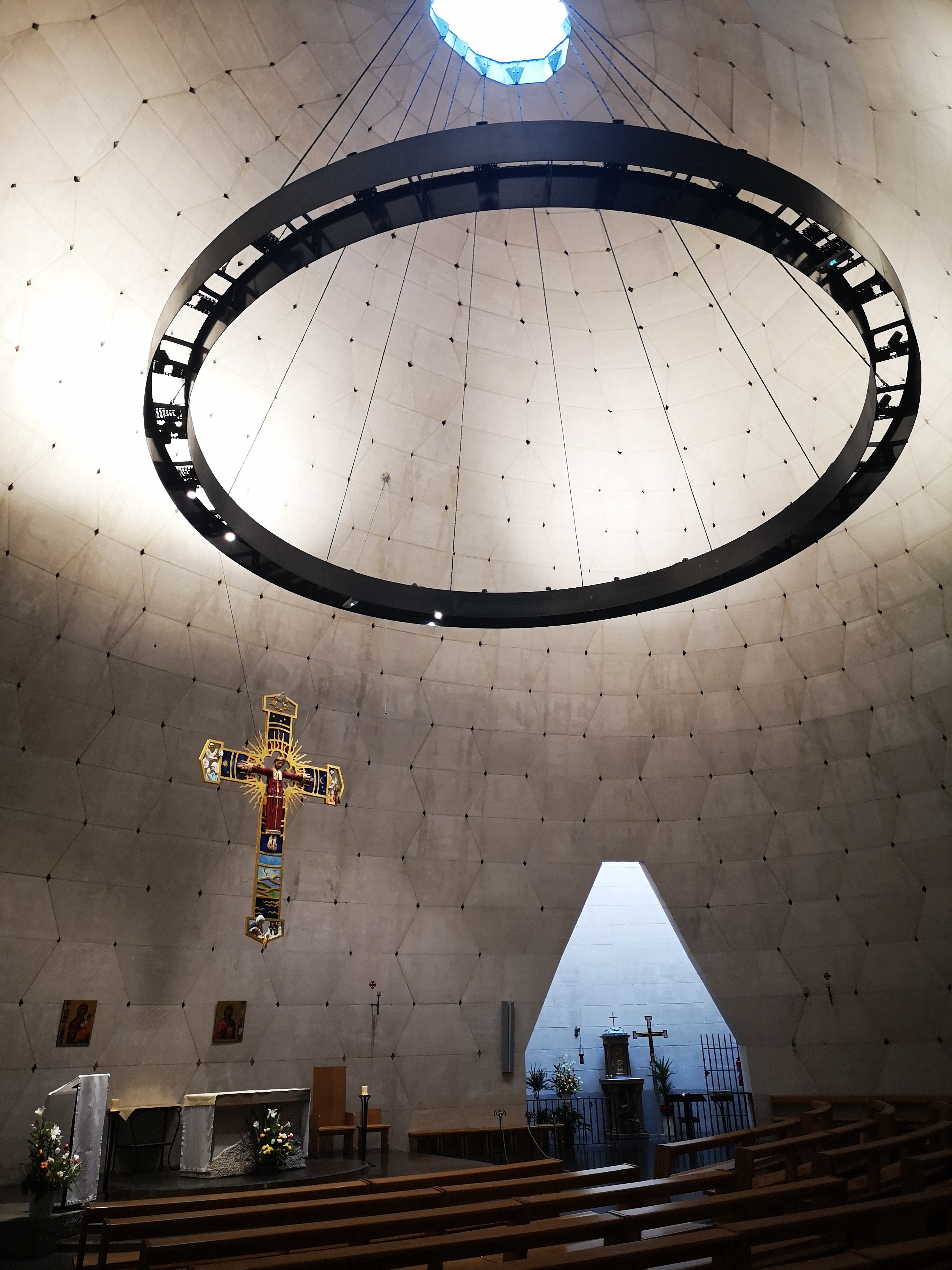Belle église moderne semi sphérique. Beaucoup de clarté.