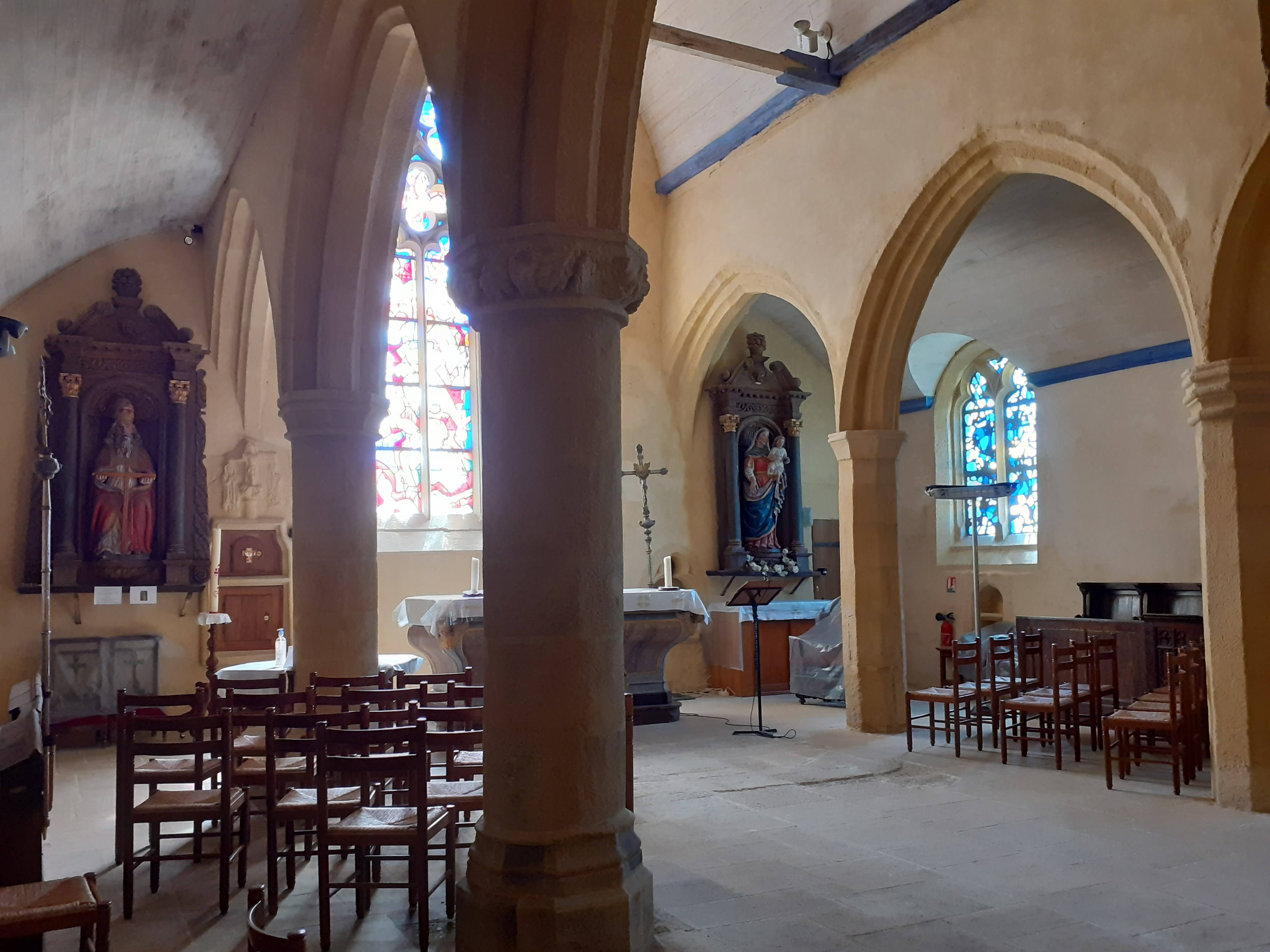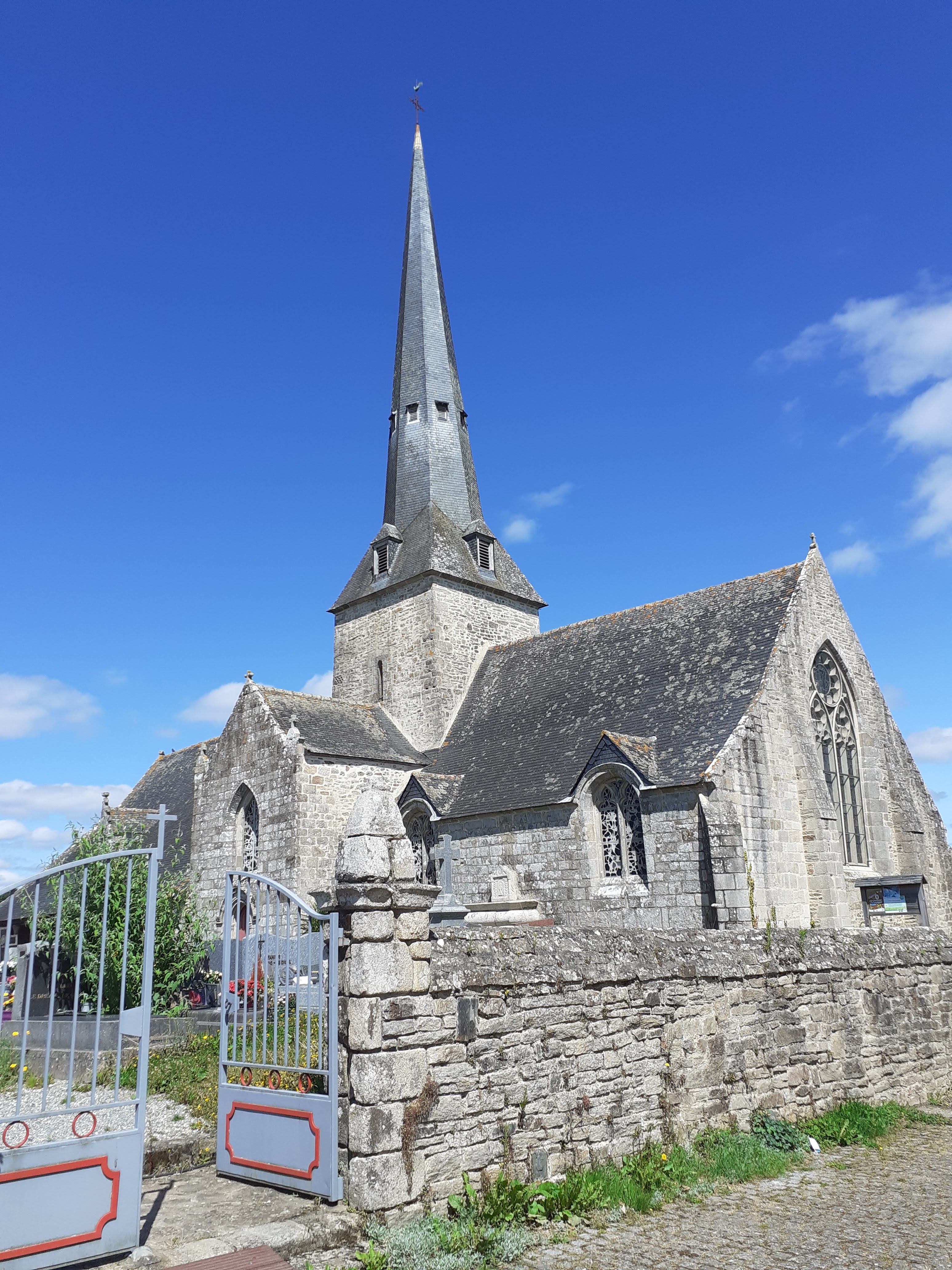 Eglise atypique du xii ème siècle. Classement aux monuments historiques. Eglise en forme de croix latine surmonté d'une tour carrée romane. Nef a trois vaisseaux.les chapiteaux romans de la nef et de la croisée constituent un courant roman breton.