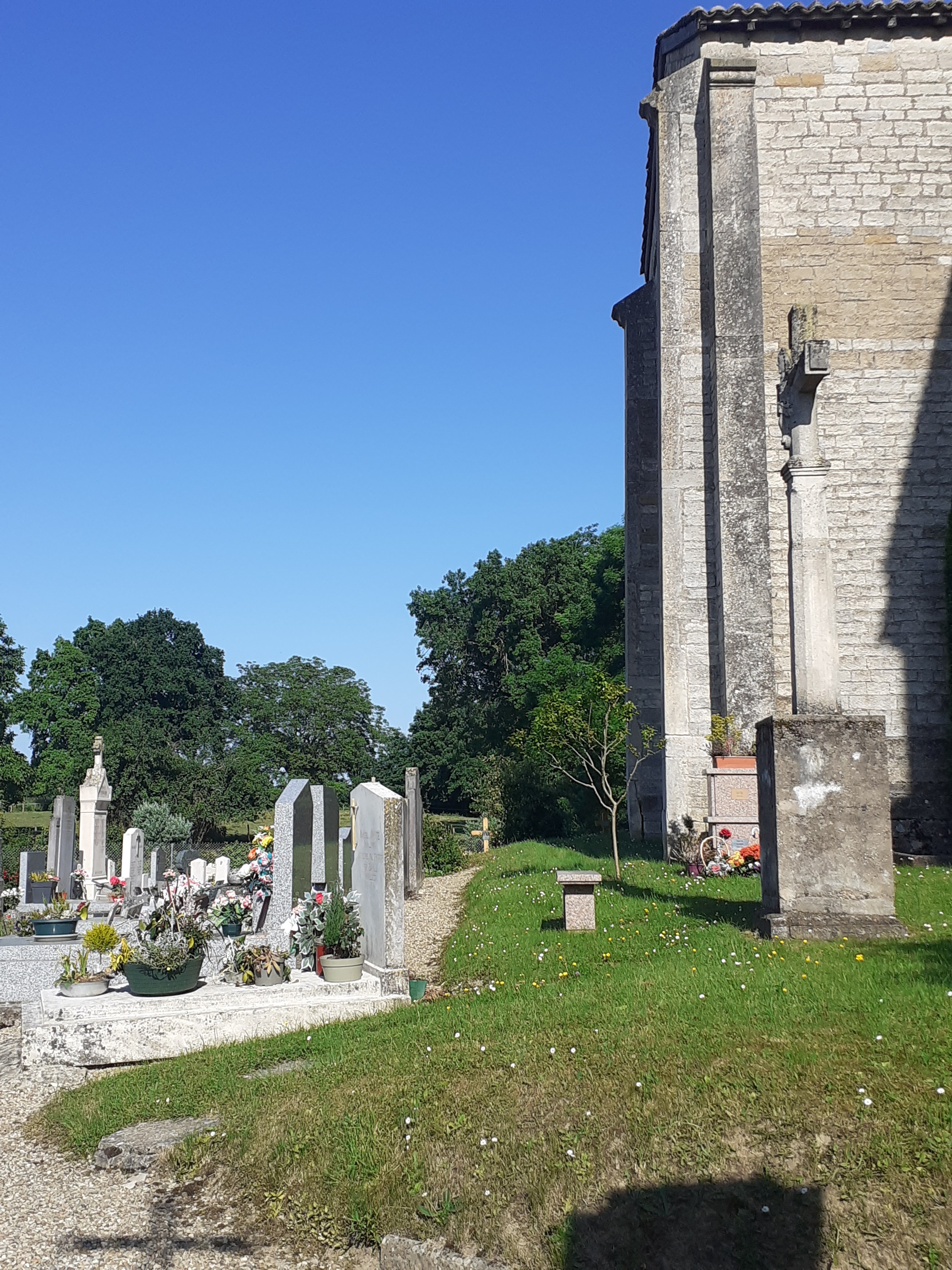 Très belle église avec un cimetière à côté et un monument aux personnes tuées par la France