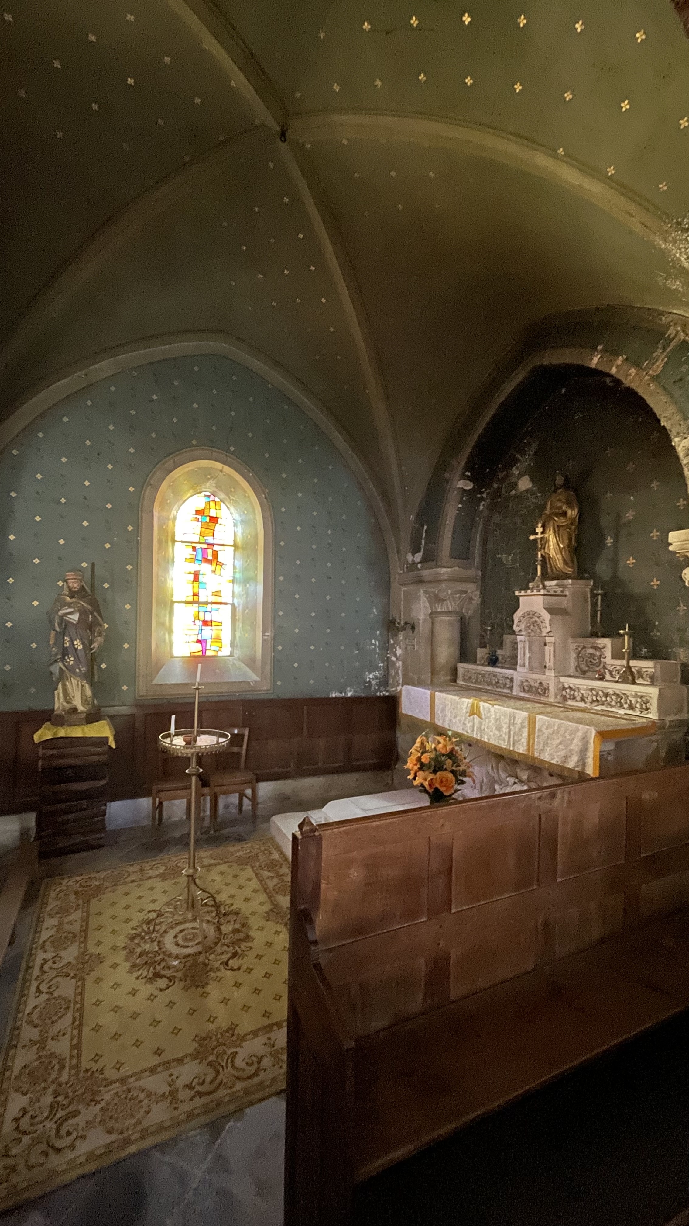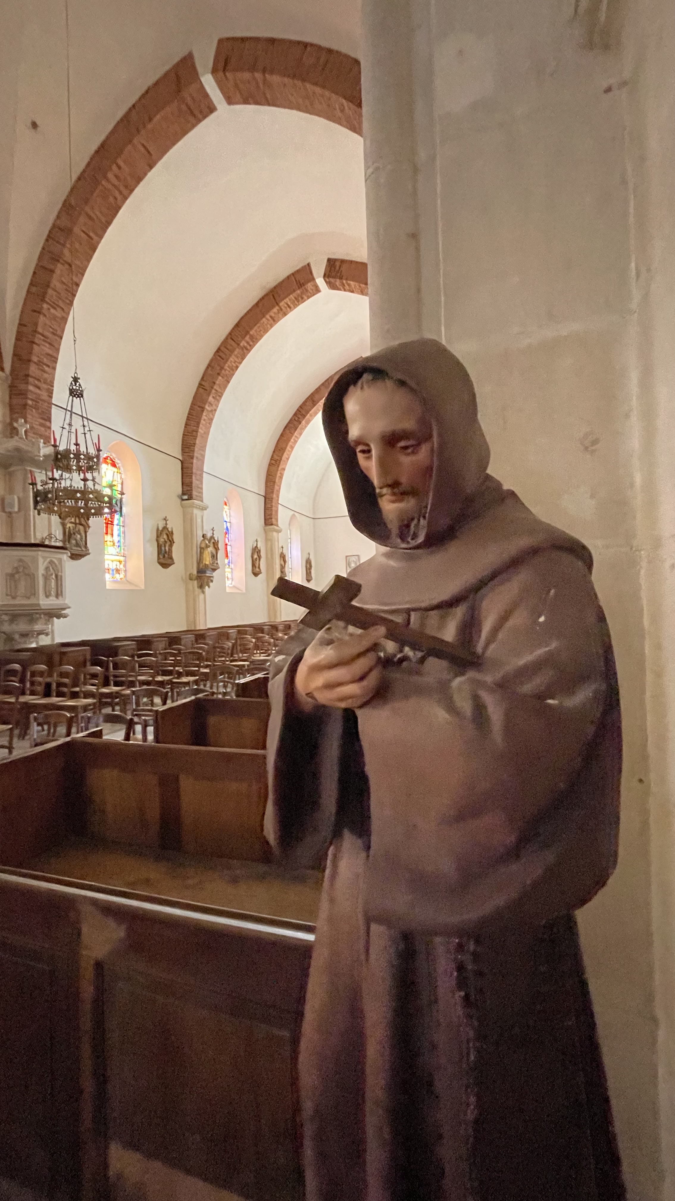 Très jolie église qui mérite que l’on s’y attarde. De très beaux vitraux, et un agencement original entre les chaises et les bancs.
