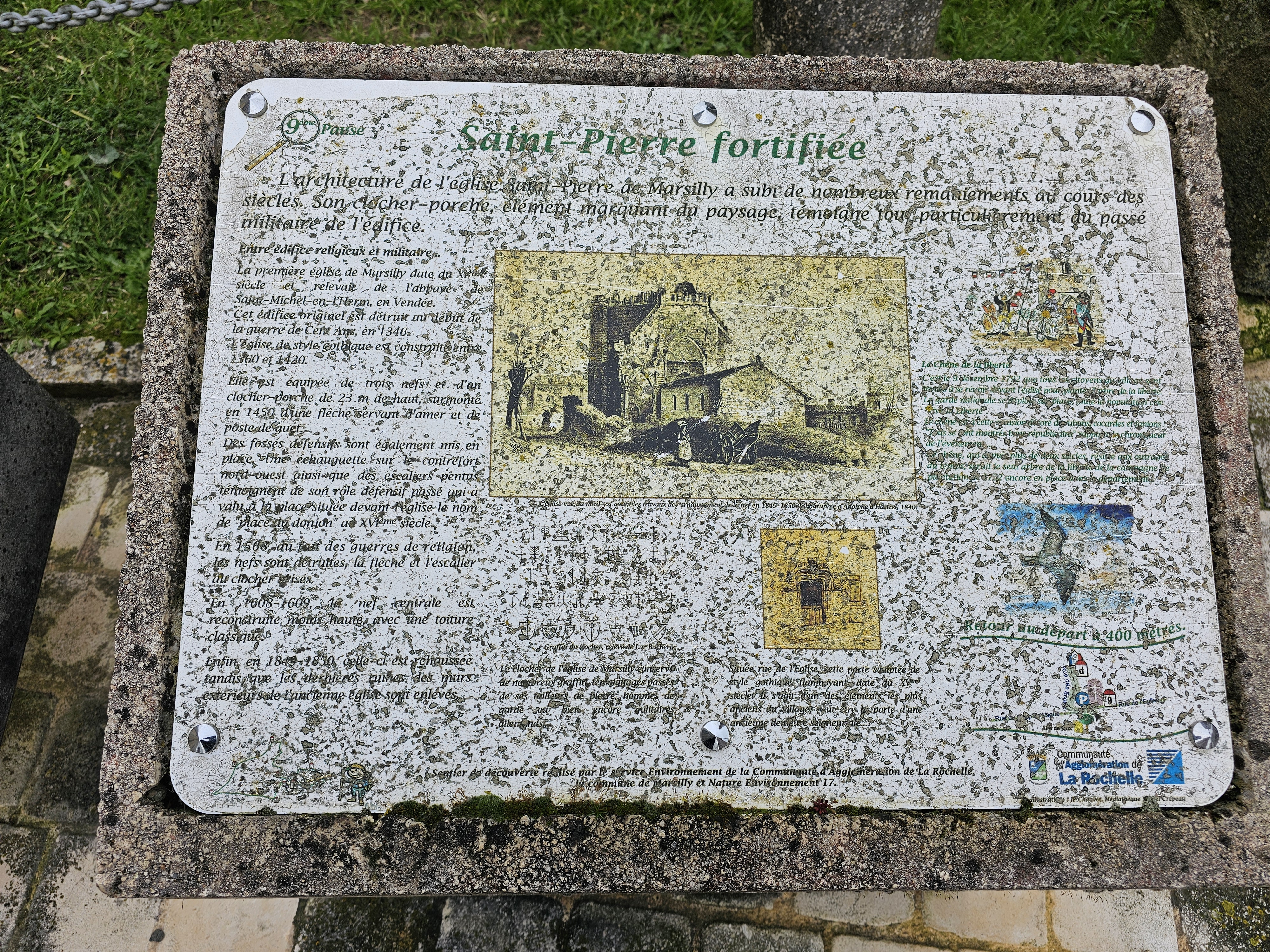 Première église de ce type que j'ai pu voir. Un édifice du 11e siècle qui a su traverser les époques en étant actuellement dans un état plus que correct. Dommage que l'on ne puisse pas visiter l'intérieur. Face à l'église se trouve l'arbre de la Liberté qui ajoute un cachet bien typique à cet endroit de Marsilly.