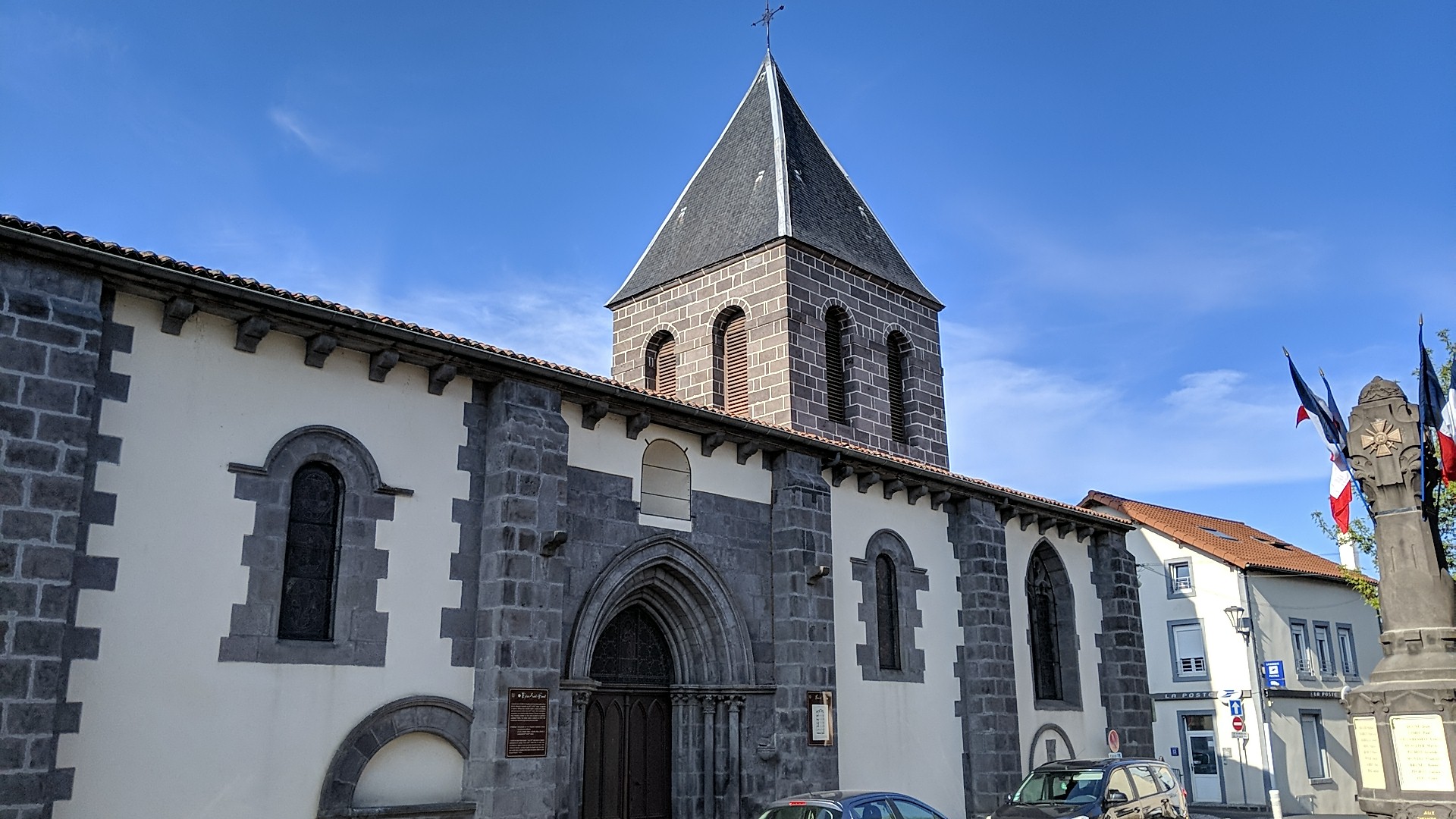 L'église est située au cœur du village, à proximité immédiate du théâtre et de la mairie. Elle a été construite au IXe siècle et est dédiée à St Bonnet (623-710), ancien évêque de Clermont-Ferrand. Des sources d'archives attestent de la restauration de la partie Est de l’Église dans la seconde moitié du XIIIème siècle (1270-1280). Histoire et dates importantes Fondation de l'église au IXe siècle et restauration partielle de la partie Est de l'église dans la seconde moitié du XIIIe. Époque et styles XIIIème Roman Éléments remarquables Portail(s) Plan : L'église est construite selon un plan allongé terminé par une abside et deux chapelles orientées. Toutes trois semi-circulaires. L'édifice comporte six travées, chacune marquée en façade par des contreforts. Élévation extérieure : La façade occidentale est à deux niveaux d'élévation. Au premier, un portail en arc légèrement brisé, à voussures et piédroits, au linteau polygonal sculpté est encadré par deux contreforts massifs, il est surmonté au second niveau par une rose. De part et d'autre de l'ensemble deux baies rectangulaires et étroites sont munies de vitraux. Aux angles la façade est bordée de contreforts. Il existe un second portail au niveau de la quatrième travée, ouvrant sur la façade Sud, lui aussi en arc légèrement brisé, à voussures et piédroits, au tympan garni d'un vitrail. Il est encadré par deux contreforts massifs. Au-dessus, une niche ayant accueilli une pietà. Les murs gouttereaux sont percés de baies en plein cintre avec vitraux, en alternance avec des contreforts. La baie de la dernière travée avant l'abside, est elle ouverte par une baie en arc brisé avec un décor en remplage flamboyant. Un clocher quadrangulaire surmonte l'édifice. Il est percé sur chacune de ses quatre faces, de deux baies en plein cintre munies d'abat-sons. L'abside est éclairée par trois fenêtres en plein cintre, et chaque chapelle est elle aussi munie d'une fenêtre en plein cintre. L'édifice est couvert par une toiture à double pente, le clocher est lui recouvert par une toiture en pavillon. Élévations intérieure : Le vaisseau central tout comme les bas cotés sont couverts par des voutes d’arêtes. Les travées sont scandées par des arcs doubleaux. Elle peut compter parmi les églises d’Auvergne les plus intéressantes. L’ensemble de l’architecture du bâtiment s’apparente au début de l’art roman, avec ses trois absides voûtées et l’absence de transept. Elle est surmontée d’un massif clocher carré coiffé d’un toit pyramidal. Elle est partagée en une grande nef et deux bas-côtés terminés à l’Est par les trois absides.