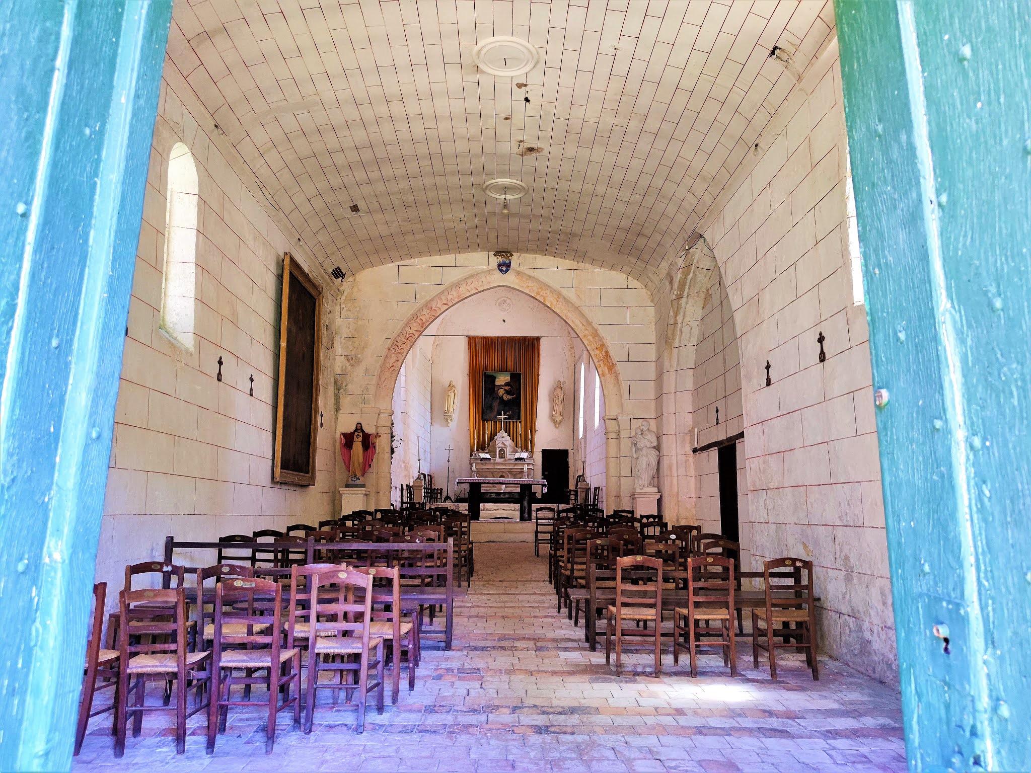 La simplicité fait le charme et la richesse de cette église qui s'éleva il y a mille ans. Une église du début du 2ème millénaire, début de l'aire romane. Les murs datent de cette époque, 11ème siècle, même si l'église fut reconstruite au 12ème siècle. Des reprises et modifications ont eu lieu au 14ème, 15ème, 17ème, 19éme, et 20ème siècles. Inscrite en totalité ainsi que les terrains qui l'entourent depuis avril 2013, c'est son intérêt archéologique qui lui a procuré cette protection. Elle possède des contreforts cylindriques, en petit appareil, au niveau du chœur, une rareté en France. Quant aux terrains, ils sont susceptibles de dissimuler quelques trésors. La nef est voûtée de plâtre en anse de panier, le chœur en berceau. Les ouvertures sont en plein cintre, sauf une baie murée, que j'ai découvert dans une pièce attenante à la nef. La simplicité fait le charme et la richesse de cette église millénaire. L'essentiel du bâtiment est en petit appareil, seuls, des contreforts carrés sont en pierres de taille.