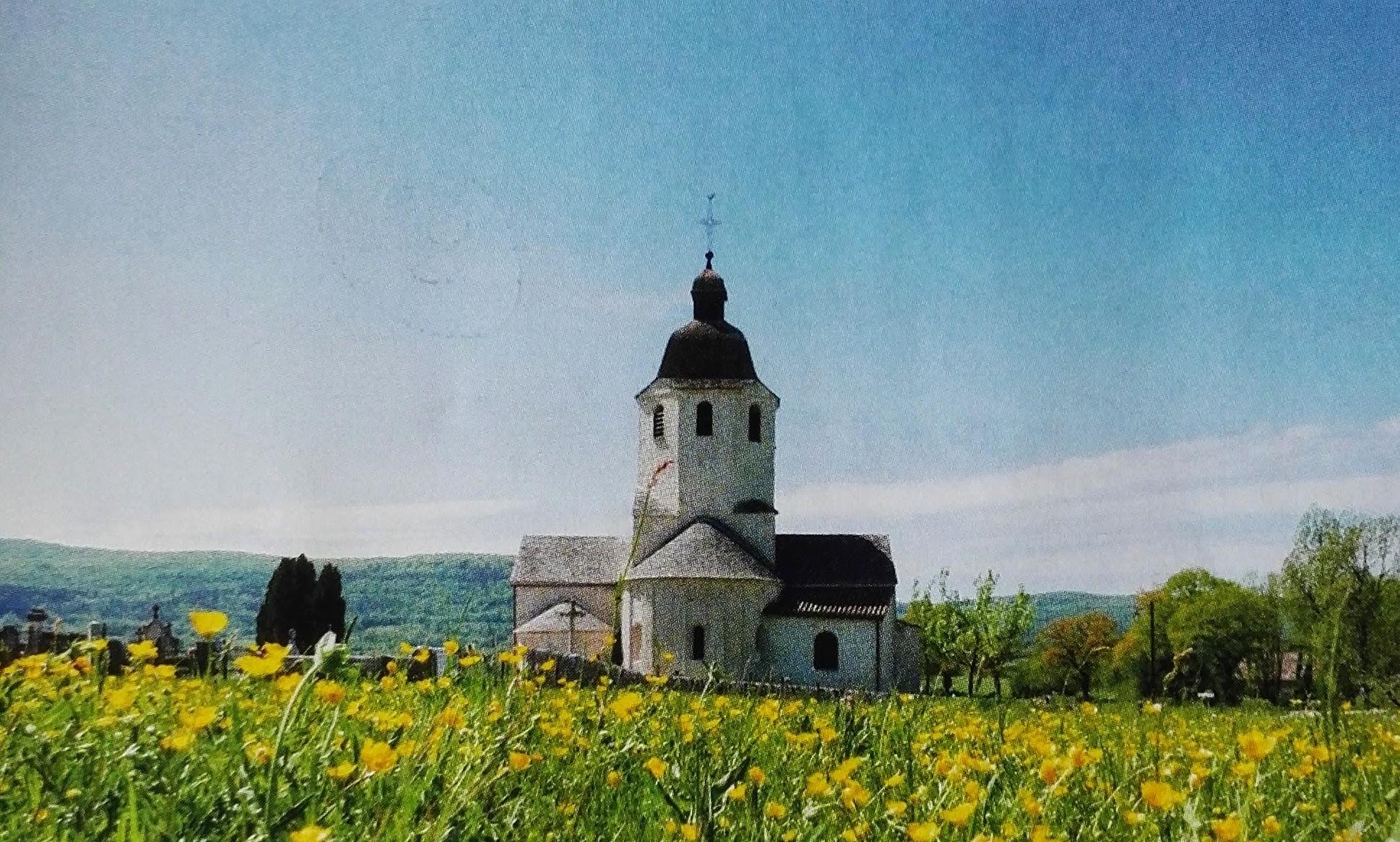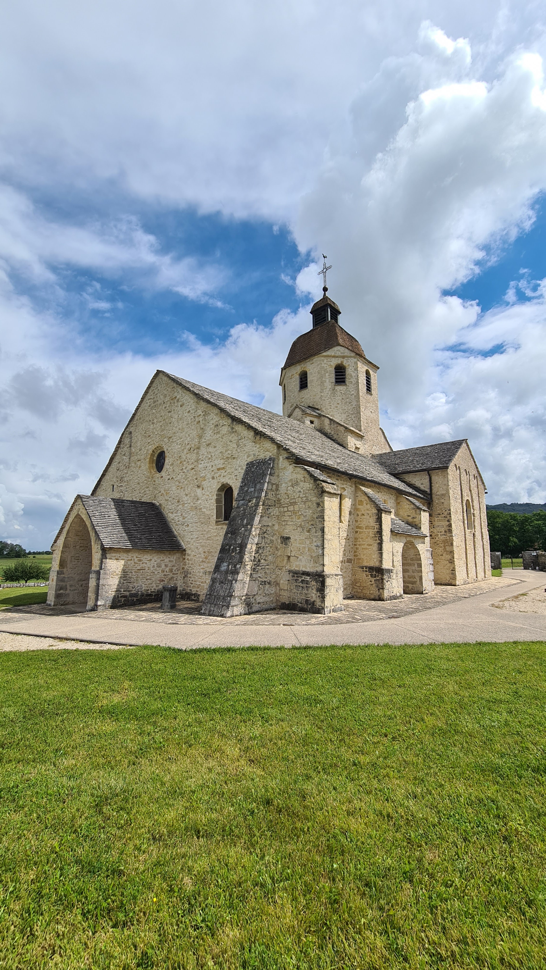 Véritable joyau d'art roman, miraculeusement intact, sur les bords du Revermont. Un peu à l'écart du village de St-Hymetière, elle veille imperturbablement sur la campagne jurassienne depuis le 11e s. Elle est l'ancienne église romane d'un prieuré qui aurait été fondé au Ve s. par un moine nommé Hymeterius, provenant de l'abbaye de Saint-Claude. Portant fièrement un joli clocher octogonal, très bien conservé, pour l’anecdote c'est dans cette église qu'en 1821 a été baptisé un certain Louis Vuiton, fondateur en 1854 du groupe de maroquinerie de luxe international.
