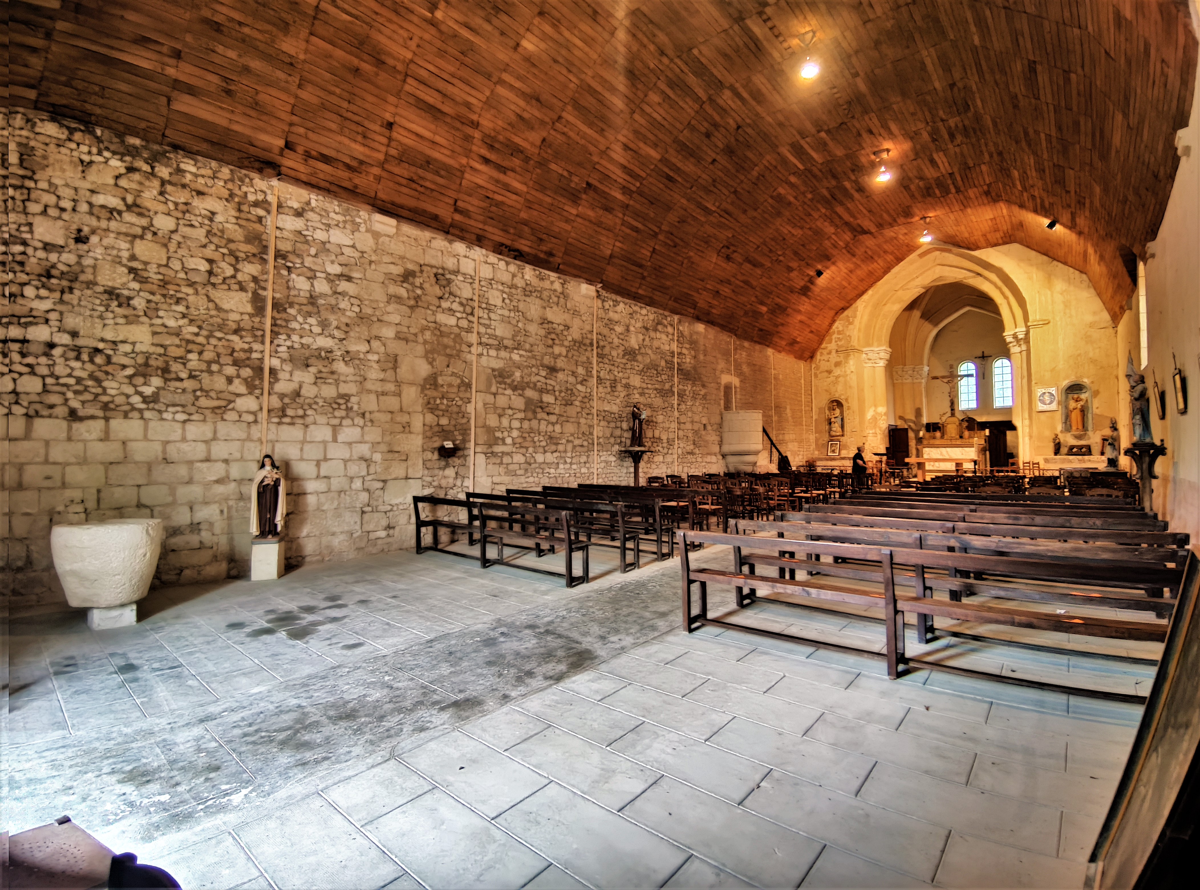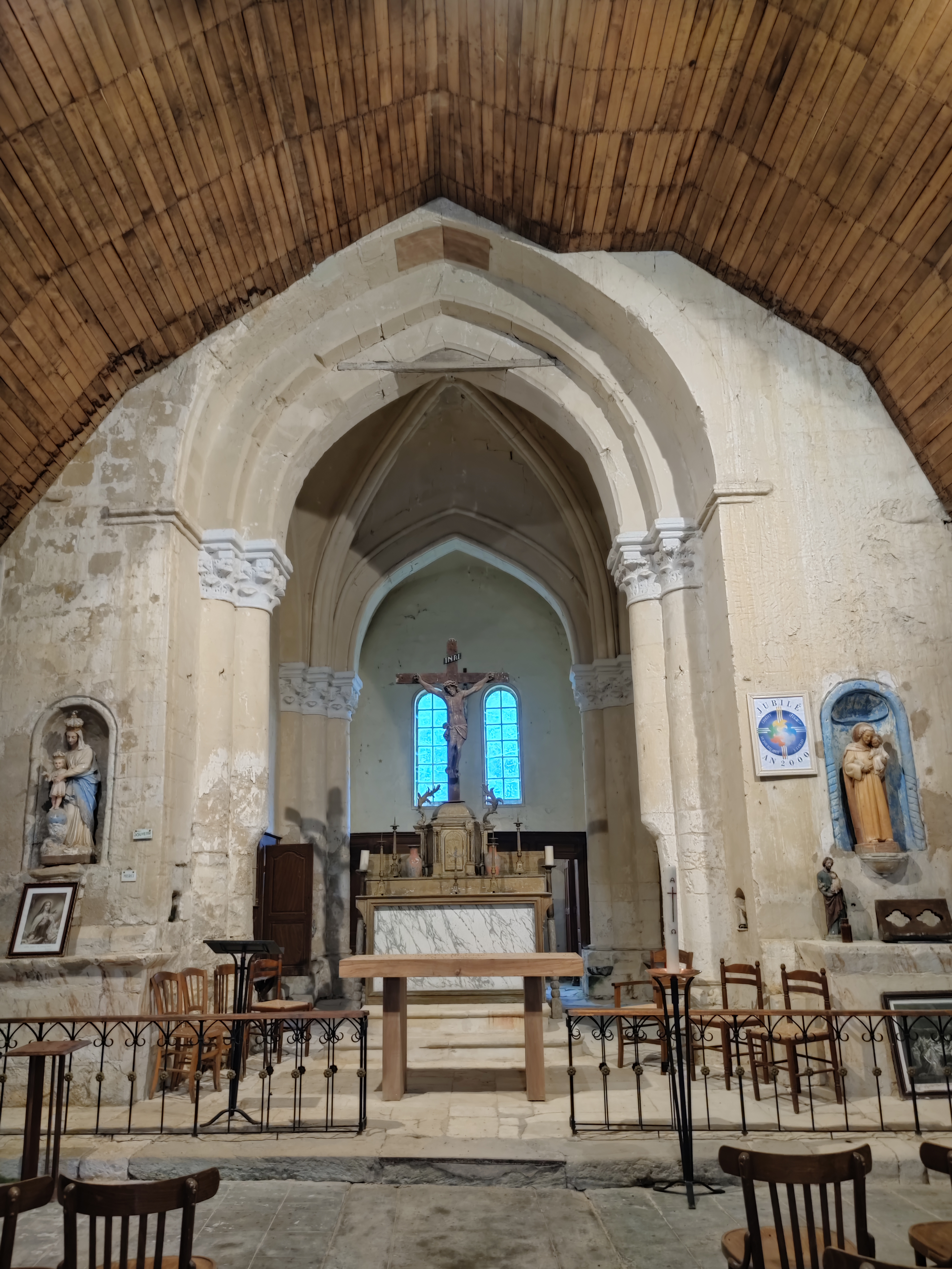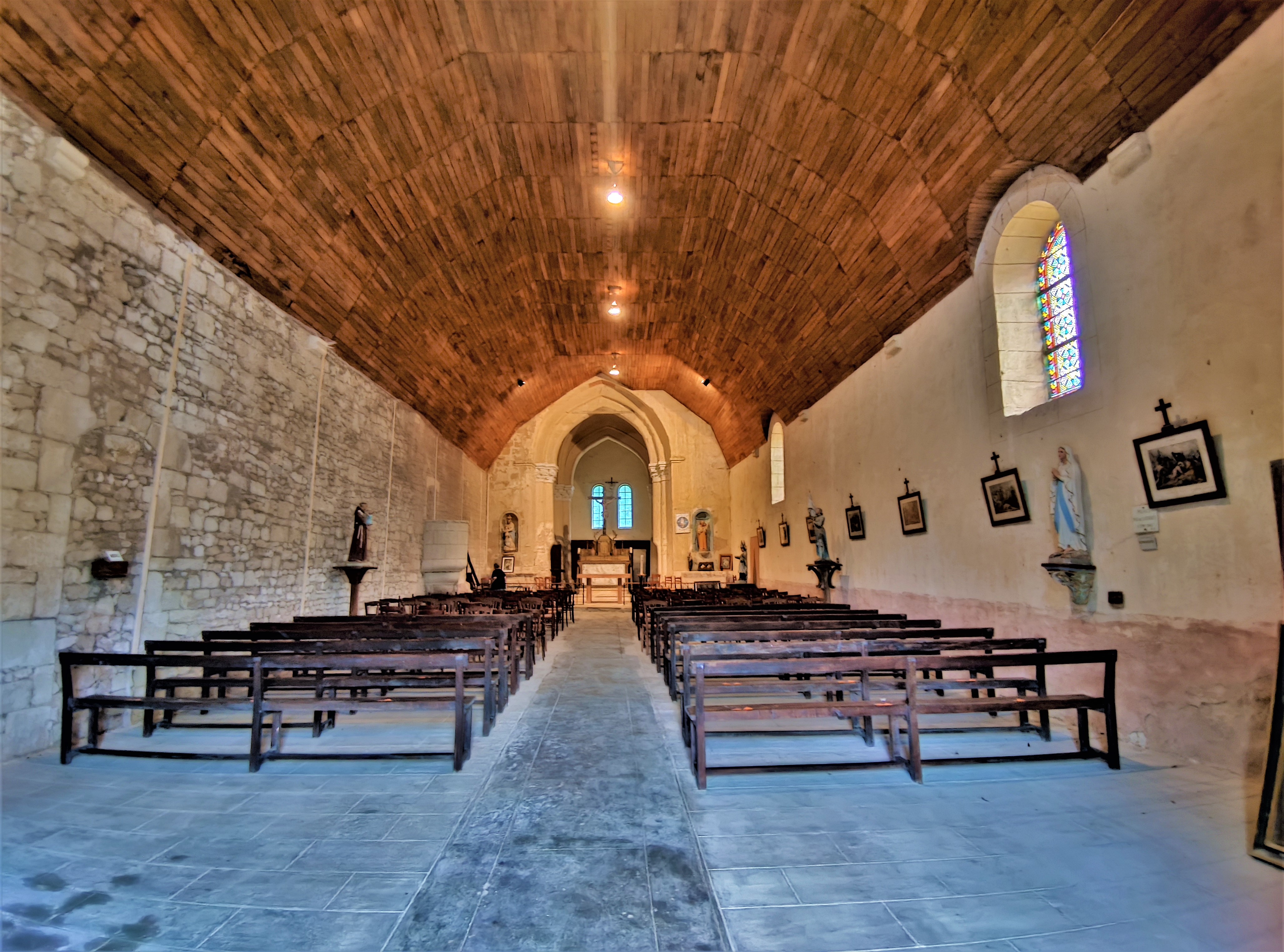 L'église, enserrée de bâtiments et de propriétés privées, est visitable en s'adressant à la mairie. Sinon, seule la façade est accessible, il est impossible de faire le tour et/ou d'appréhender l'allure générale de l'édifice. Le clocher carré qui semble daté de l'église primitive est inapprochable. La nef unique est plafonnée de lambris, séparée du chœur par un arc triomphal à courbure brisée, le chœur possède deux travées voûtées d'ogives. Une statuaire et un mobilier restent à découvrir pour le visiteur. Des travaux de mise en valeur des murs ont été commencés, bon courage aux travailleurs en espérant qu'ils arrivent à leur fins. L'élue responsable du patrimoine s'est montrée très disponible, je la remercie. La rue entière mériterait probablement une meilleure mise en valeur, la rendant plus attractive.