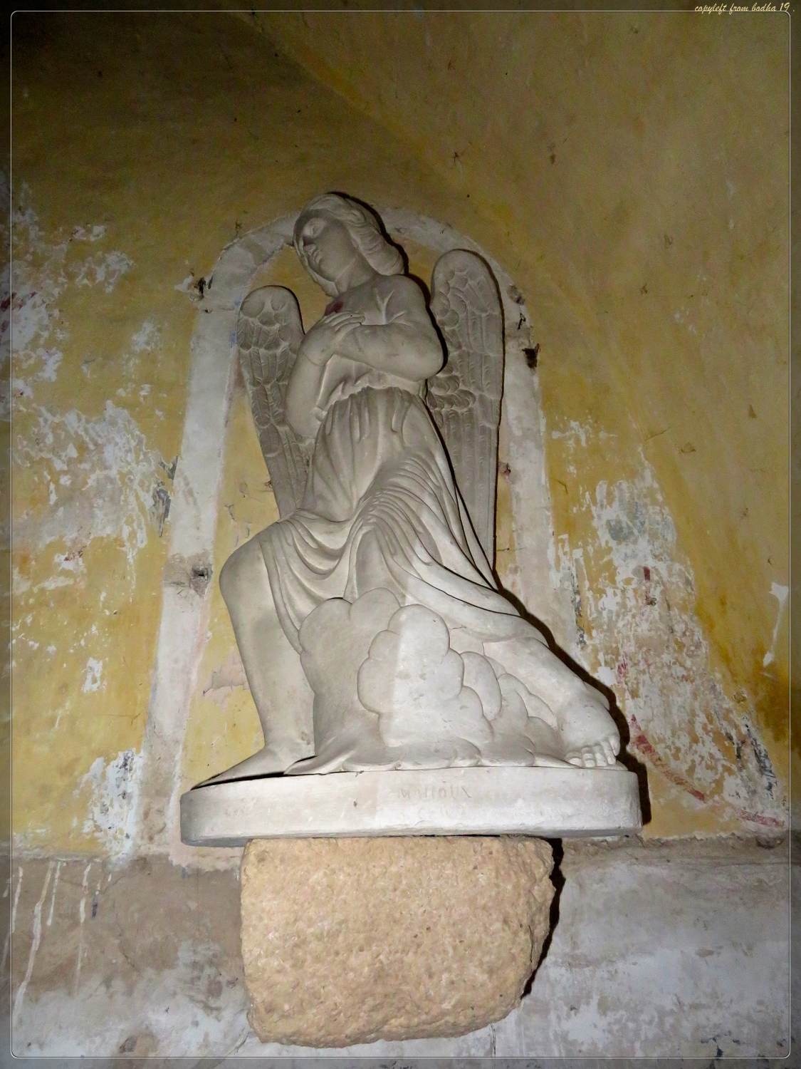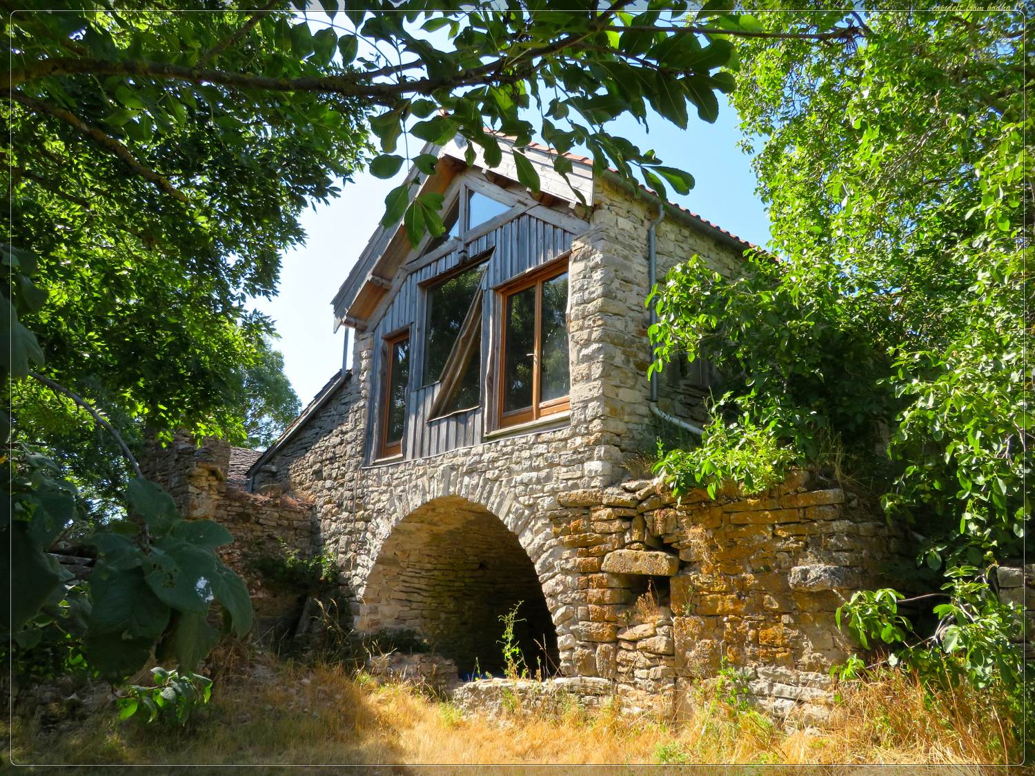 Un hameau qui était désert il y a quelques années est en train de se repeupler. Caché dans un repli de terrain, il est presque invisible depuis la route principale qui parcourt le nord du plateau d'est en ouest. Cette petite église, très basse, ce qui est inhabituel, laisse tout de même pointer son clocher, seul signal tout juste visible sur l'horizon.