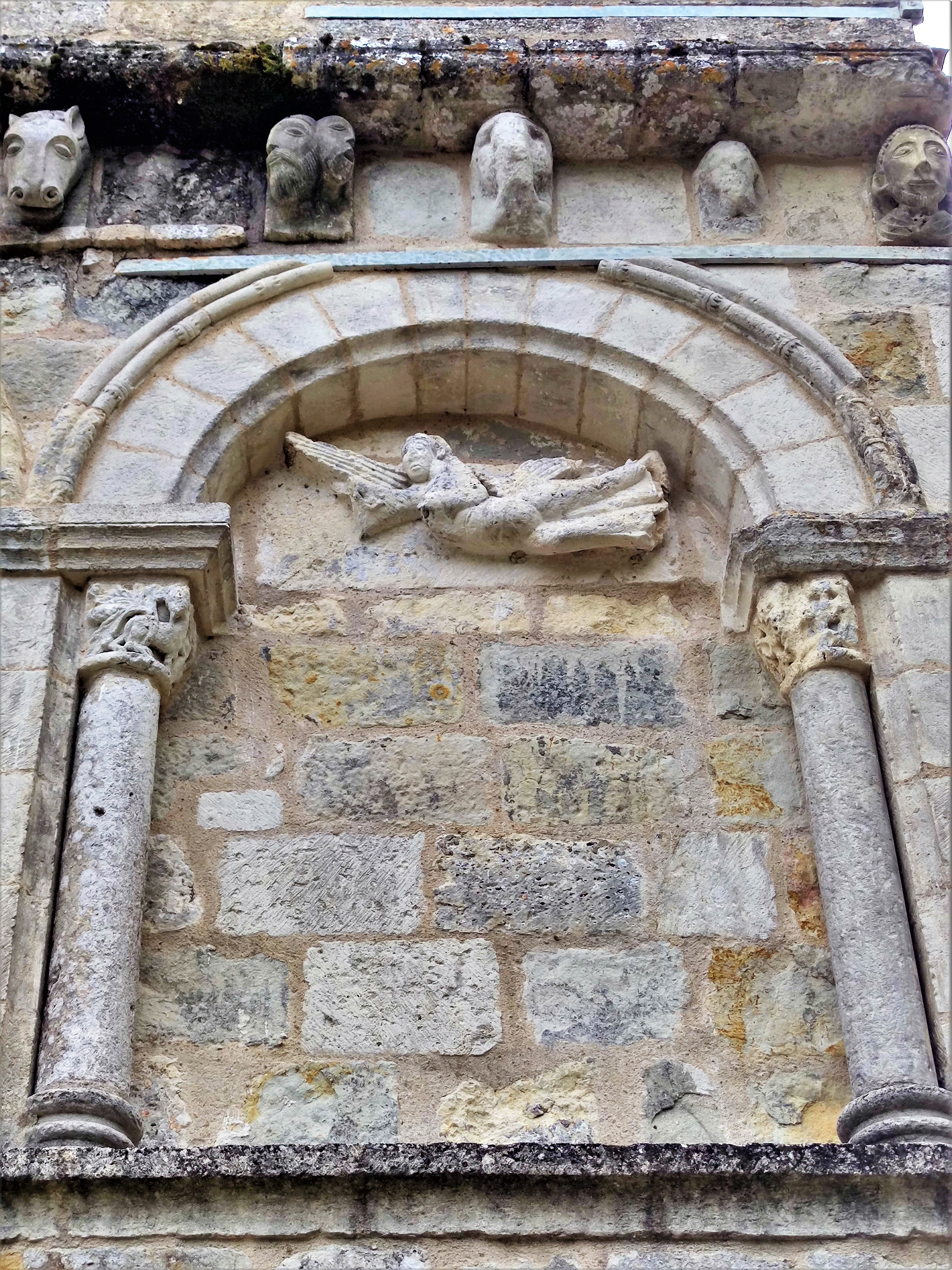 Une prieurale devenue église paroissiale, témoin de l'histoire du village, elle est ouverte et accueillante. Au 12ème, la création d'un prieuré et de son église sera à l'origine du développement de Saint-Michel-de-Rivière. Une fontaine miraculeuse, située à quelques dizaines de mètres, au Nord de l'église, témoigne de l'ancienneté de ce lieu de dévotion, qui fut lieu de culte païen avant que vienne la christianisation de la région. La façade de l'église est protégée par les Monuments Historiques depuis 1925. C'est la partie sauvegardée de l'édifice primitif. Elle conserve des arcatures, des décors sculptés et des modillons en bel état. La partie haute, clocher mur à une arcade et une cloche a été ajoutée au 17ème. Cette église a connu de douloureux moments, particulièrement pendant les guerres de religions. La nef et le chœur ont été reconstruits au 15ème, la voûte de cette époque n'a gardé que des traces des colonnes de soutien. Durant le 16ème et le 17ème quelques modifications ont été apportées. A l'intérieur, les murs en pierres apparentes, les vitraux historiés, la tribune et son échelle offrent un certain charme, la cuve baptismale est remarquable. Le faux plafond en plâtre, fausse voûte en anse de panier, renforce un peu l'éclairage de la nef et de ses seules ouvertures au Sud.