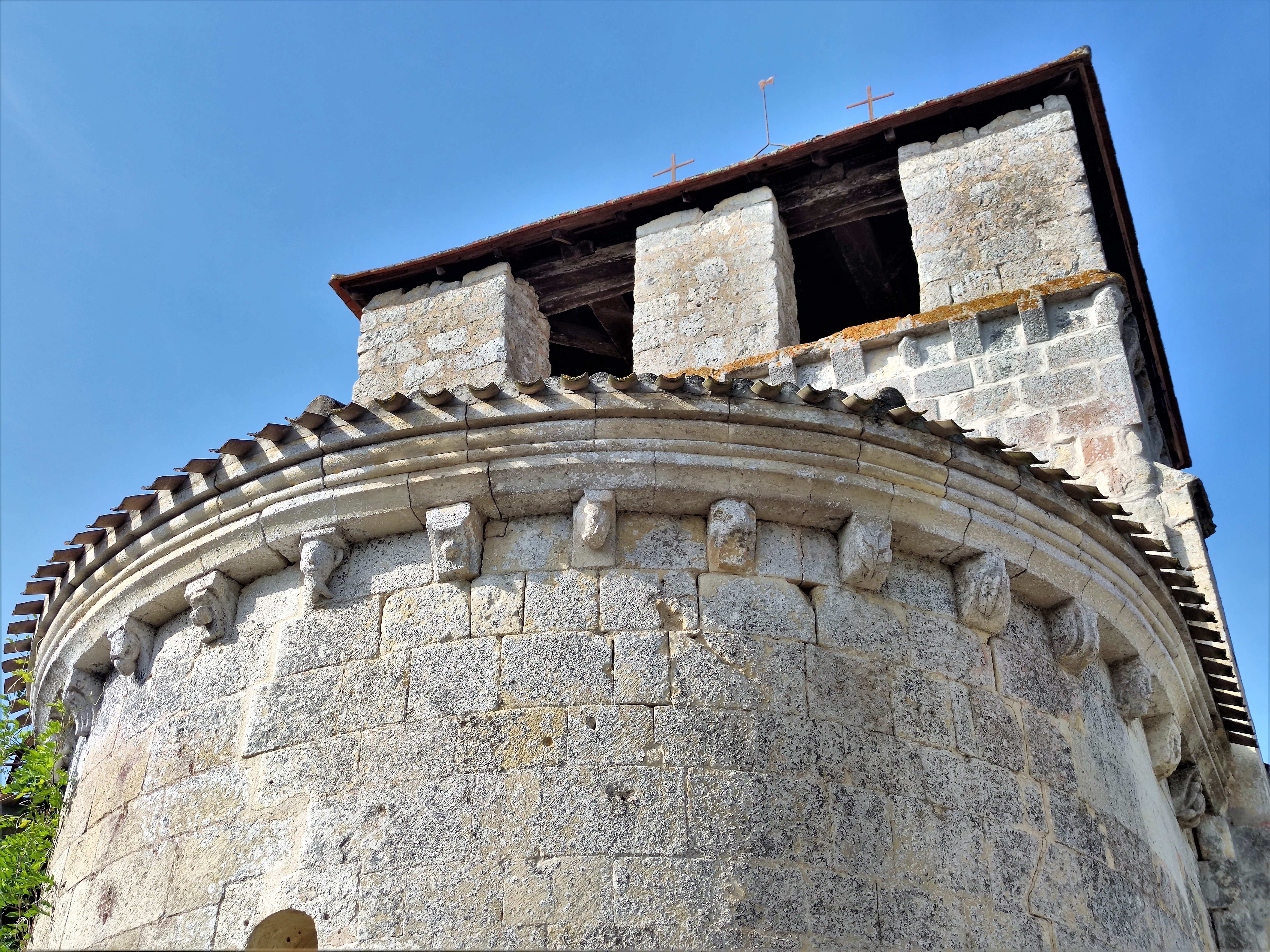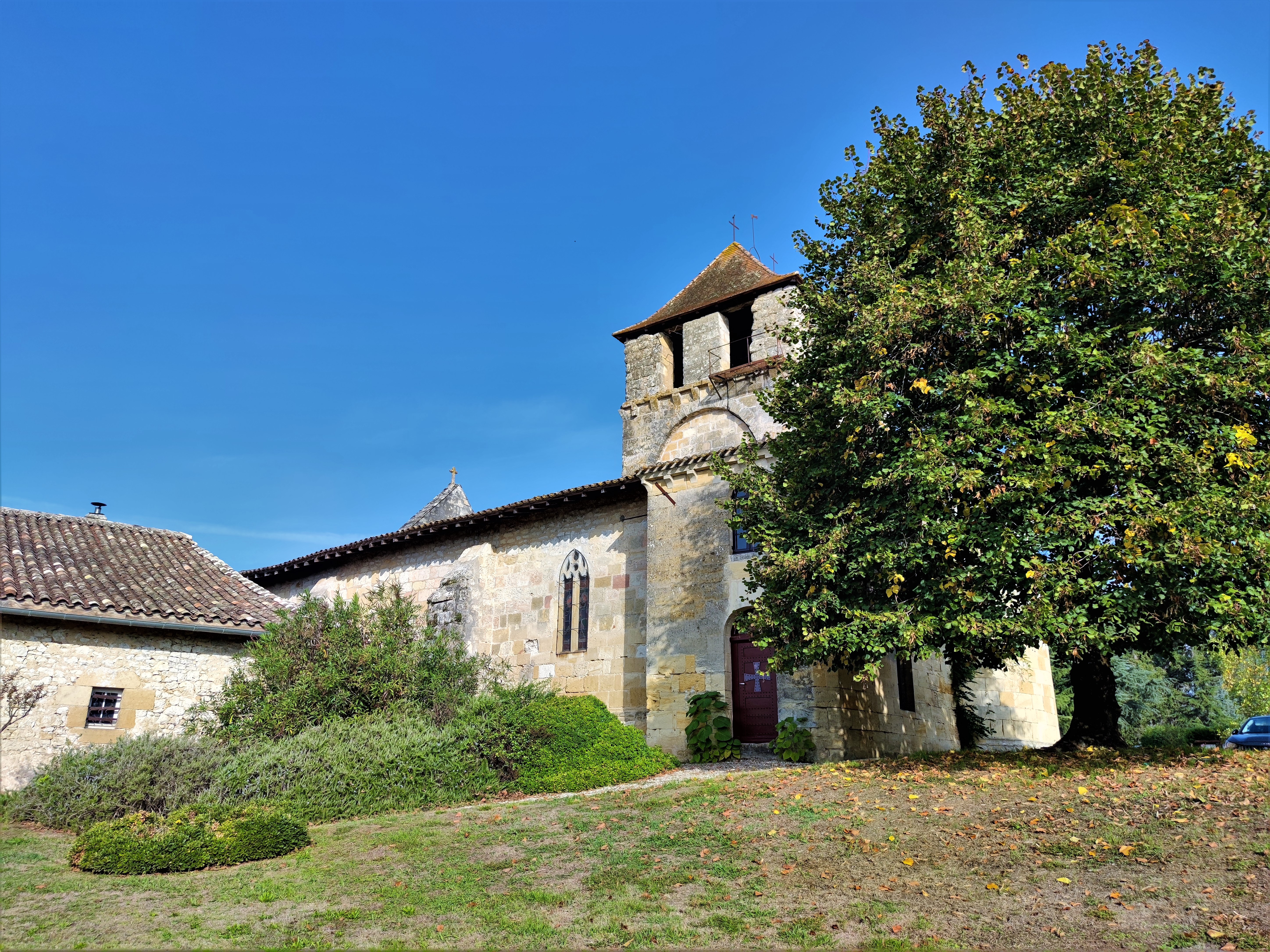 Pour la visiter, il faut s'adresser à la mairie pour emprunter les clés. Église romane du 12ème et 13ème siècles, classée en 1970 par les Monuments Historiques, son histoire fut liée à celle de Michel Eyquem de Montaigne dont le château est tout proche. La mairie étant fermée lors de mon passage, je me suis contenté des extérieurs de l'église, visite intéressante mais frustrante. Par contre, j'ai pu visiter le château et la Tour de Montaigne.