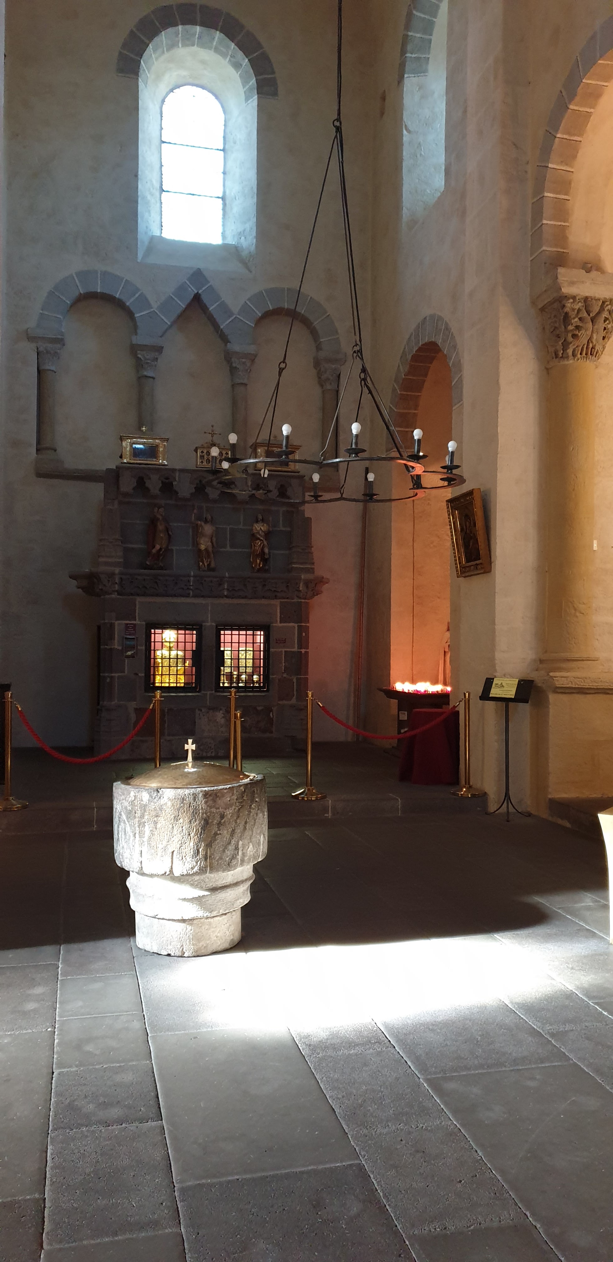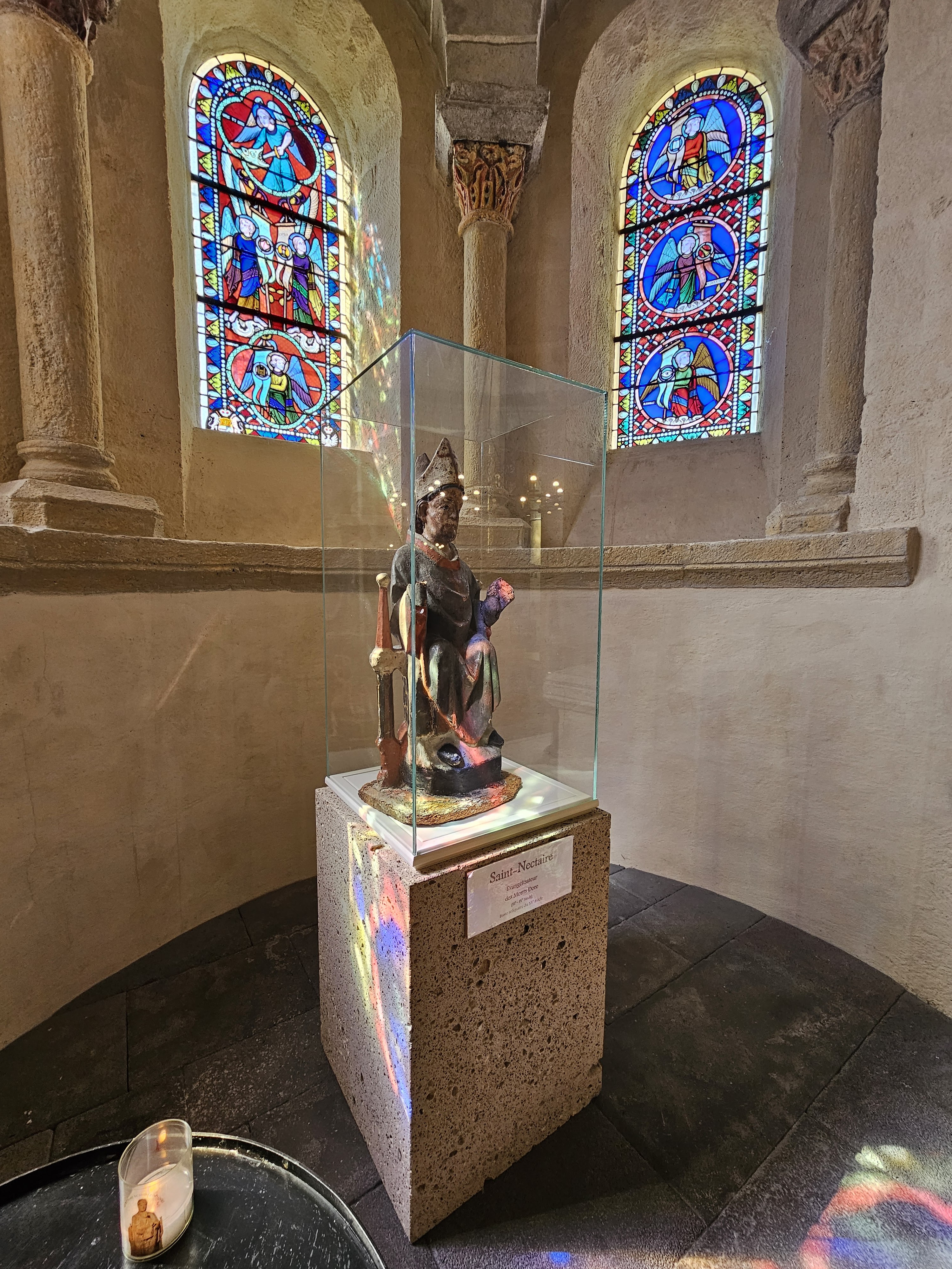 Nous avons fait une visite guidée passionnante avec Catherine, la responsable de l'église dont on trouve facilement le numéro sur Google en cherchant visite guidée église de saint Nectaire. On a énormément appris sur l'eglise, sa construction, ses chapiteaux, ainsi que sur la ville et les autres églises romanes majeures d'Auvergne. Catherine a captivé son public, y compris les jeunes enfants, pendant 1h30 !
