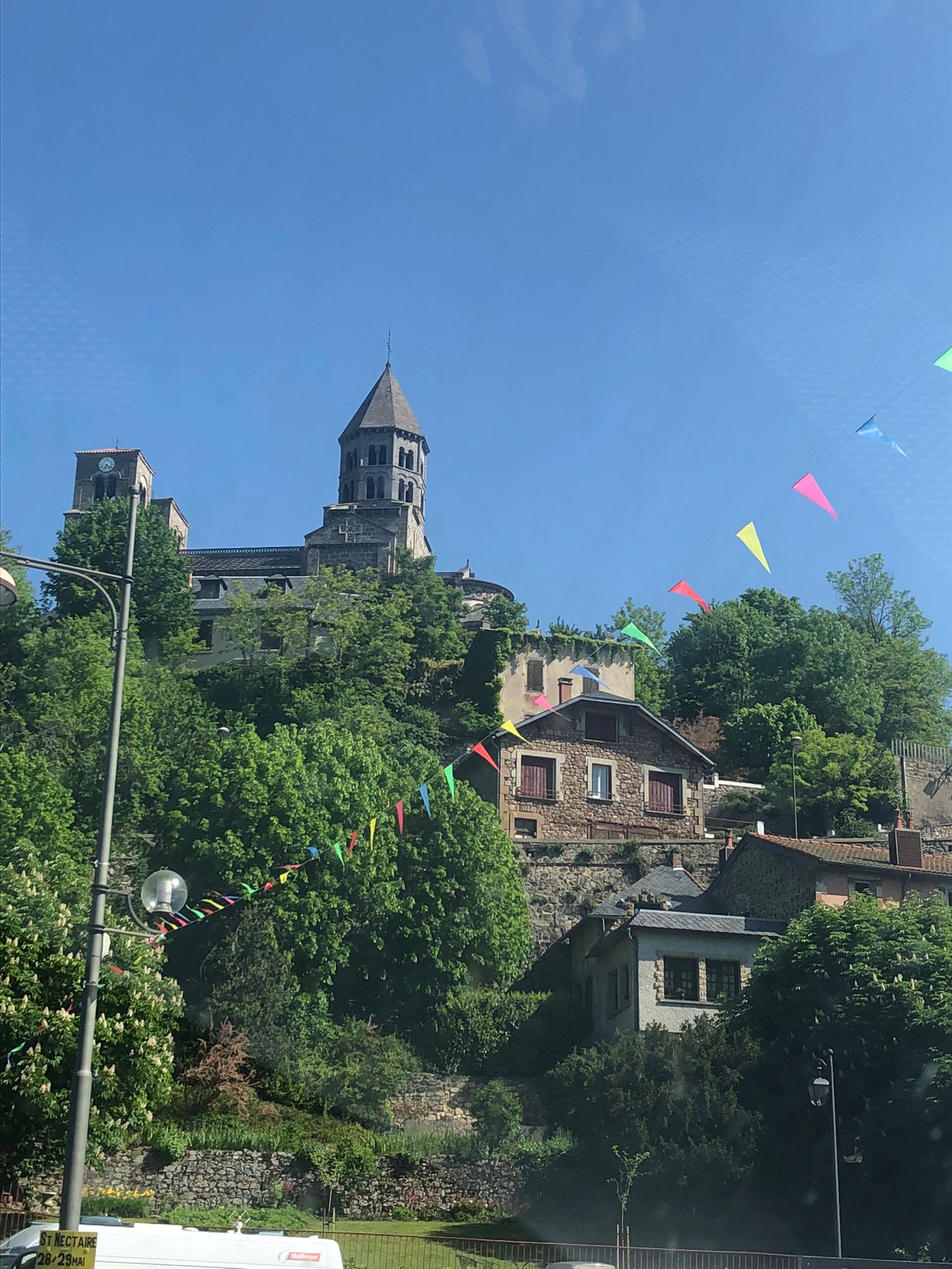 Belle église, perchée tout en haut de saint-nectaire avec son marché autour
