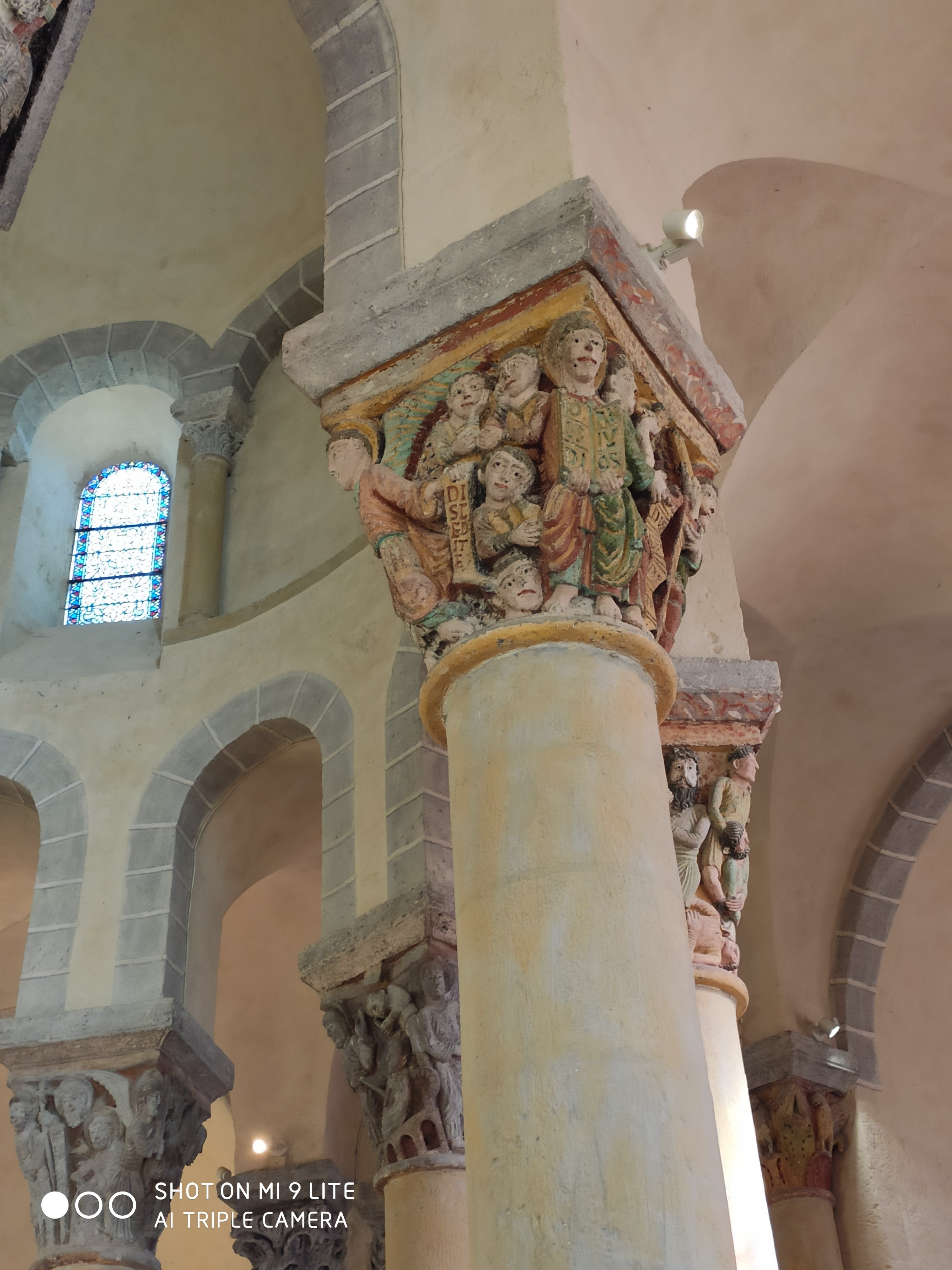 Magnifique église romane avec de beaux chapiteaux.