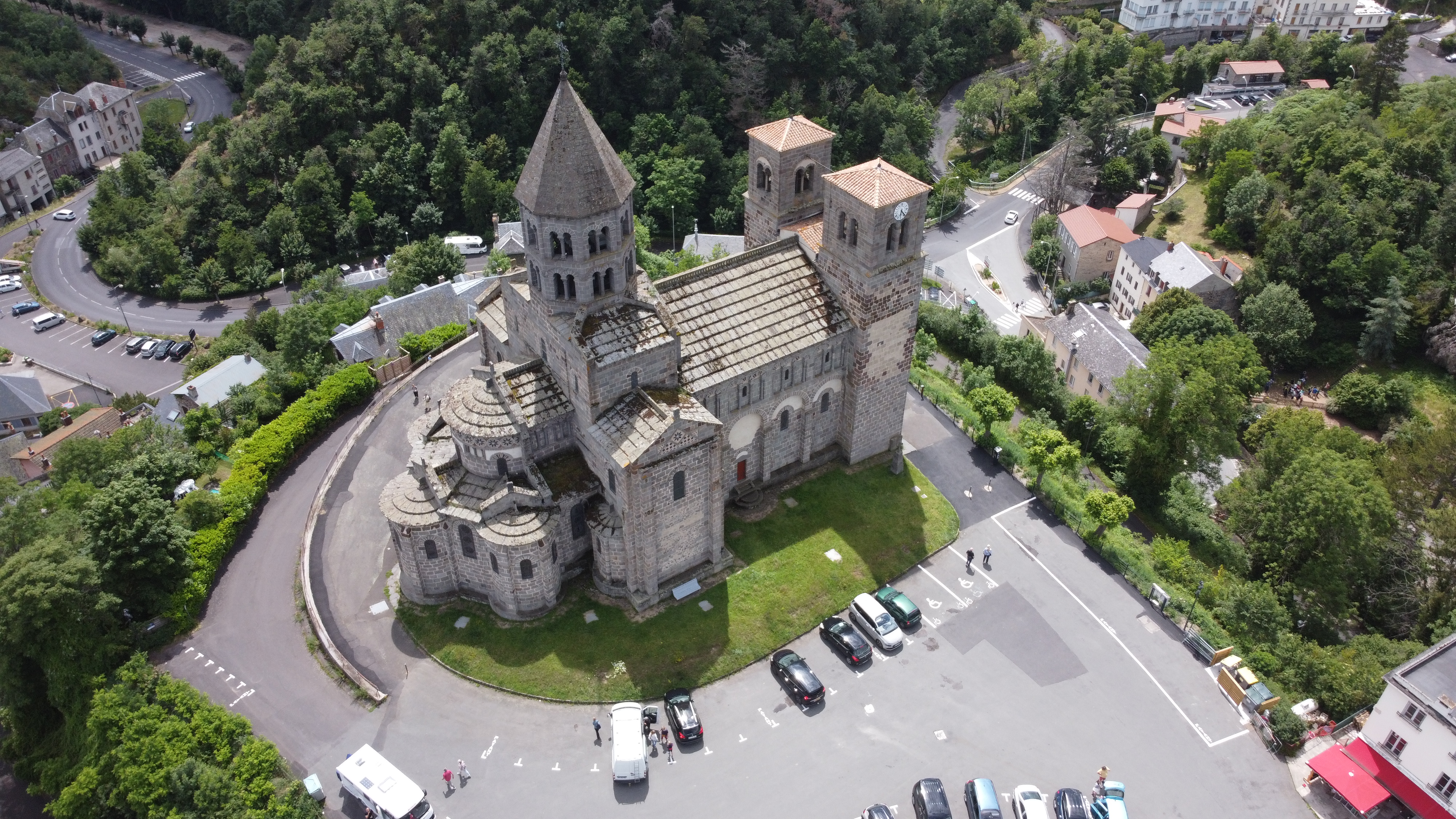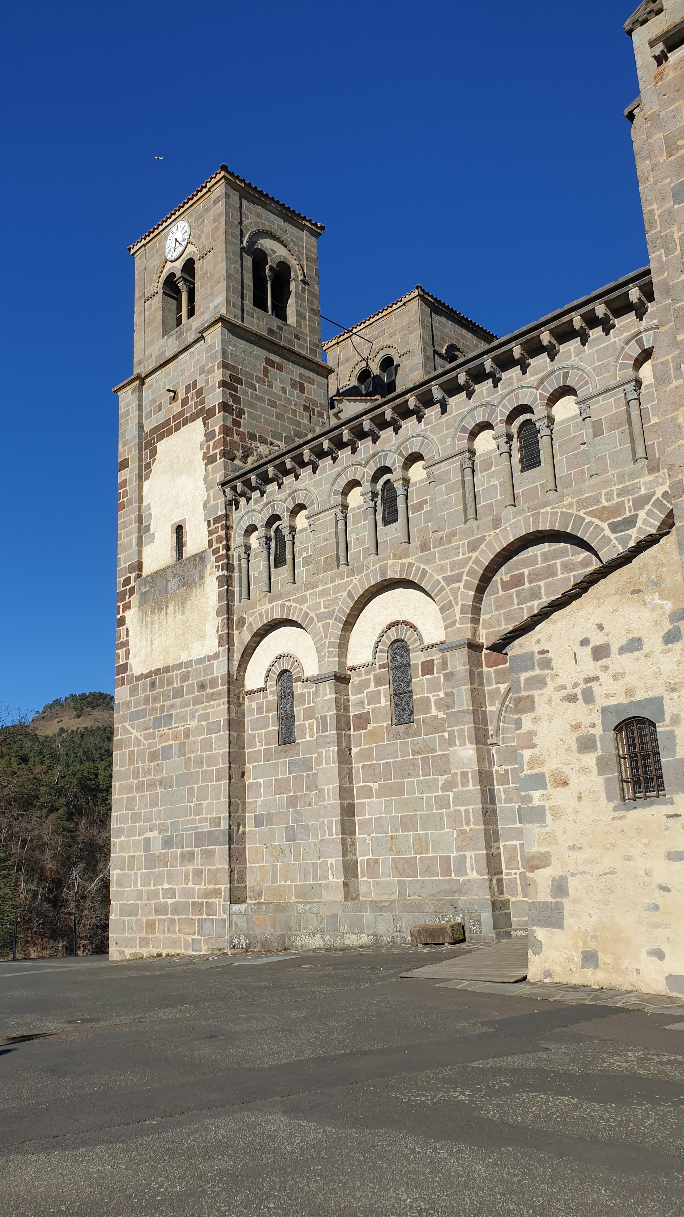 Très jolie basilique romane. Fait partie d'une série de 5 basiliques romanes du Puy de Dôme dont celle d'Orcival .