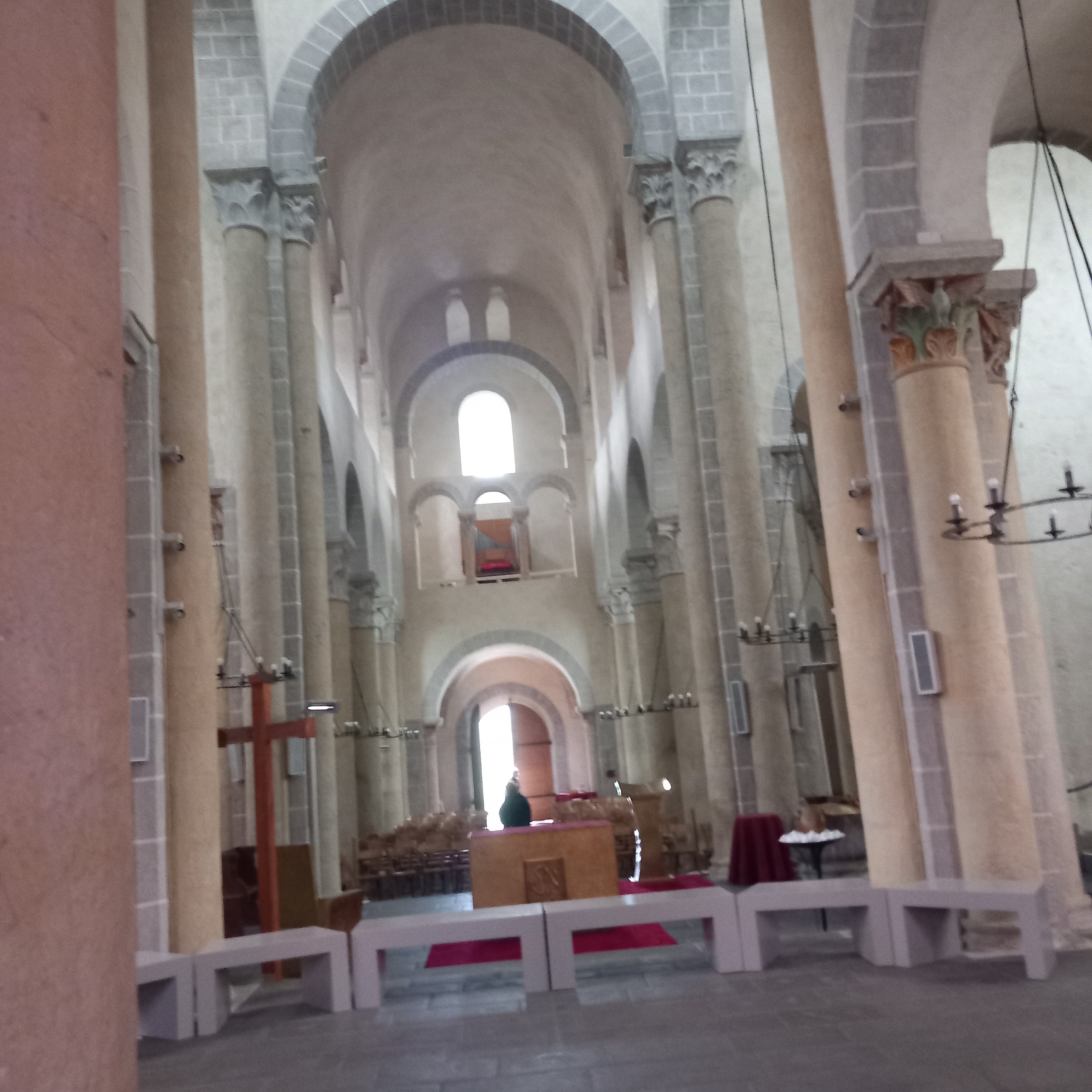 Magnifique église romane.l'intérieur récemment restauré contraste de clarté avec son extérieur austère.choeur superbe.