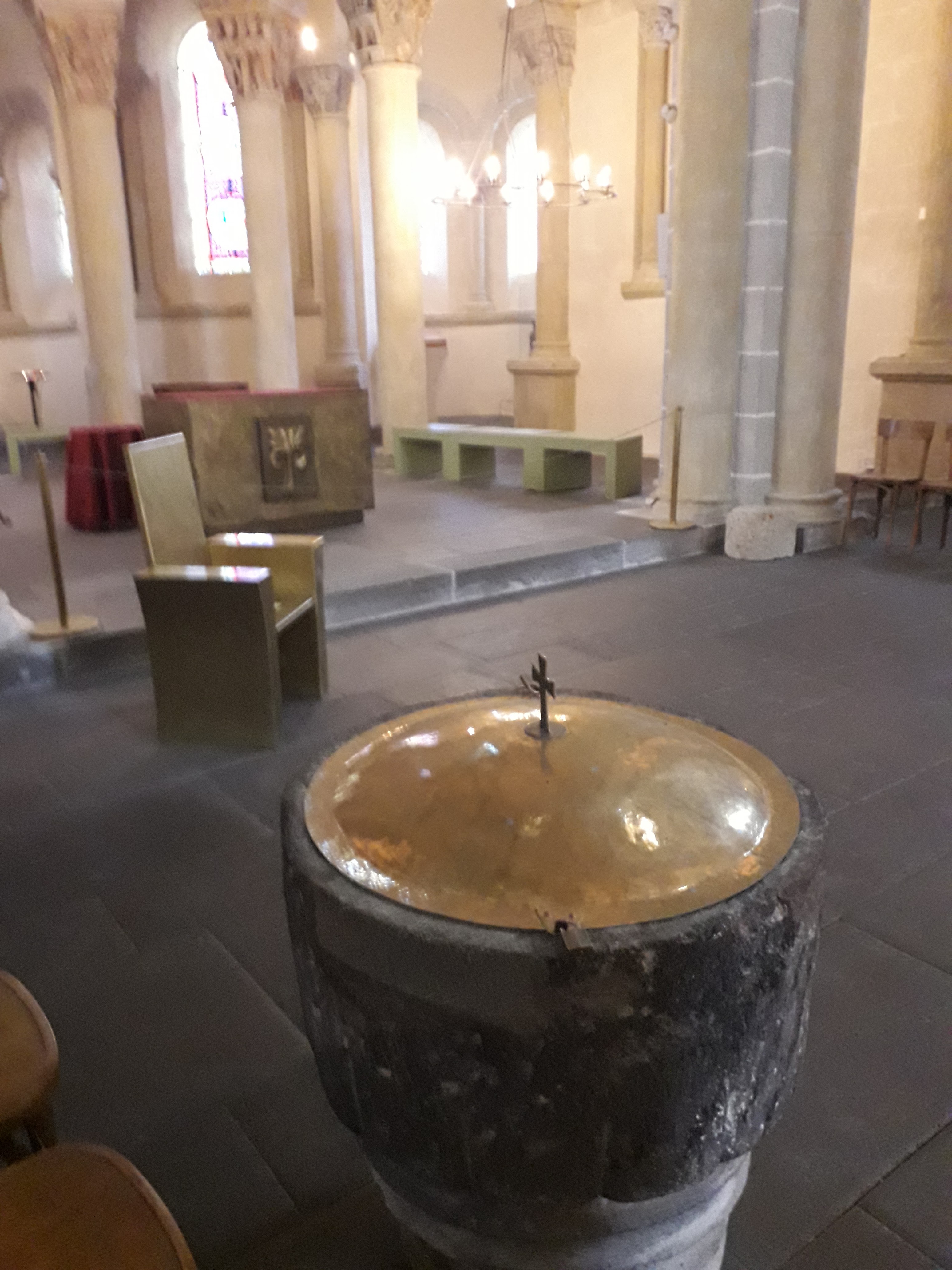 C'est une belle église romane avec de magnifiques vitraux. Des spectacles y sont organisés. Ce soir un groupe de soixante jeunes Européens présentent un spectacle mêlant chant,dance et théâtre j'ai assisté à une partie de la répétition c est très prometteur
