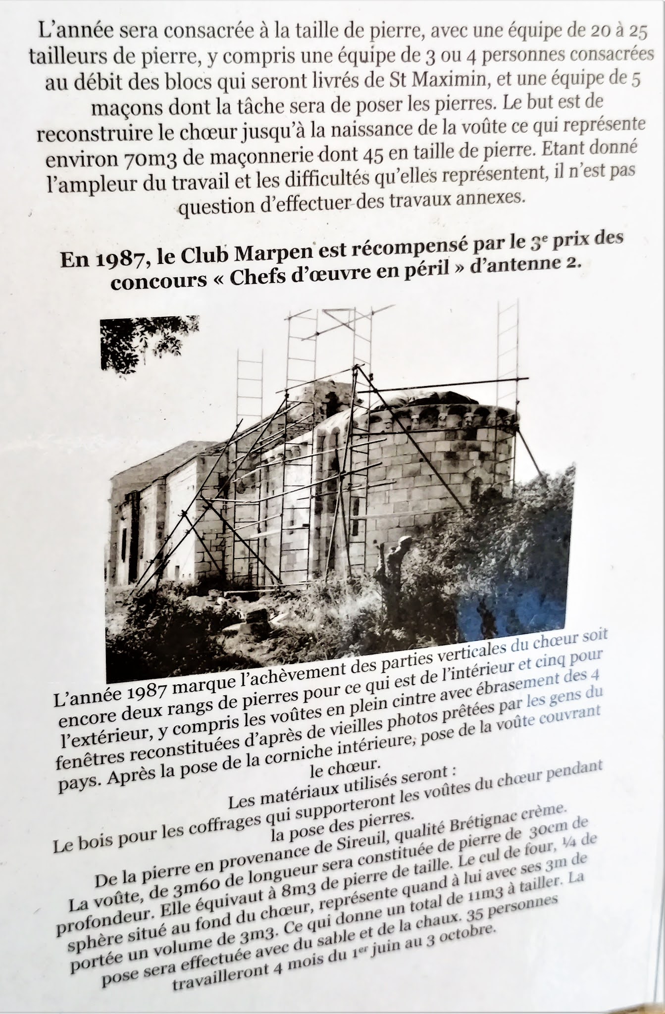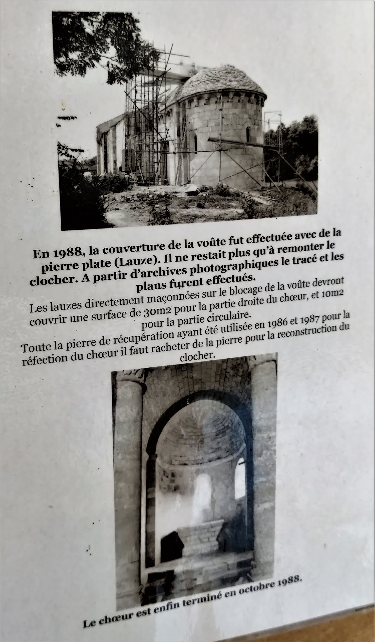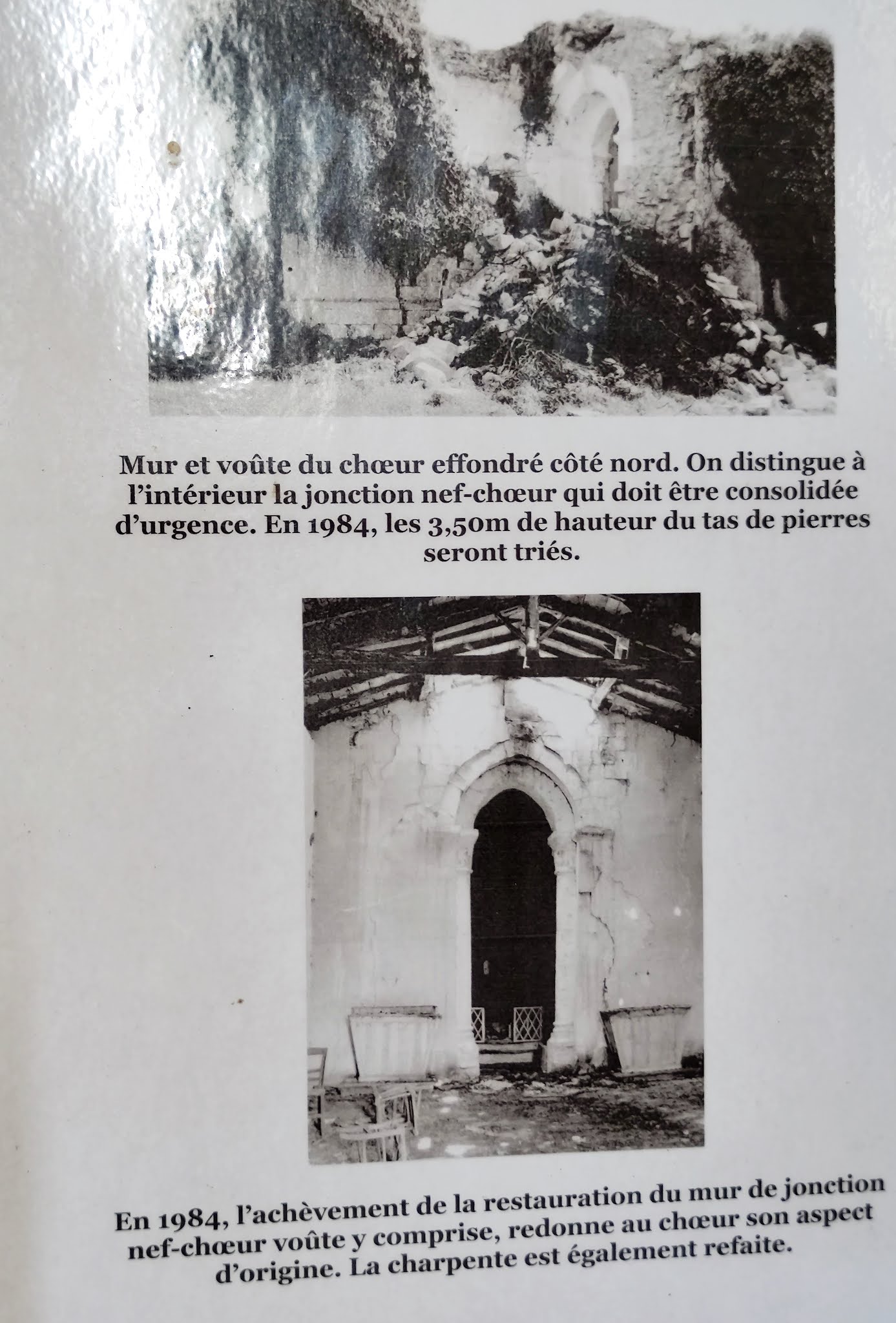 Un devenir exceptionnel pour une église abandonnée, Une visite à faire pour le charme du lieu et son histoire. Une église aux origines millénaires (début de l'édification en 1031), Inscrite par les M.H. en janvier 1931, la dernière messe y fut célébrée en 1946, année durant laquelle elle fut désaffectée et abandonnée. N'ayant jamais connu de restauration, envahie par la végétation, soumise aux intempéries, sa destruction semble irrémédiable, le clocher s'effondre en 1972, réduisant le chœur en un tas de pierres. Il était impossible, à l'époque, d'imaginer, pour cette église, un avenir aussi radieux que celui qui fut le sien. Dix années passèrent, confortant les ruines. En 1982, la volonté du Maire, Monsieur Guy Boyer, sa capacité à mobiliser les volontés et trouver les partenaires va permettre une renaissance de l'édifice. L'association Club Marpen de Tusson organisa des Chantiers-Jeunes pendant les 12 années nécessaires à la reconstruction de l'église. Une signalétique sur place décrit cette épopée. Un devenir exceptionnel pour une église abandonnée, grâce au courage et à la détermination de tant d'acteurs, qu'ils soient bénévoles ou non. Une visite à faire pour le charme du lieu et son histoire.