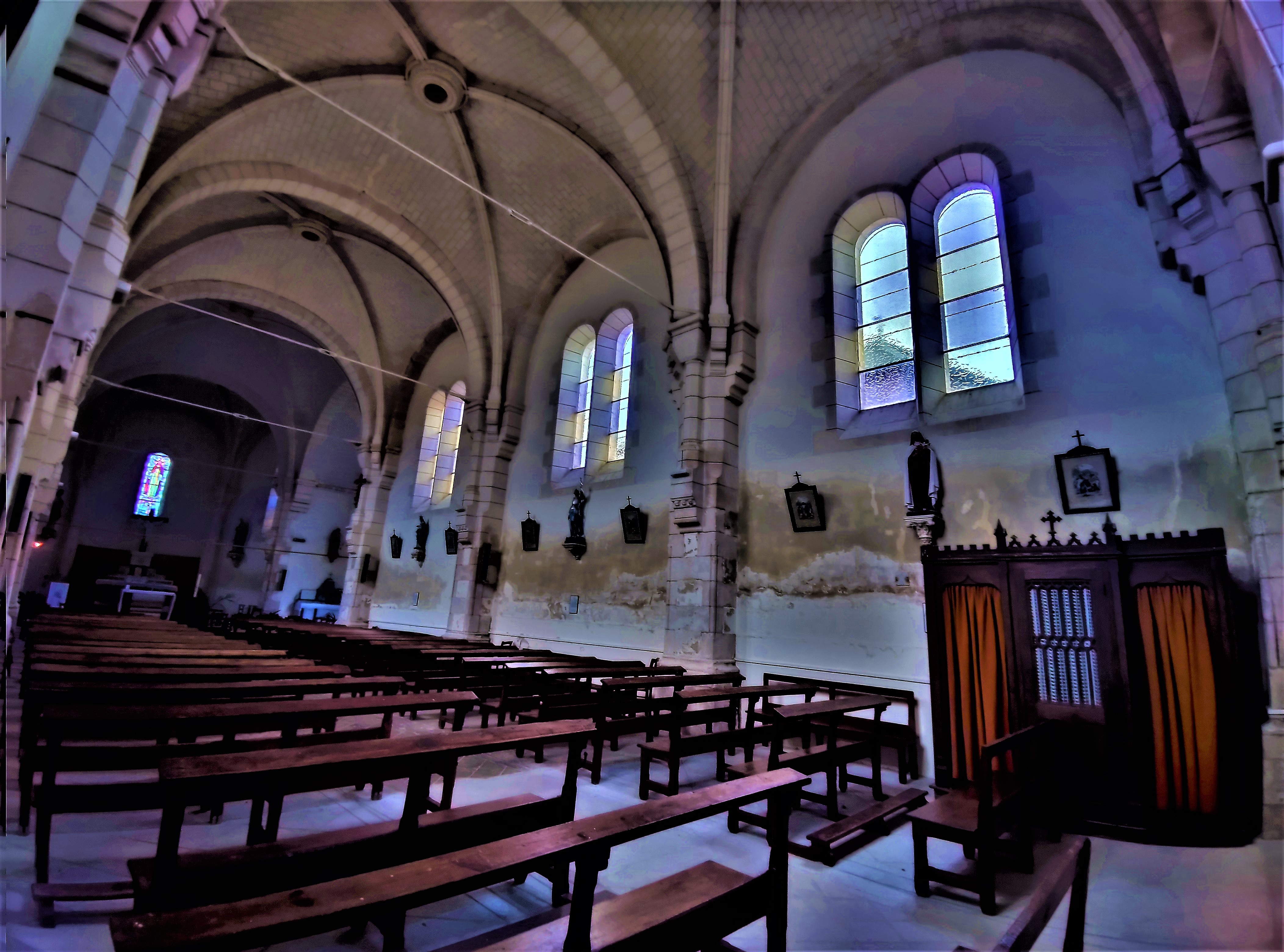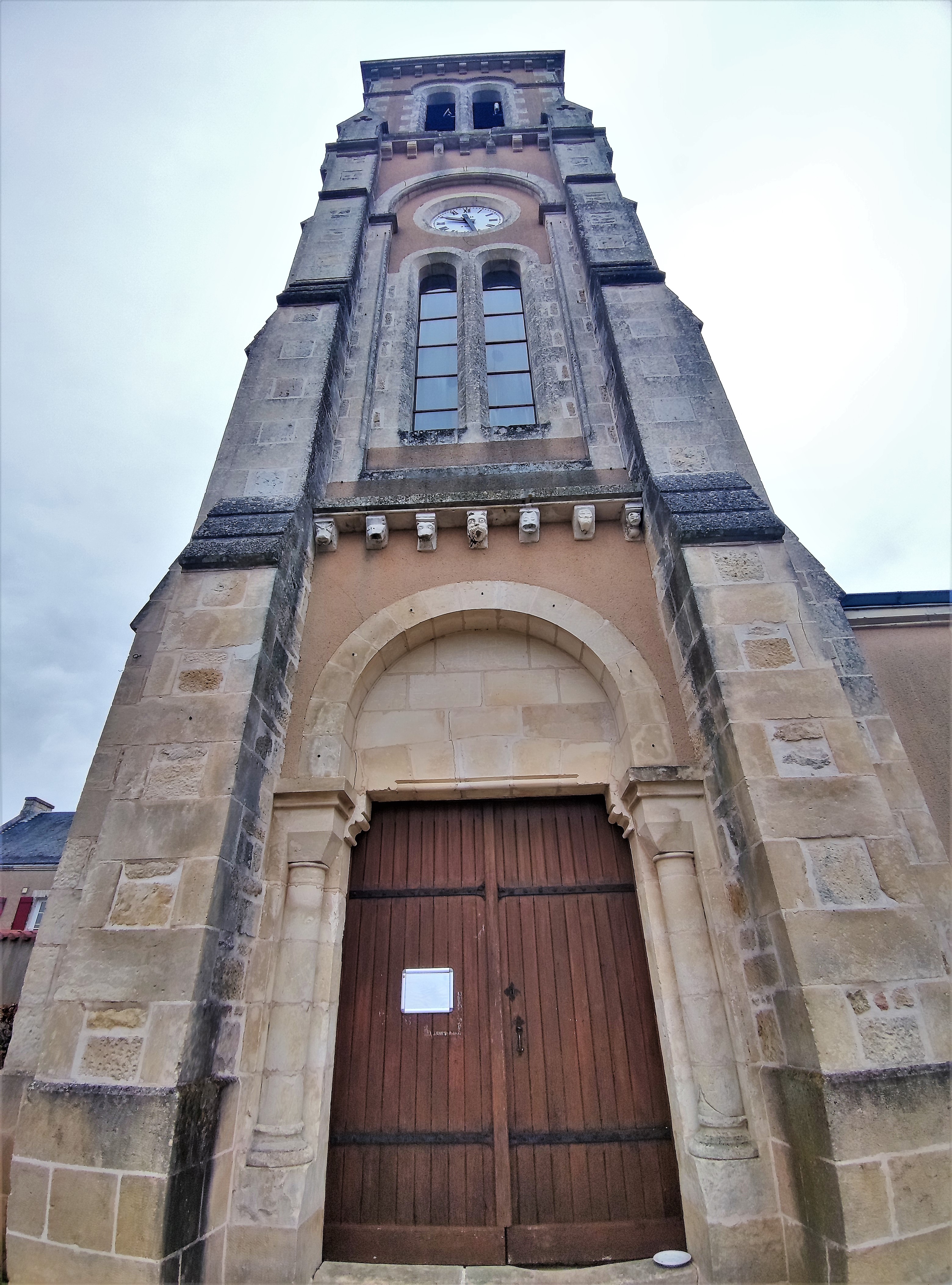 Une église reconstruite à la toute fin du 19ème, l'ancien édifice était trop petit et menaçait ruines. Vers l'an 1000, il existait déjà une église, que s'était appropriée le seigneur de Gençay, au prétexte que les seigneurs et les rois dans la société féodale étaient les élus ou les représentants de Dieu. Pour lutter contre cet état de fait, le pape Grégoire VII (1073-1085) lança la réforme qui porte son nom et dura 3 siècles. De ces origines très anciennes, restent 7 modillons, heureux décors sur la façade contemporaine. Pour entrer, il faut voir avec la mairie toute proche, qui fait accompagner les visiteurs. Voûtes en croisées d'ogives pour la nef et le chœur demi-sphérique, en berceaux pour les croisillons du transept, l'ensemble est classique et assez élégant. Les vitraux du chœur et quelques mobiliers sont intéressants. L'histoire de cette église témoigne d'une présence chrétienne plus que millénaire, et de l'attachement des paroissiens et citoyens à leur patrimoine religieux.