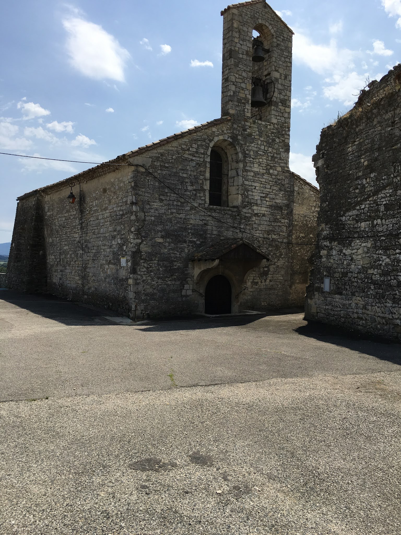 Charmante église en haut du village provençal avec une vue superbe sur la plaine des Andrans; Eglise par ailleurs étonnante avec ses nefs en //.