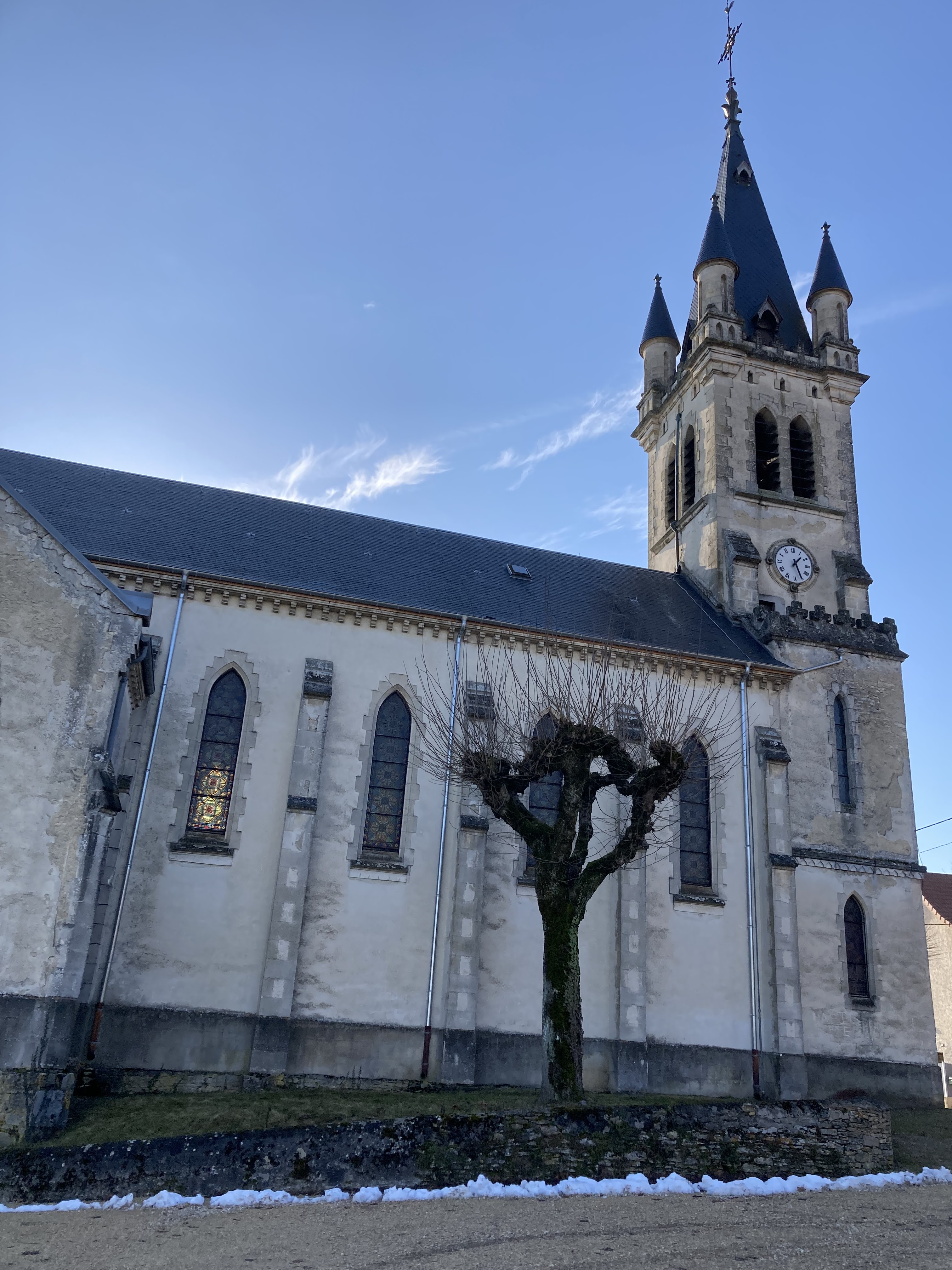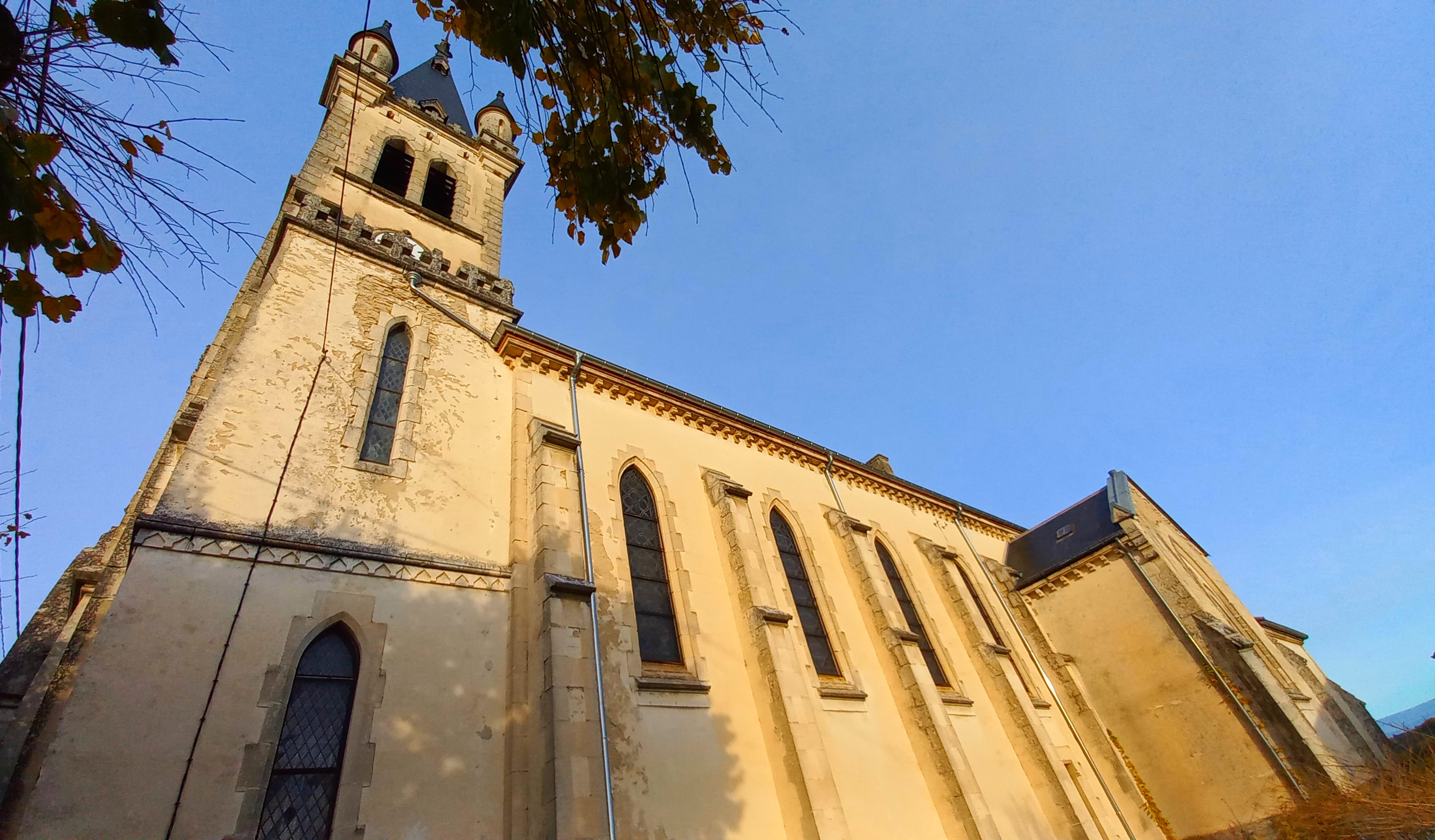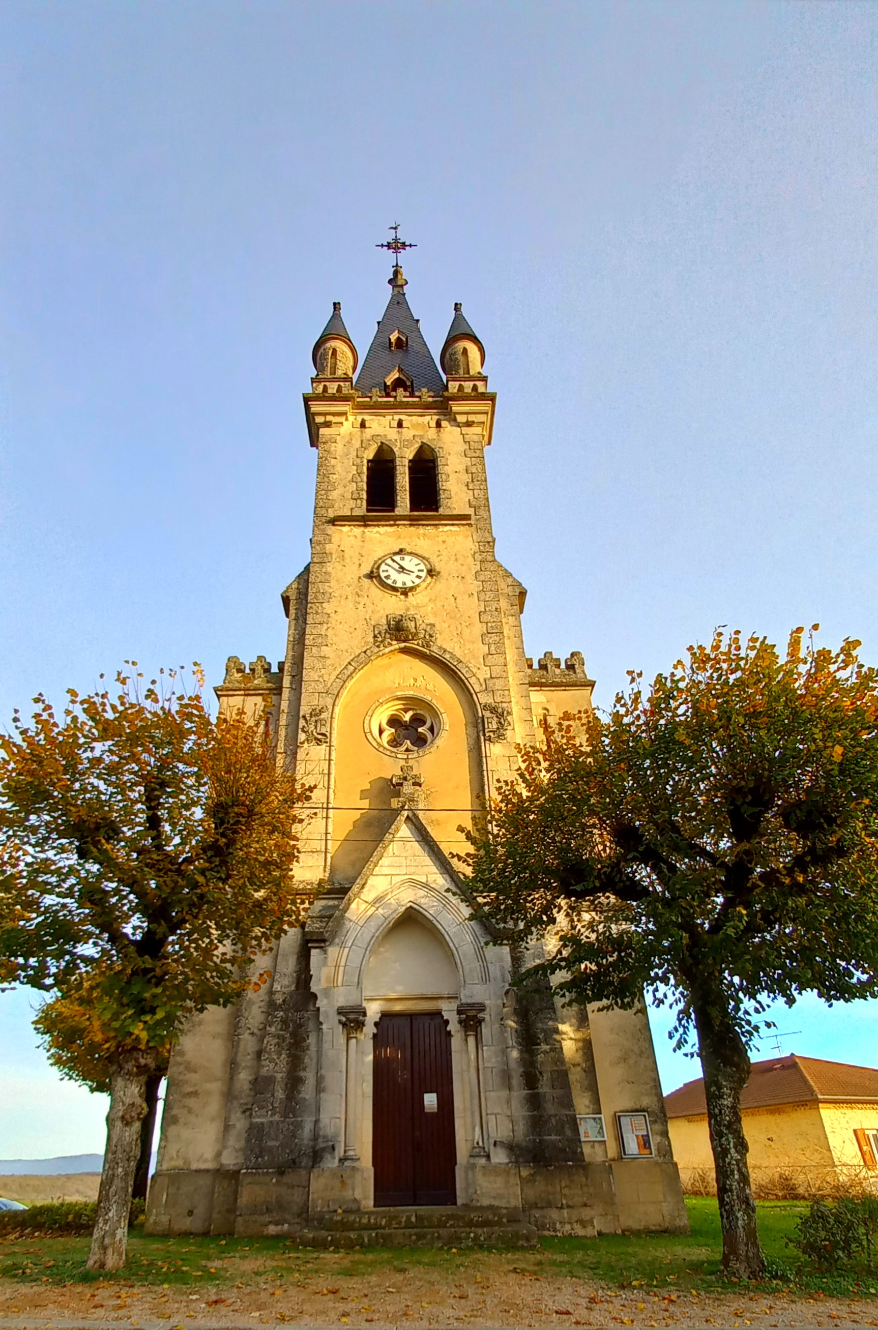 Ancienne Église des années 1800 L'Église catholique de St Jean-Baptiste (Aurait besoin de travaux à nouveau au niveau de la façade entre autres ) Se trouve en bord de route Pas toujours ouvert Un petit parking sur le côté gauche avec vue sur les montagnes qui sont au loin Village de campagne paisible