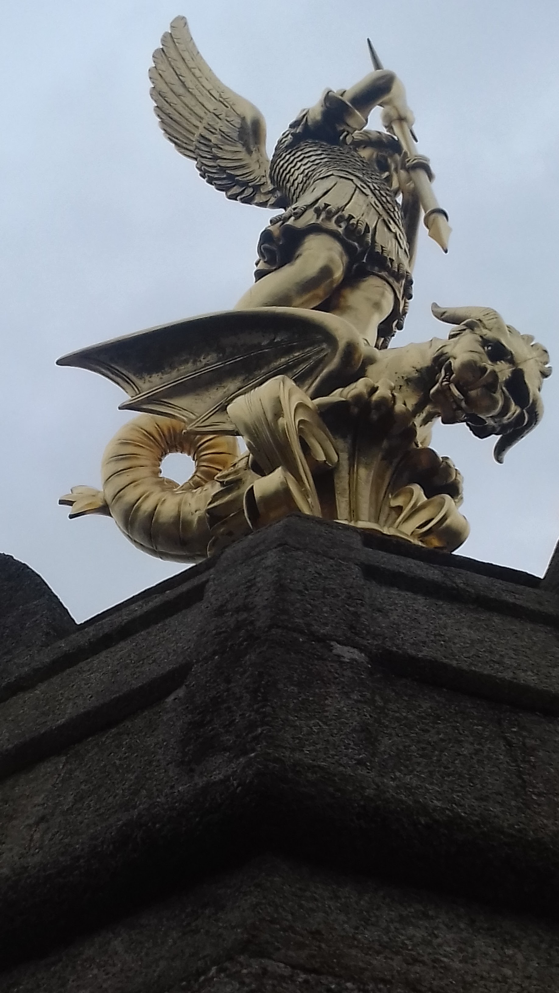 Une belle église avec St Michel terrassant le dragon doré à la feuille d'or magnifique !!