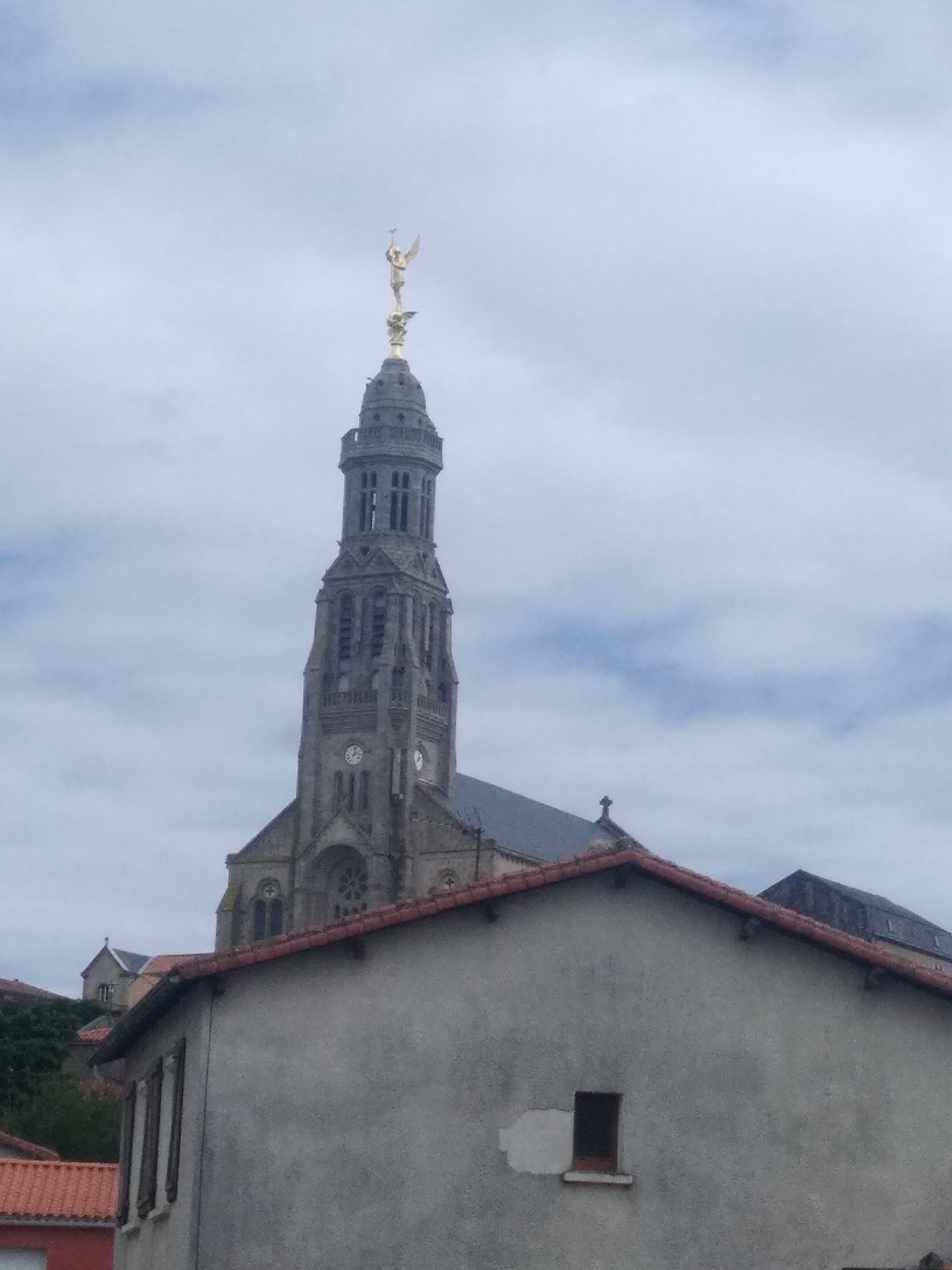 Très belle église construite comme à Chartres m'ont Saint Michel le puy en velay sur un ancien site druidique Saint Michel qui coiffé la longue flèche est magnifique