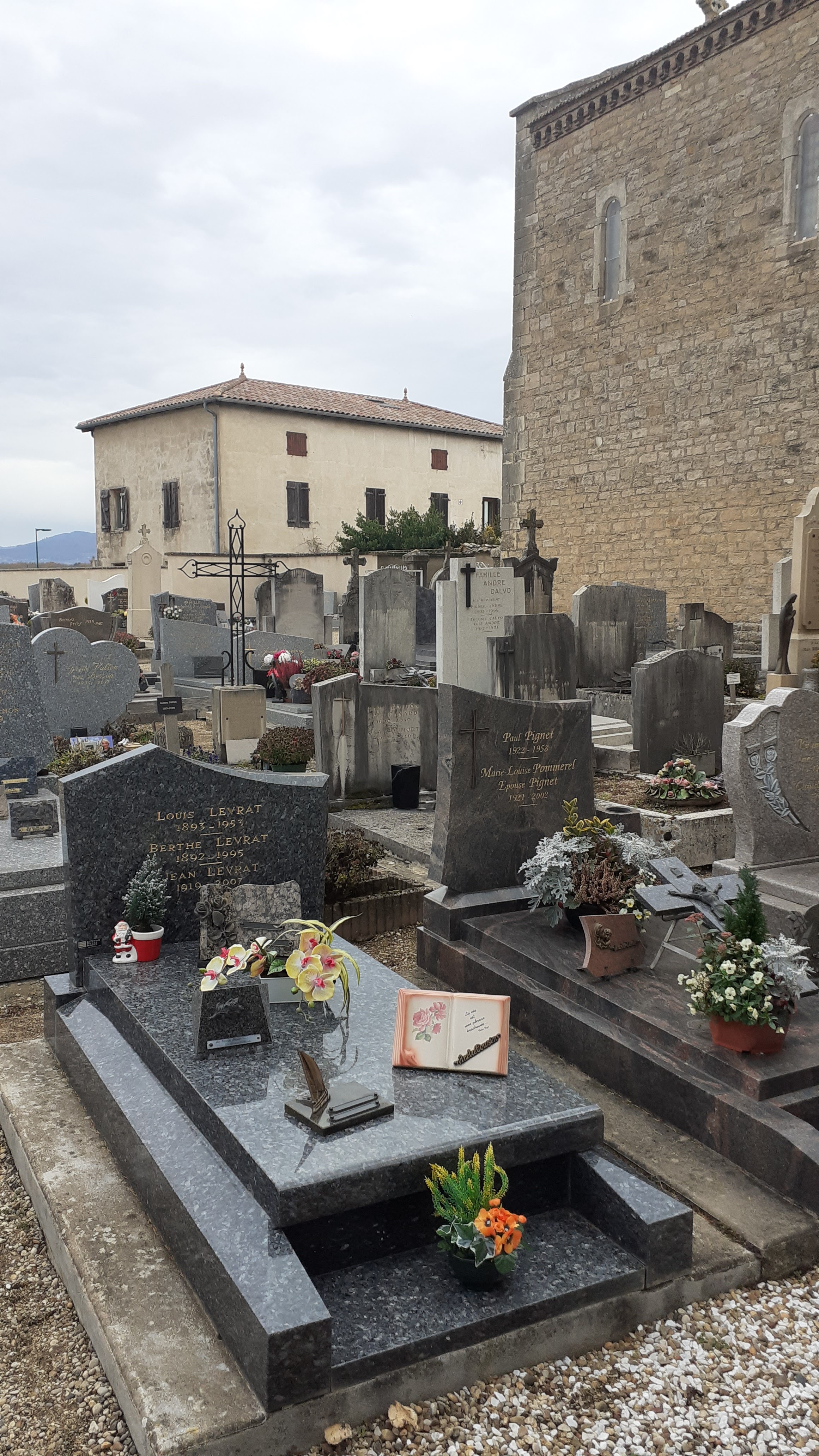 La vieille église est très jolie avec son cimetière à côté.