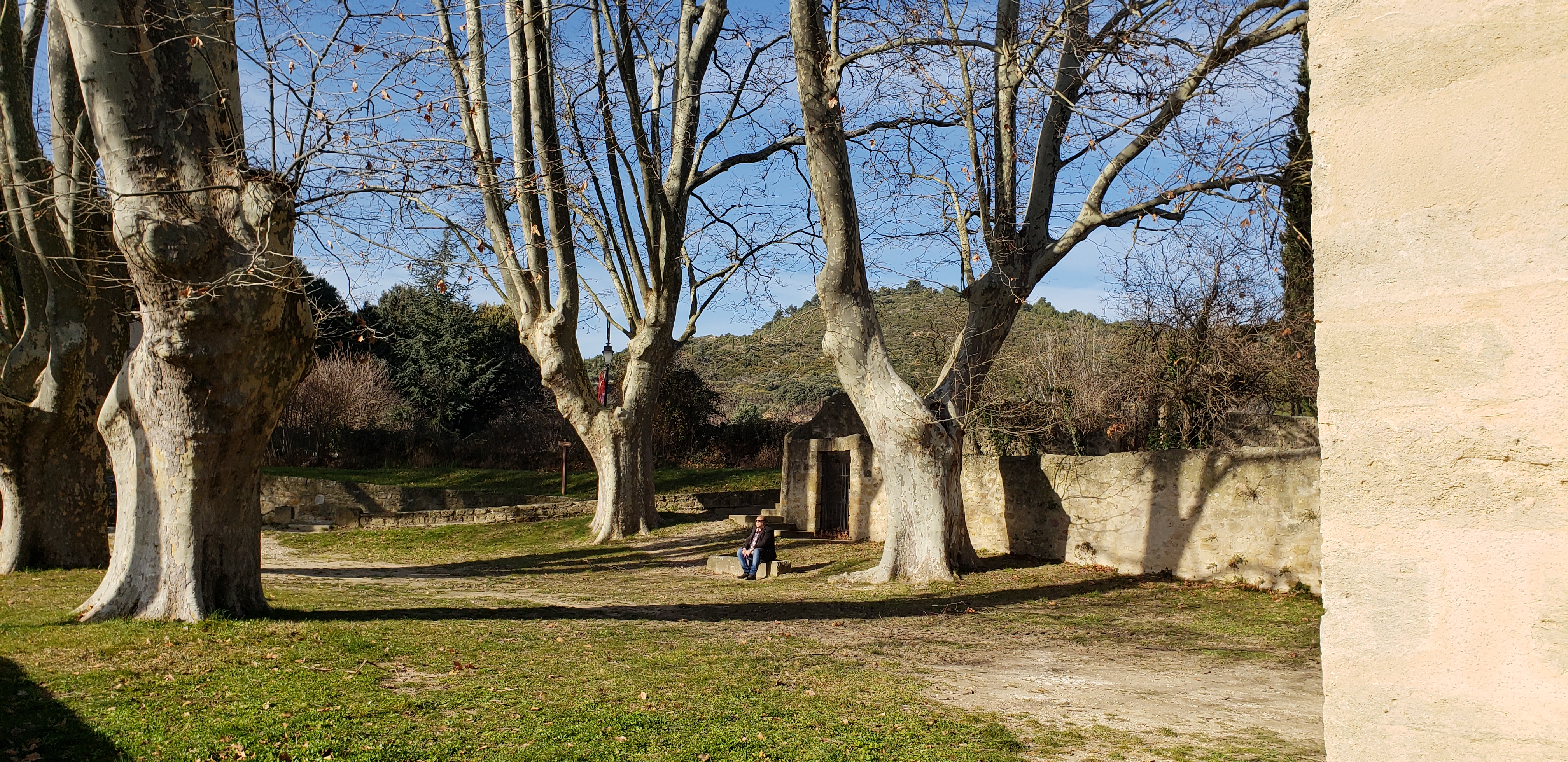 Vaugines un très joli village. Un belle place bordée de platanes plus que centenaire. Ne manquez pas la petite église également sous les platanes. Elle vous dira sans doute quelque chose , en effet c'est l'église qui apparaît dans le film Manon des sources